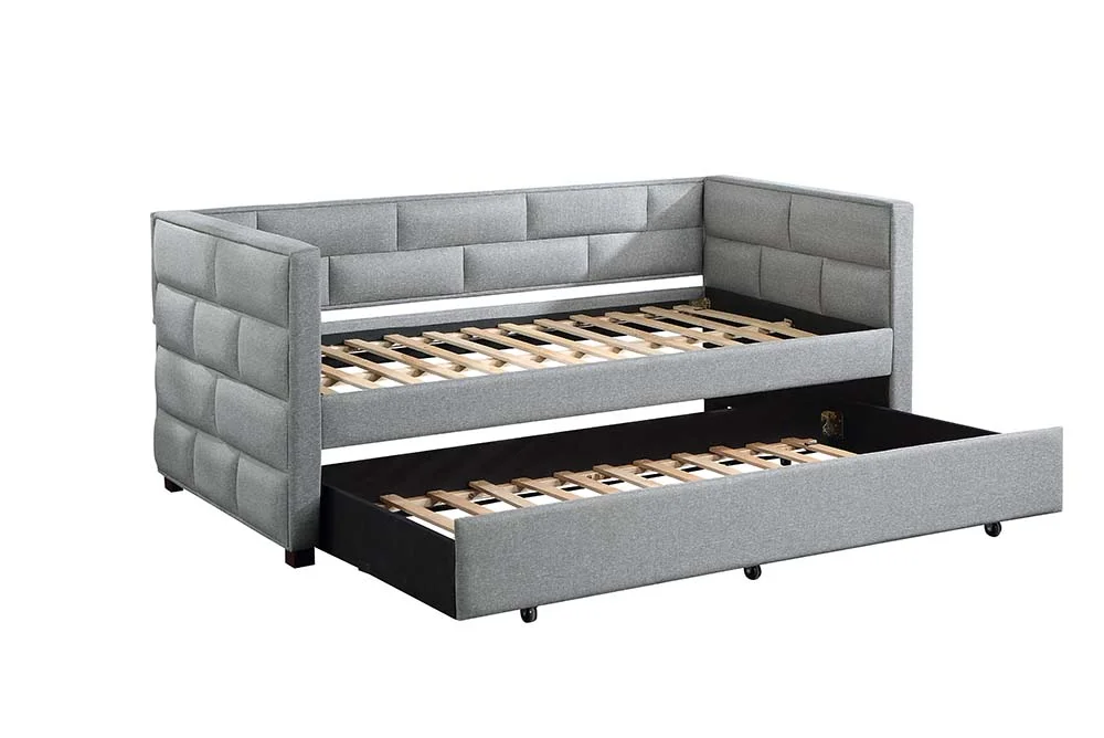 HomeStock Beachy Boho And Traditional Light Grey Fabric And Natural Brown Finished Wood Twin Size Daybed