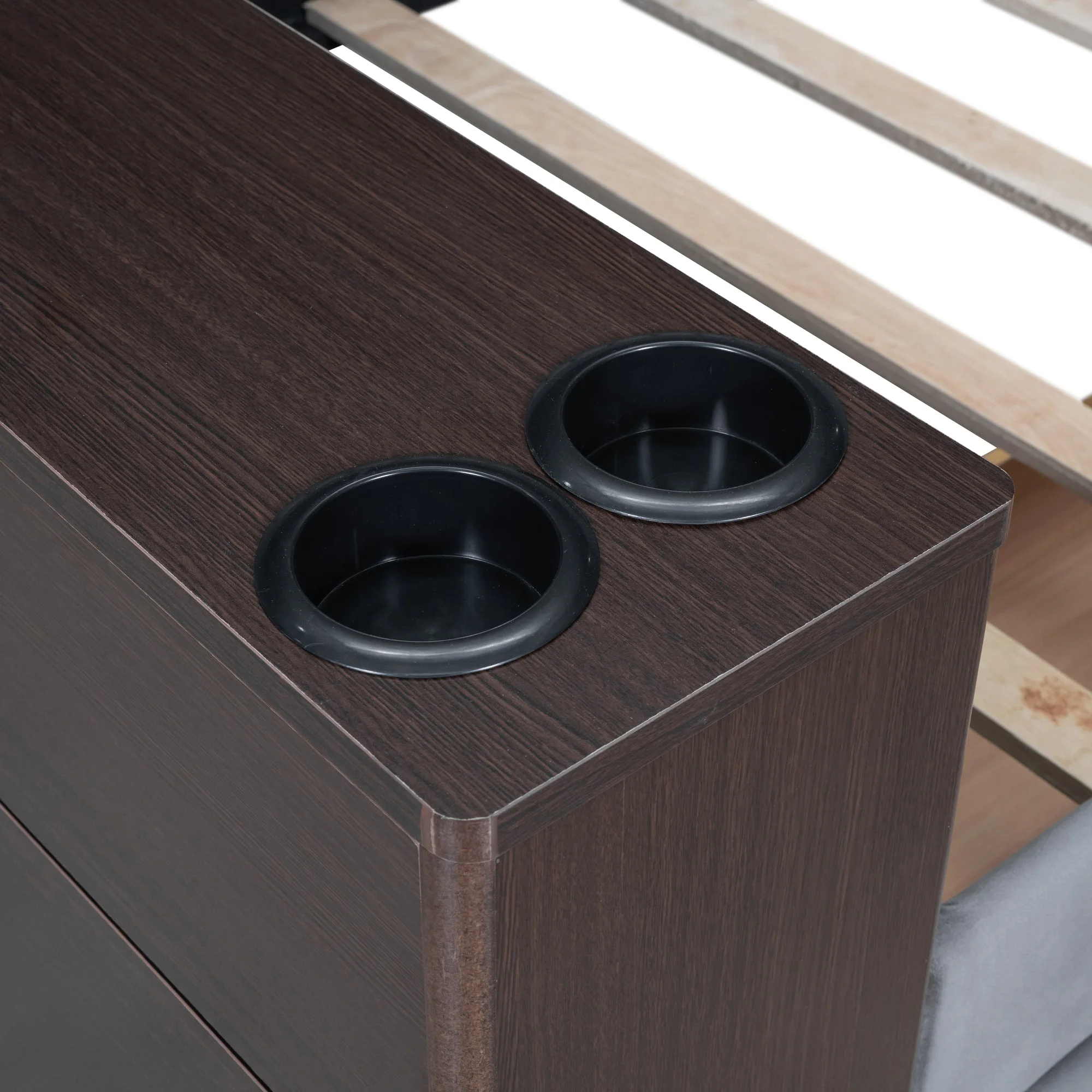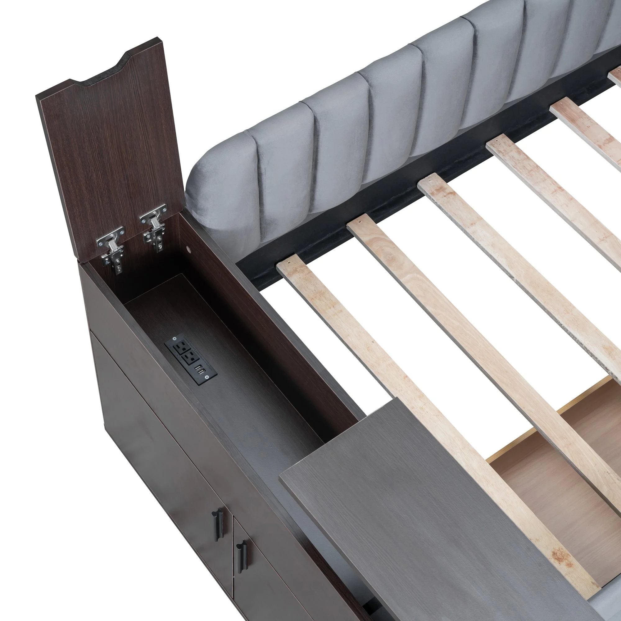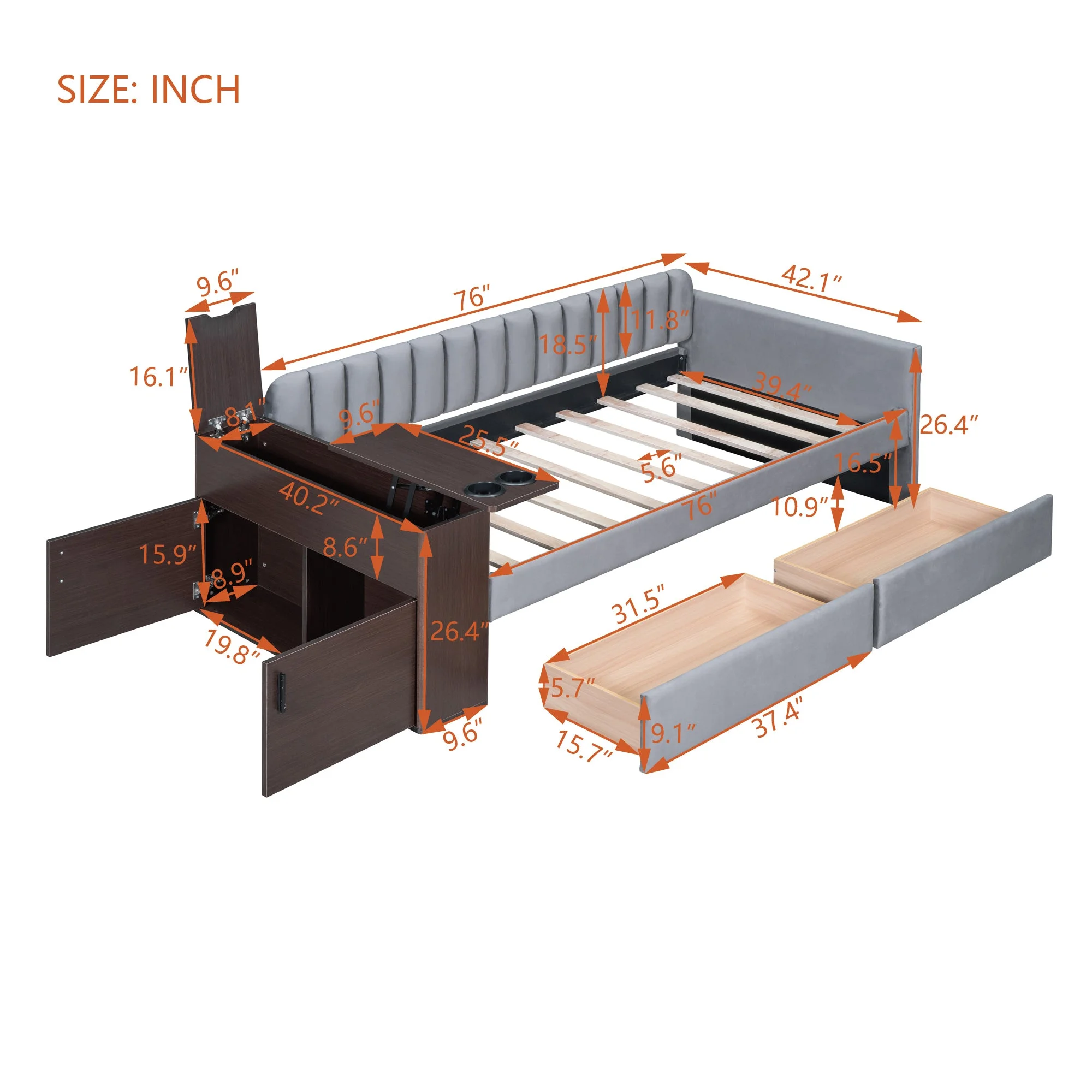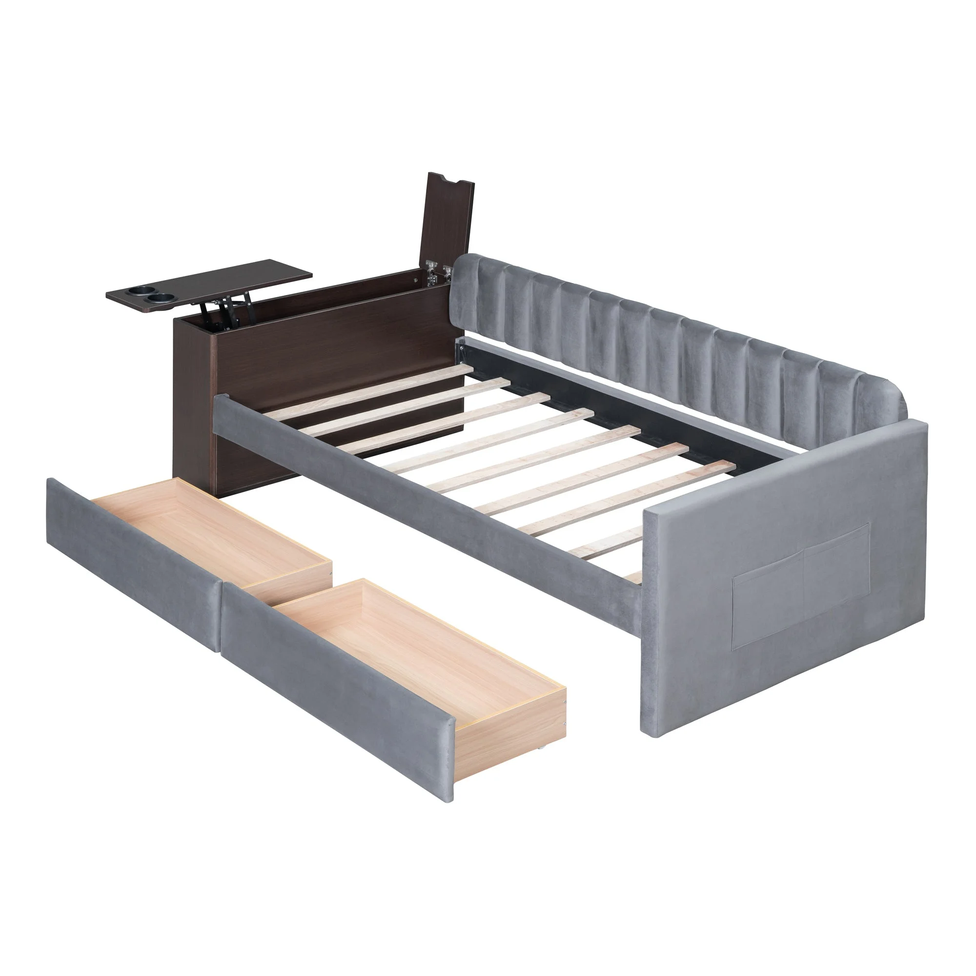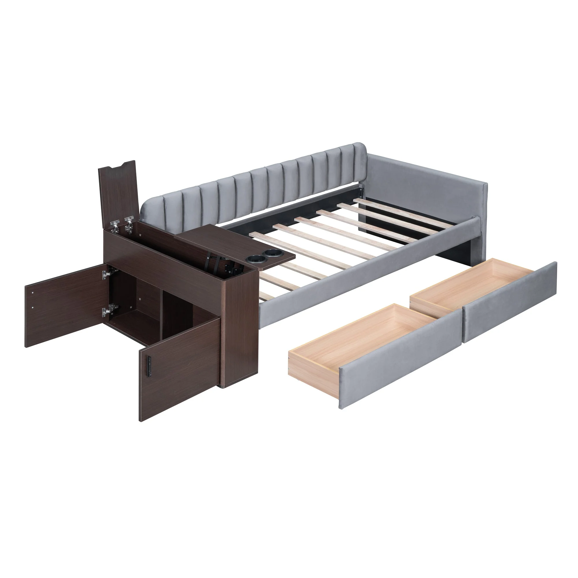 Jovi Twin Size Upholstered Daybed with Storage Armrest and Drawers - Gray