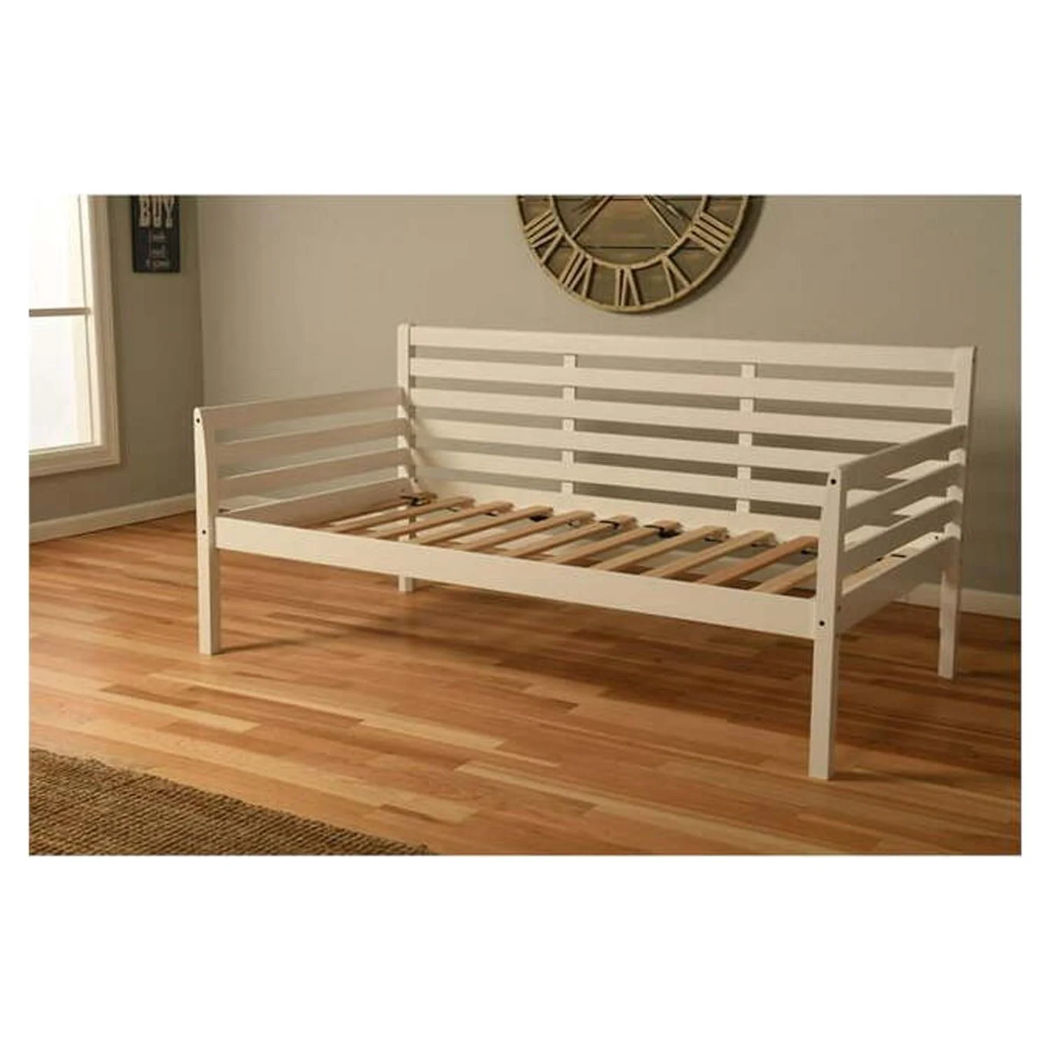 Kodiak Furniture Boho Wood Daybed and Pop Up Bed in White with Linen Mattress