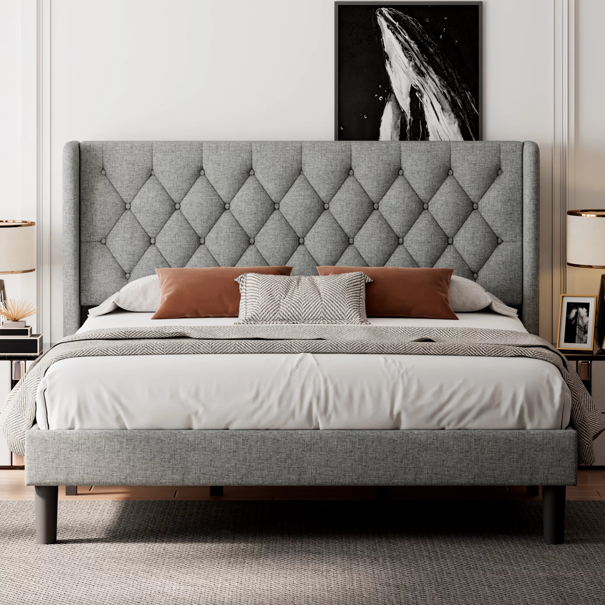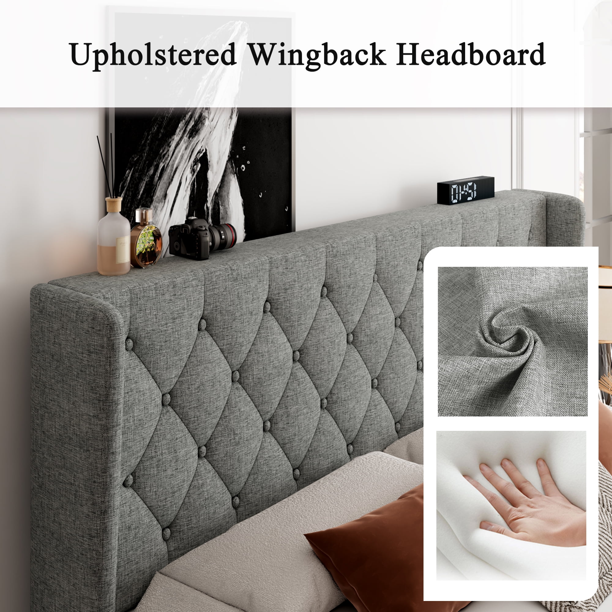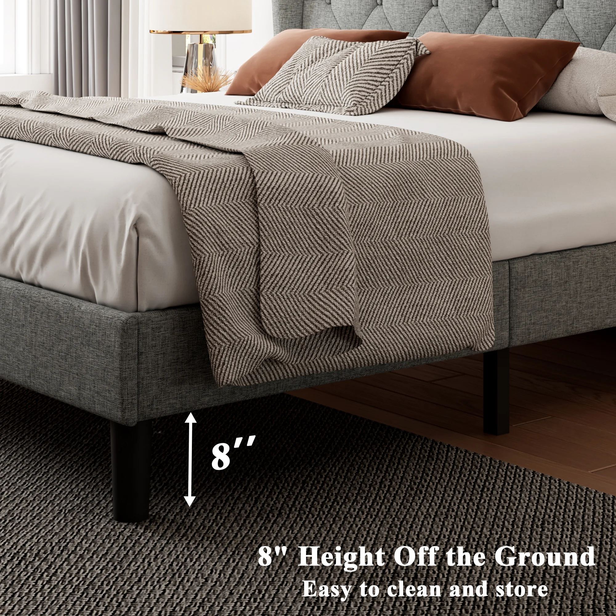 Furniture of America Frohm Flannelette Platform Bed, Queen, Light Gray