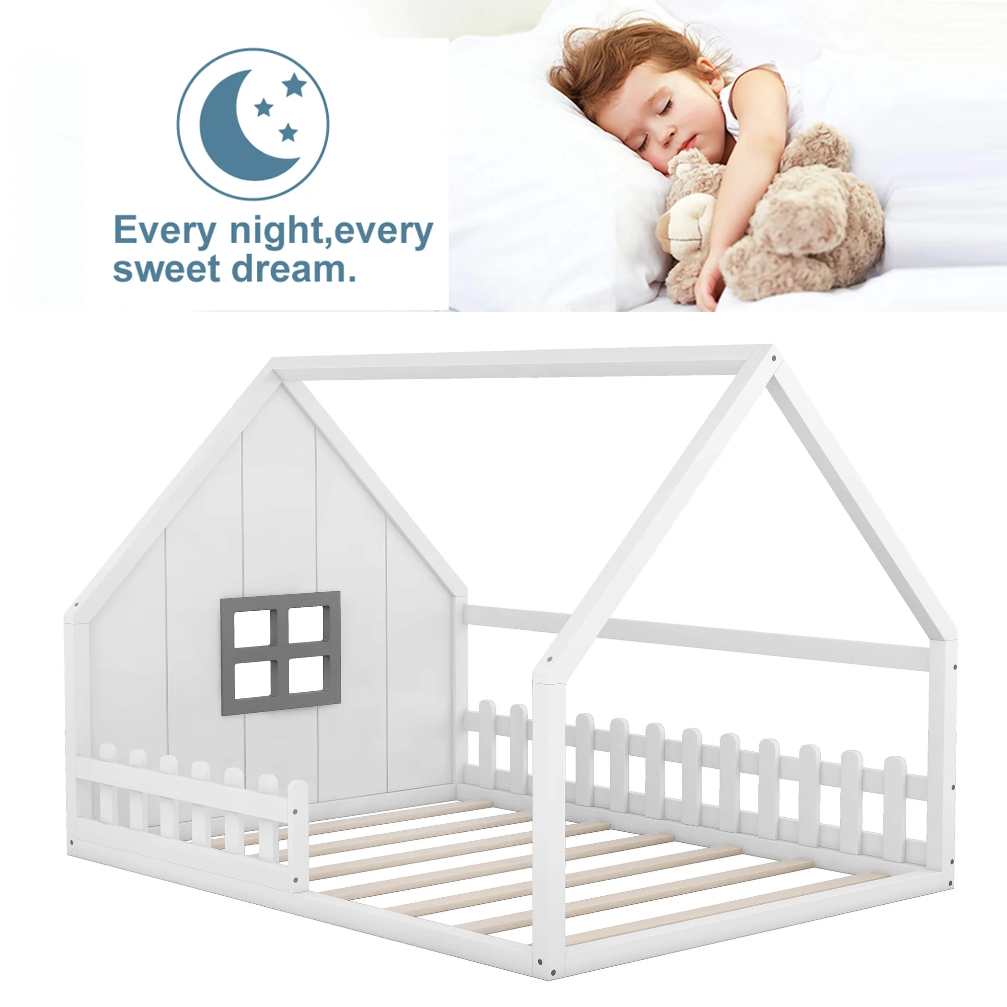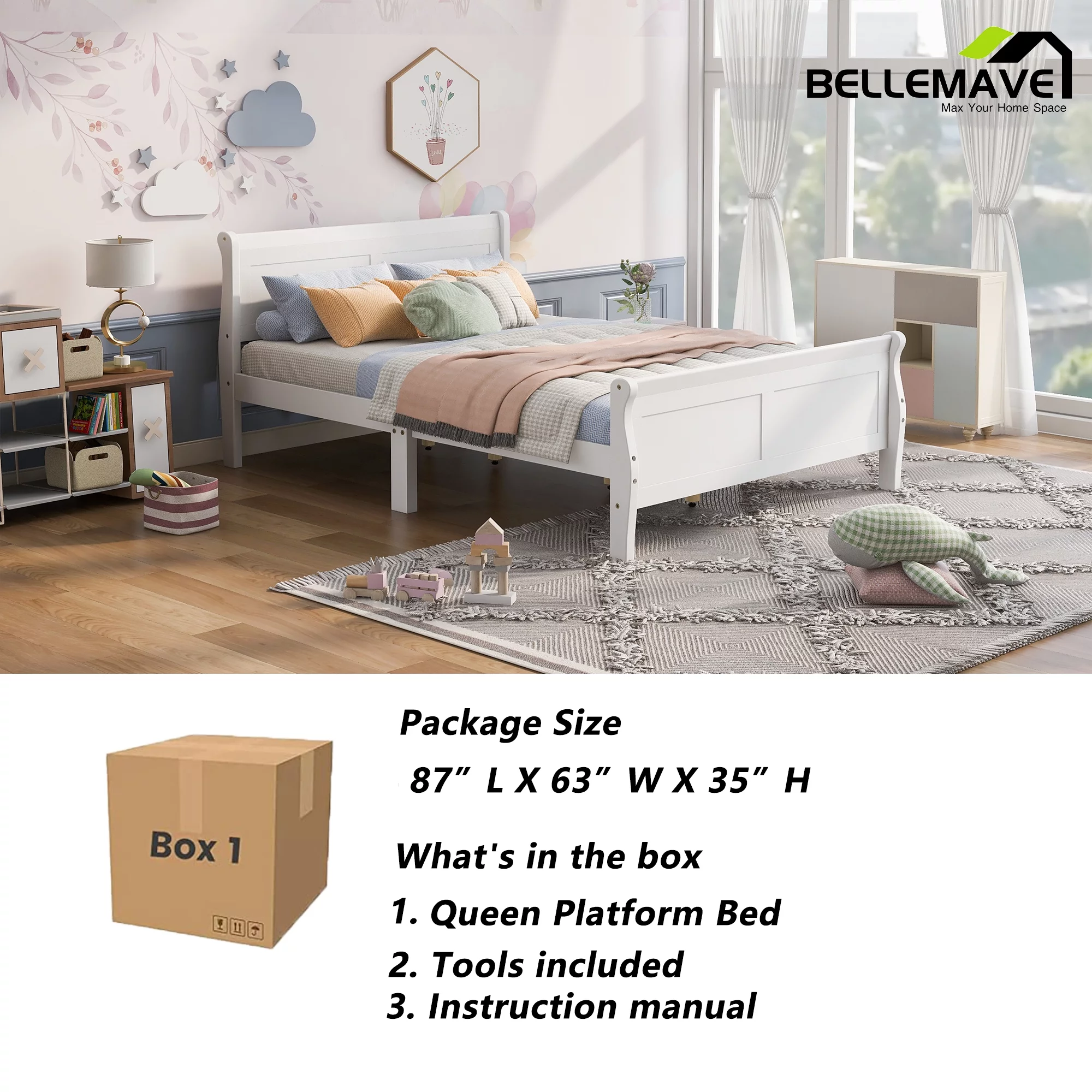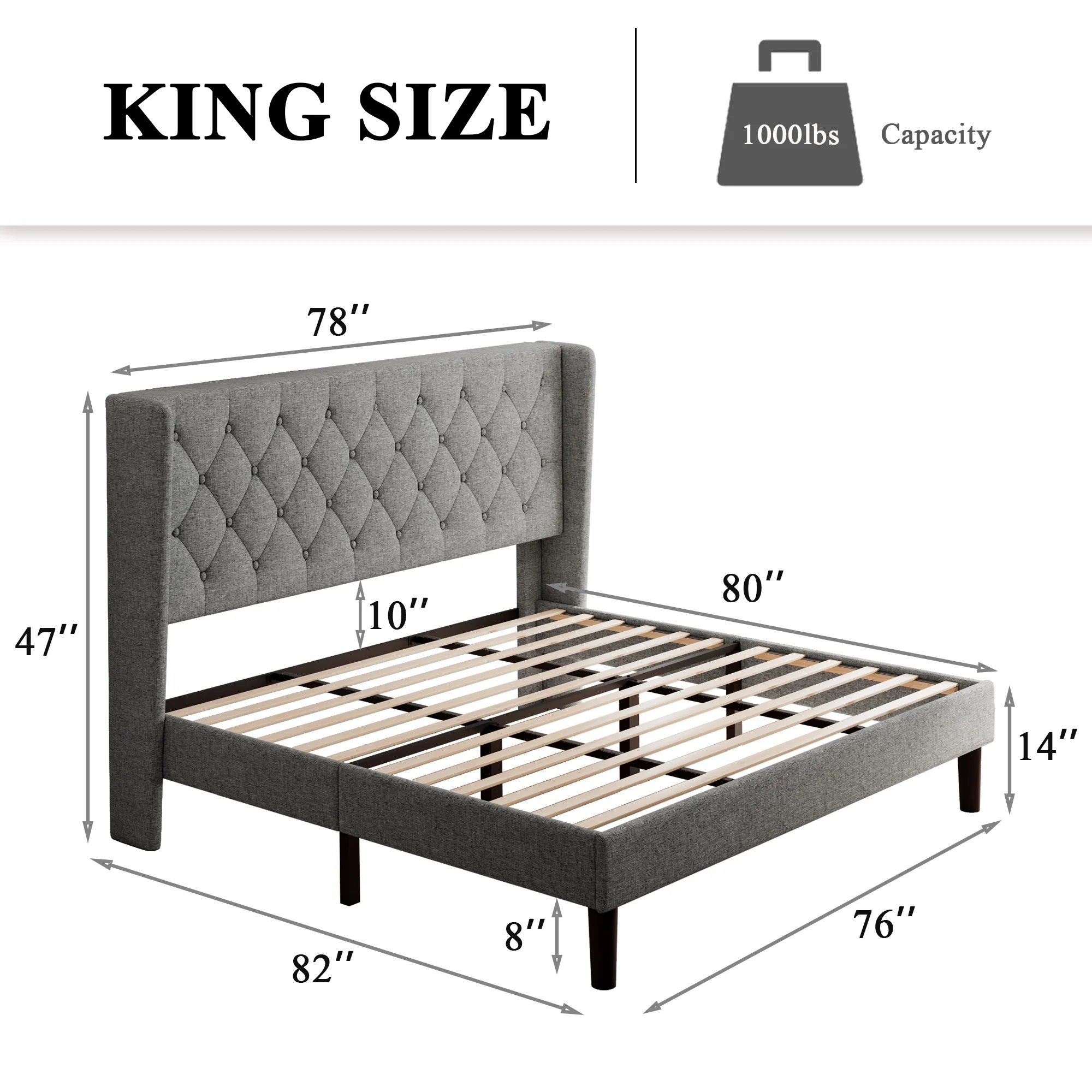 Furniture of America Frohm Flannelette Platform Bed, Queen, Light Gray