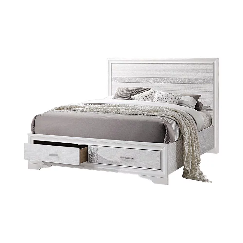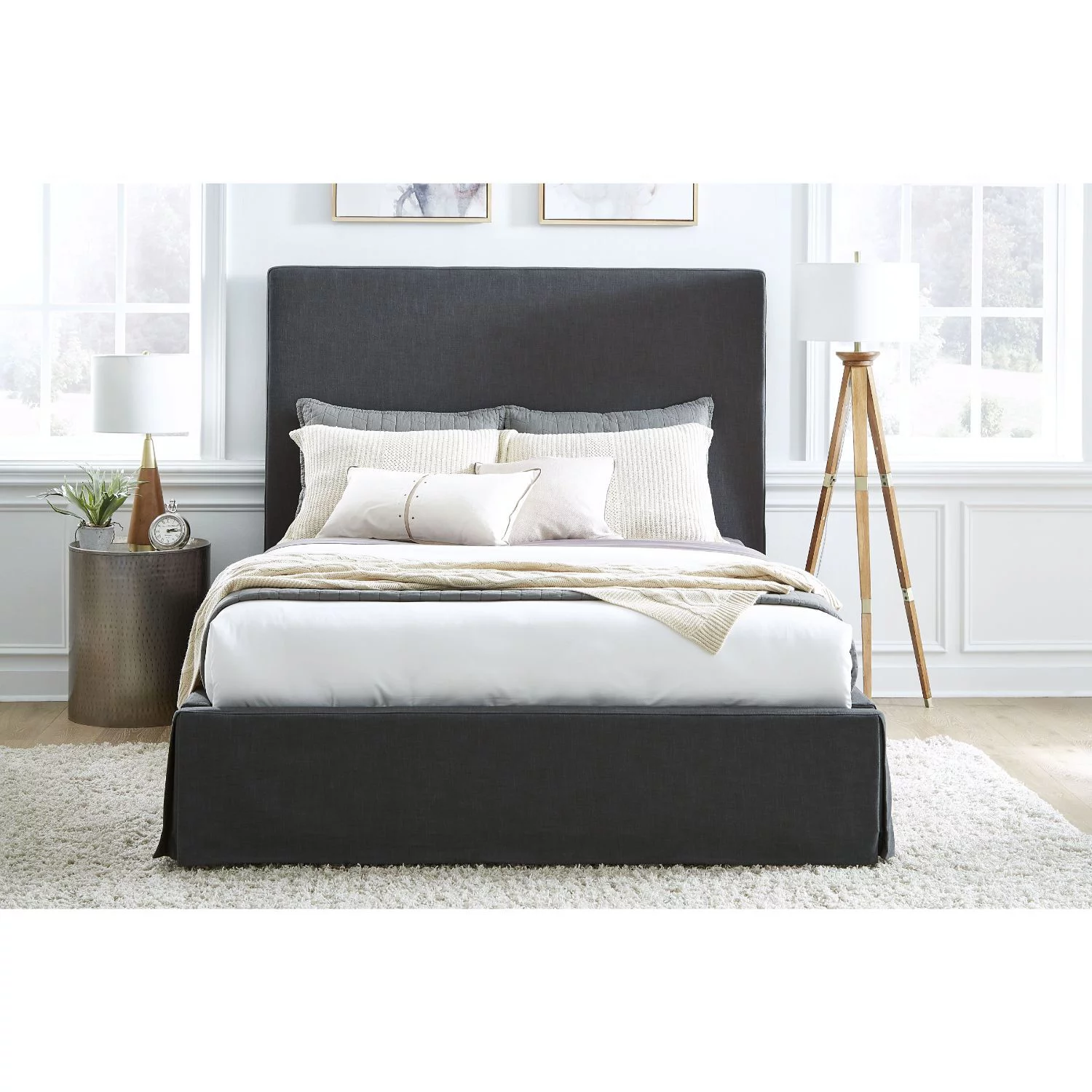 Modus Furniture Cheviot UpholsteredSkirted Storage Panel Bed in Iron