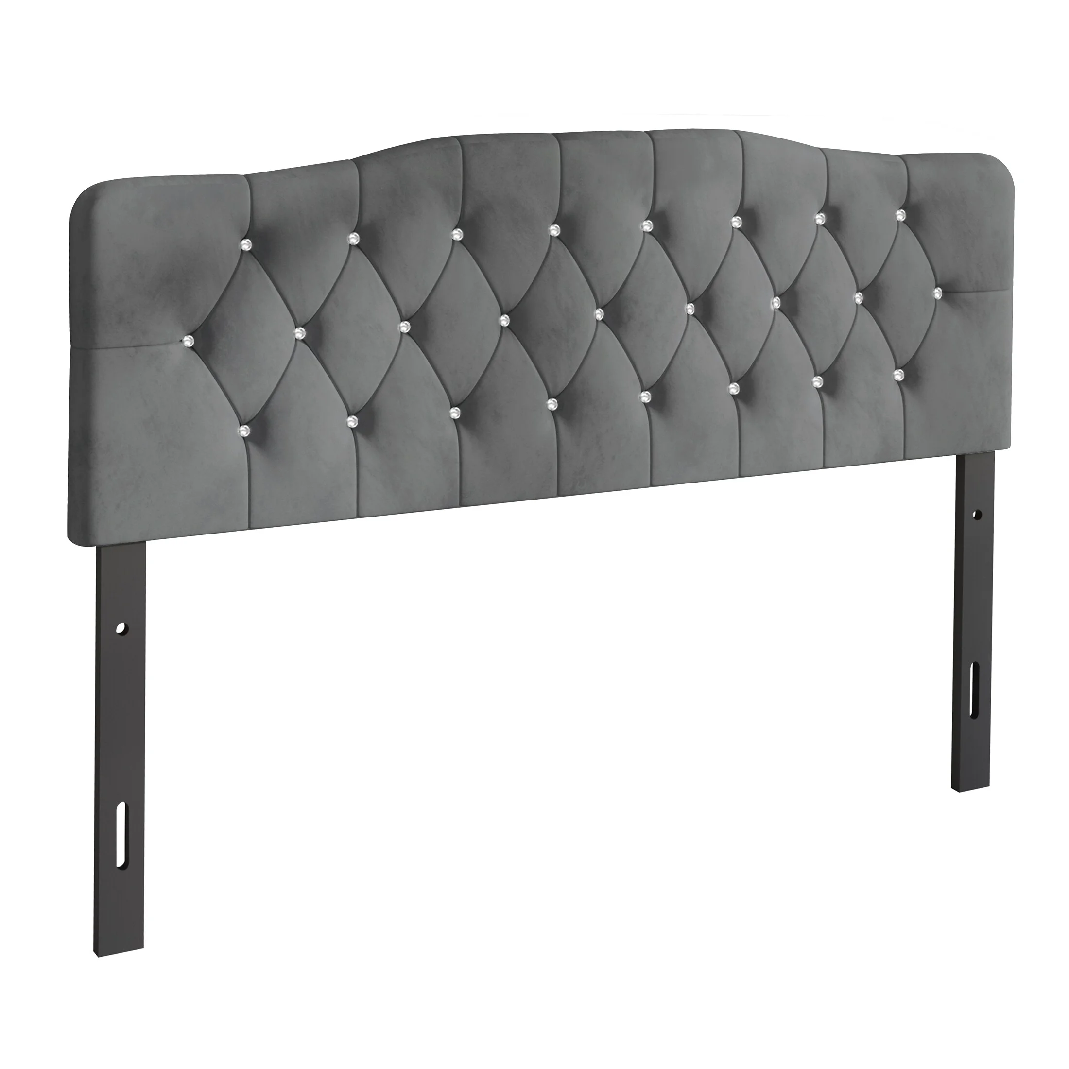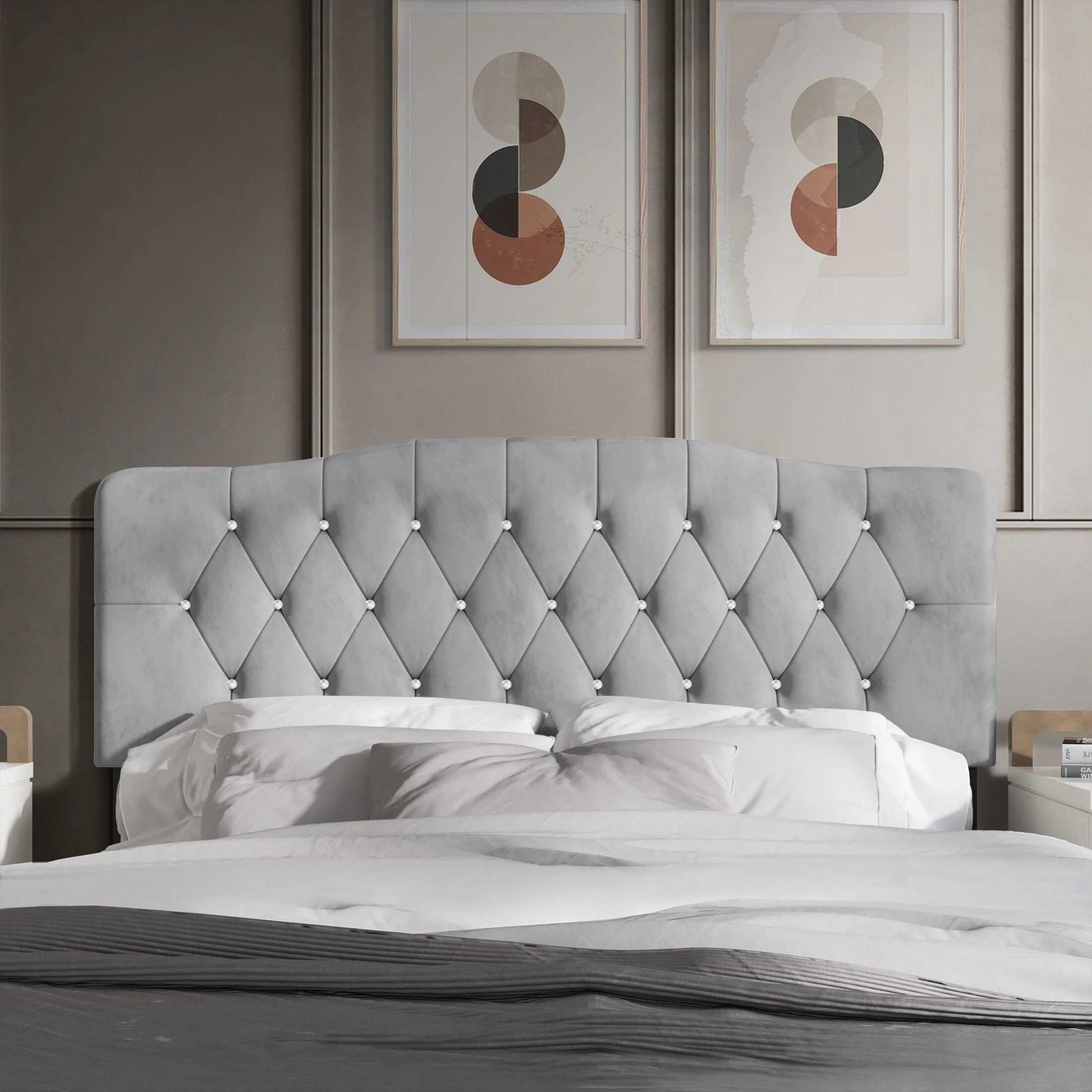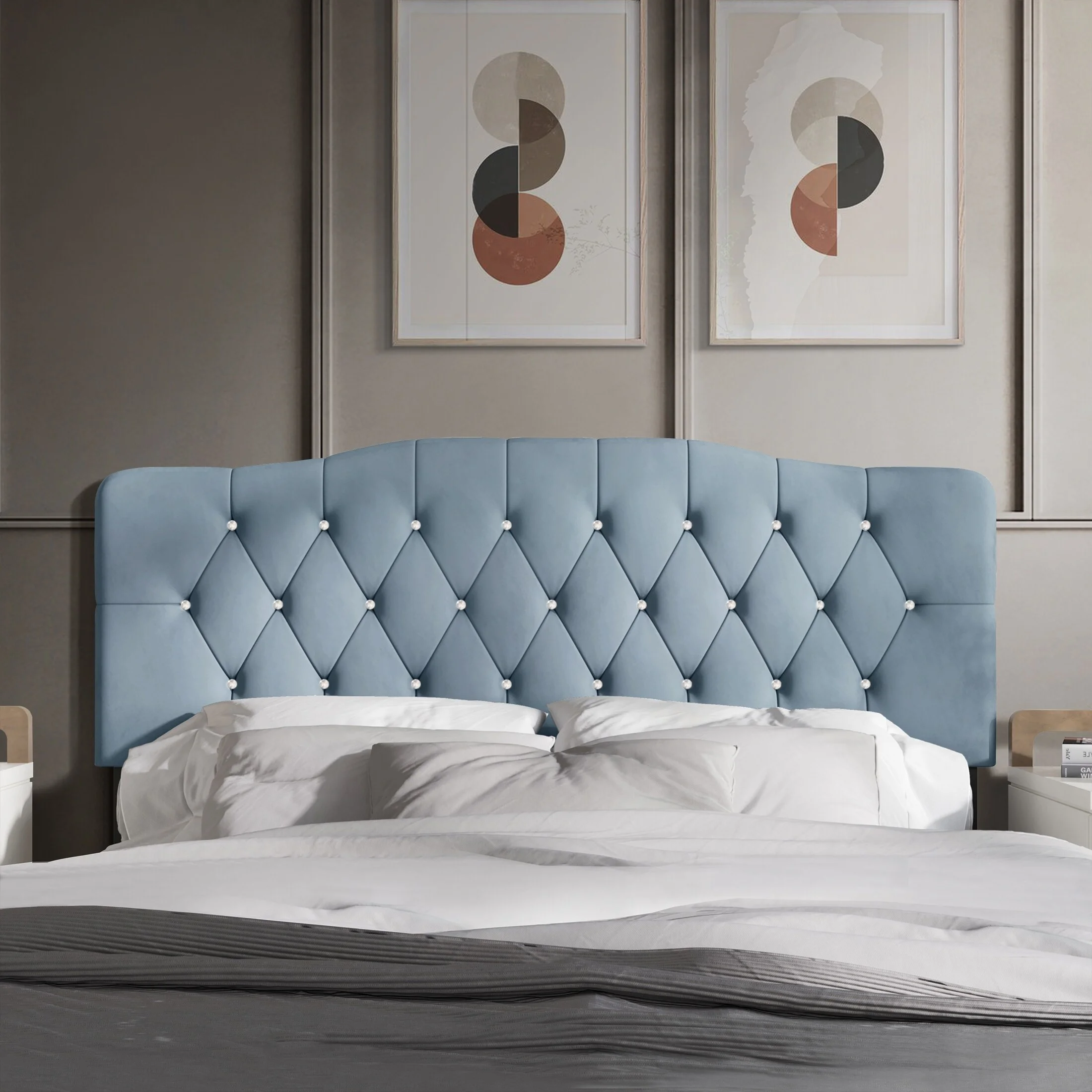 CraftPorch Velvet Button Tufted Curved Adjustable Headboard Baby Blue King