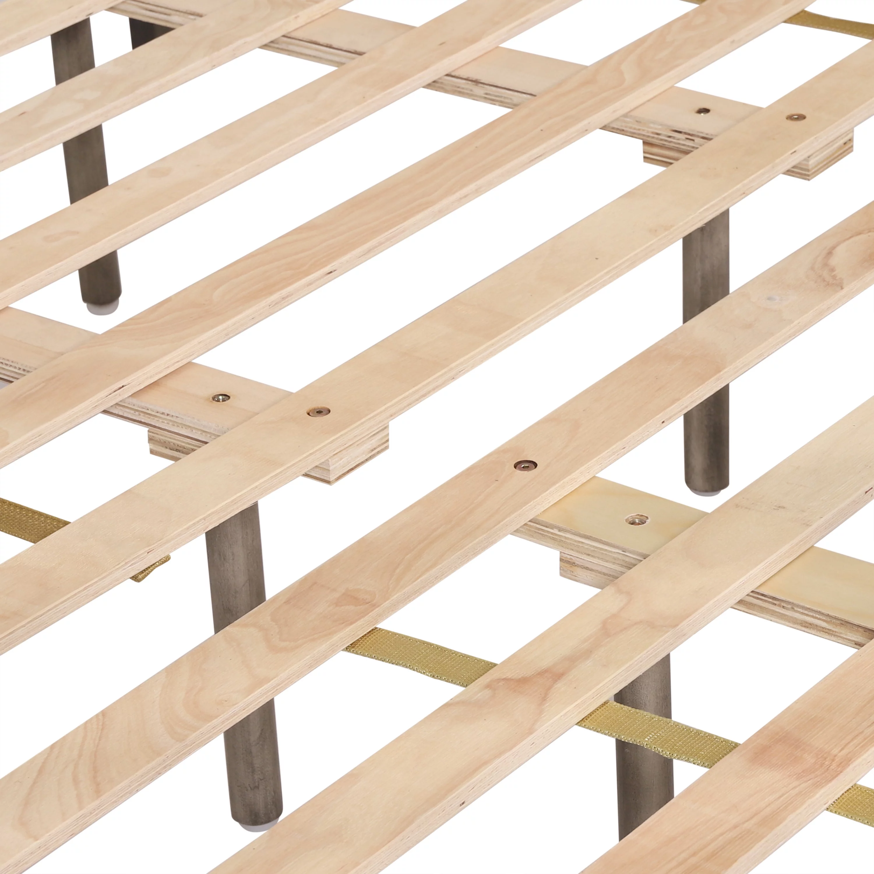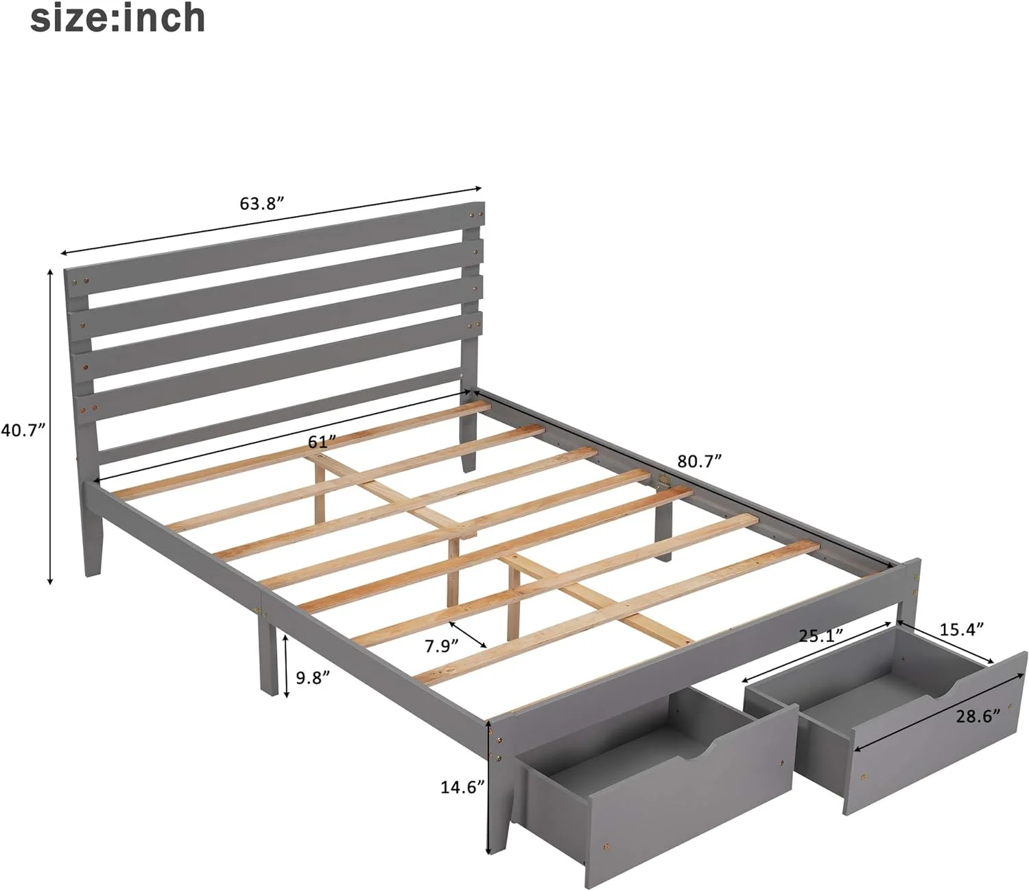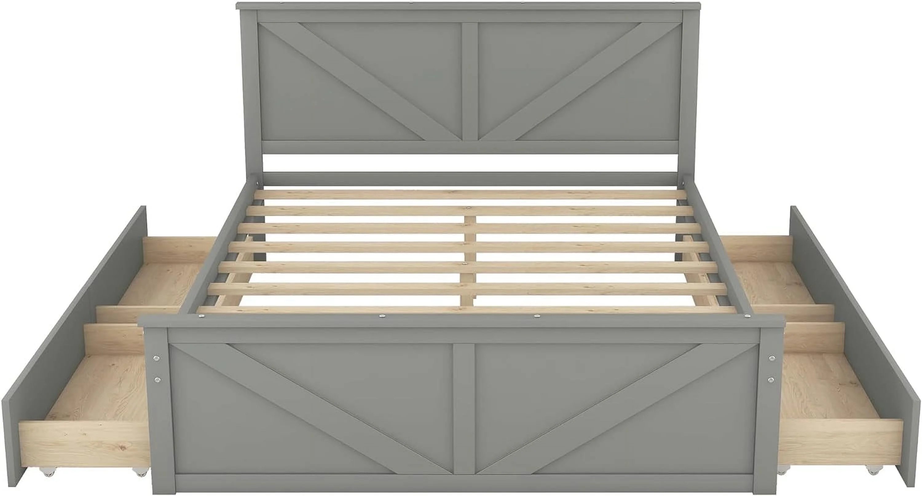 Noble House Vihaan Modern Farmhouse Acacia Wood Queen Bed Platform, Gray