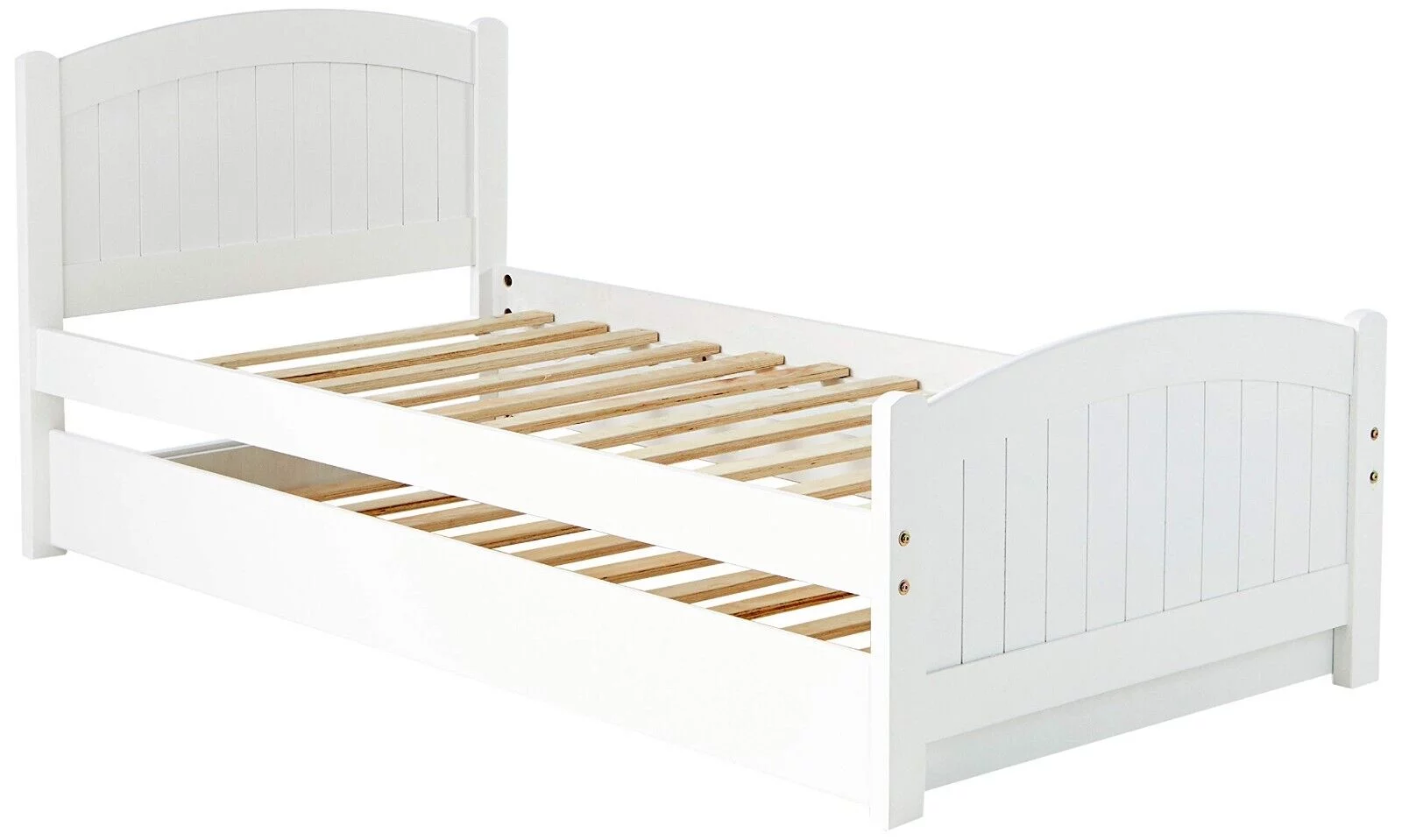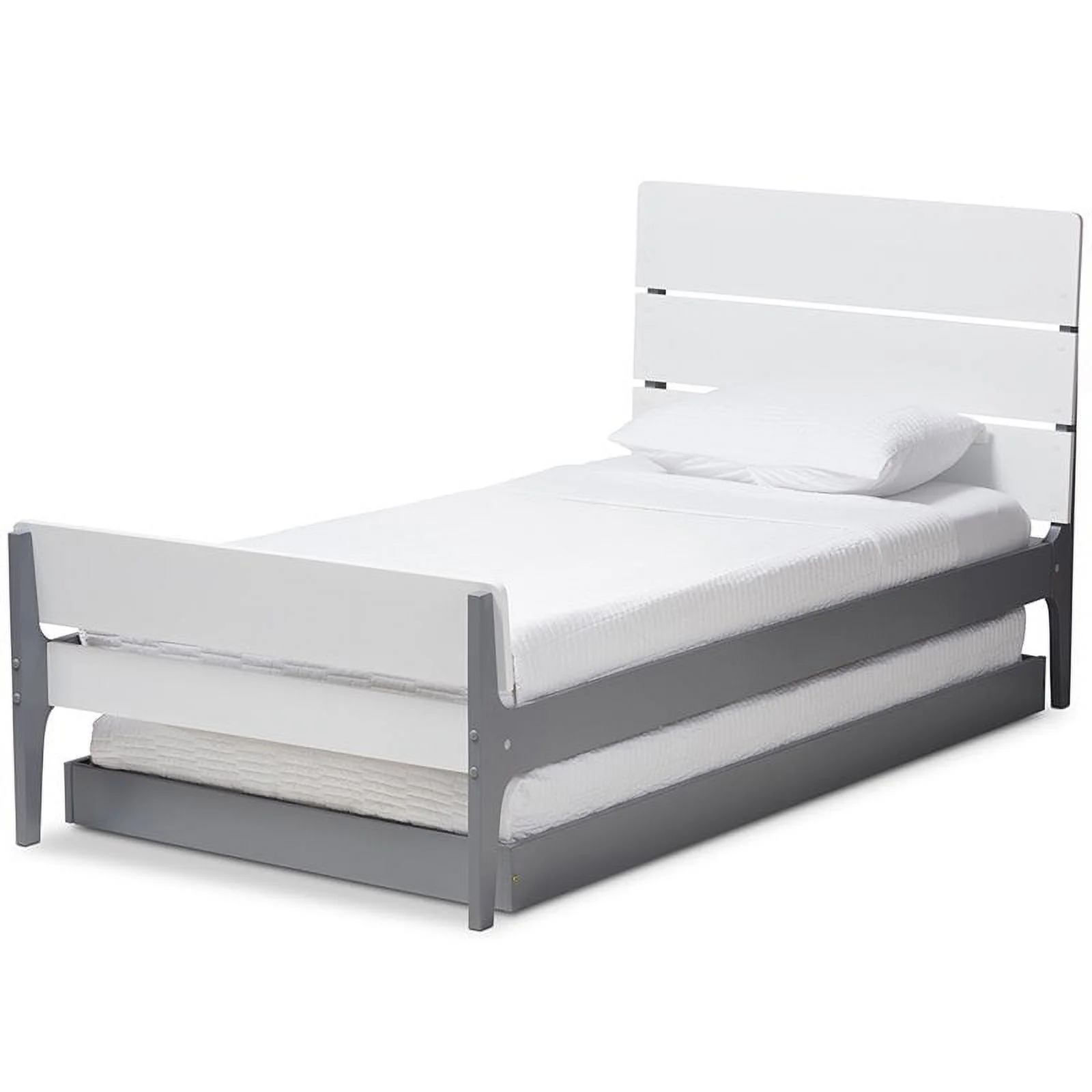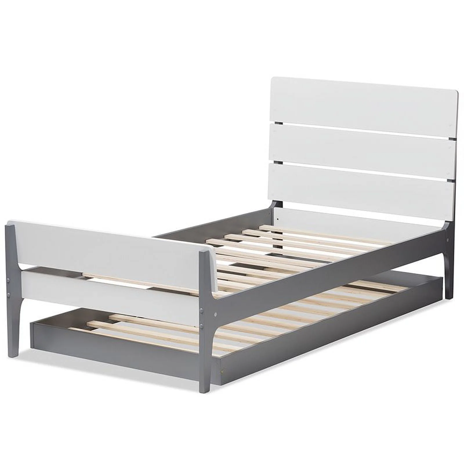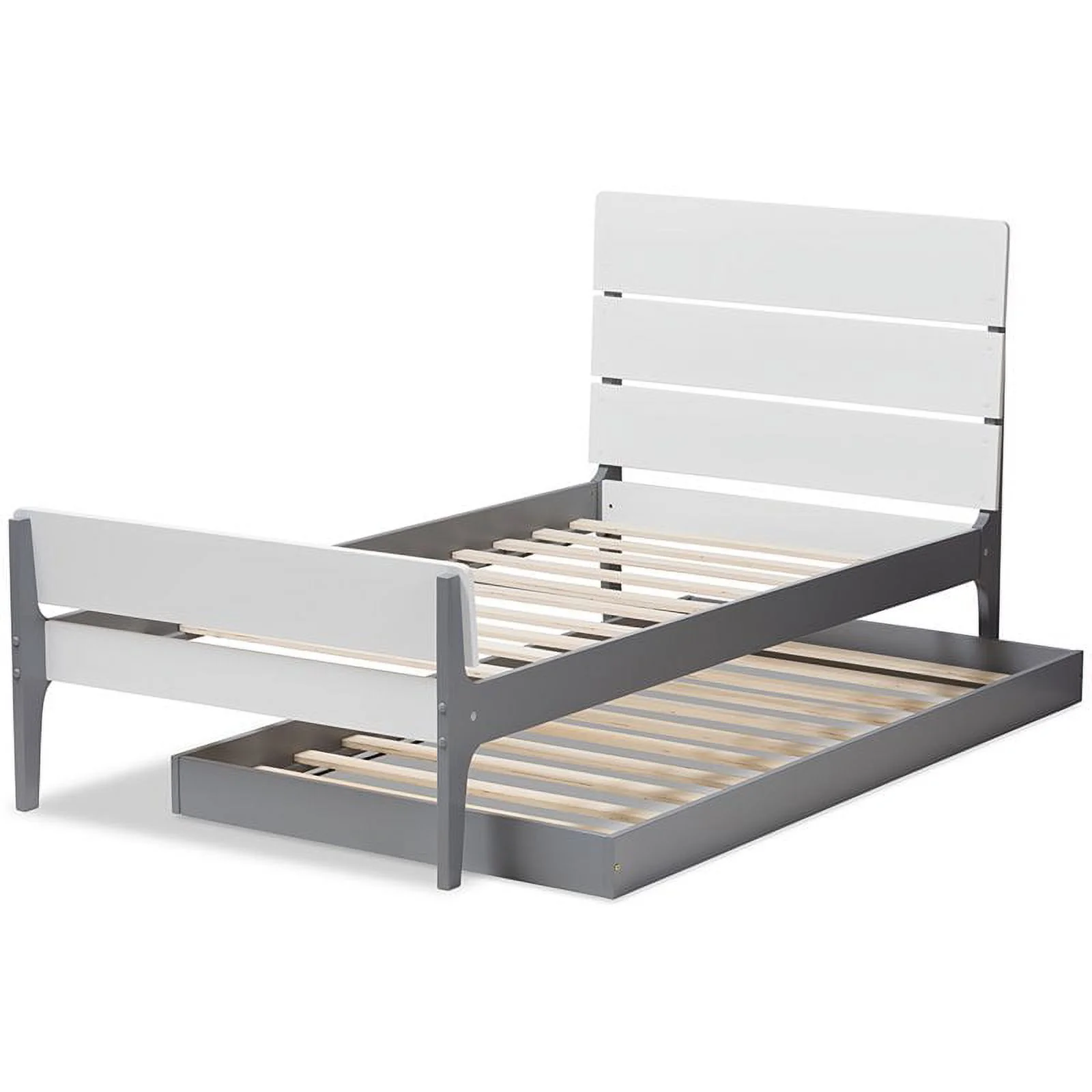 Contemporary Youth Bedroom Furniture 1pc Twin Size Bed w Trundle White Plywood Slats Bedframe