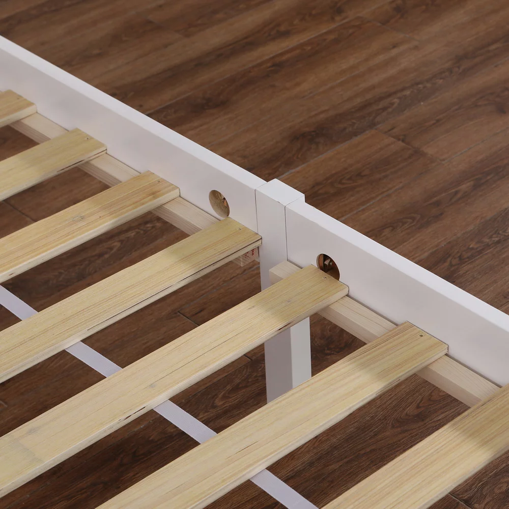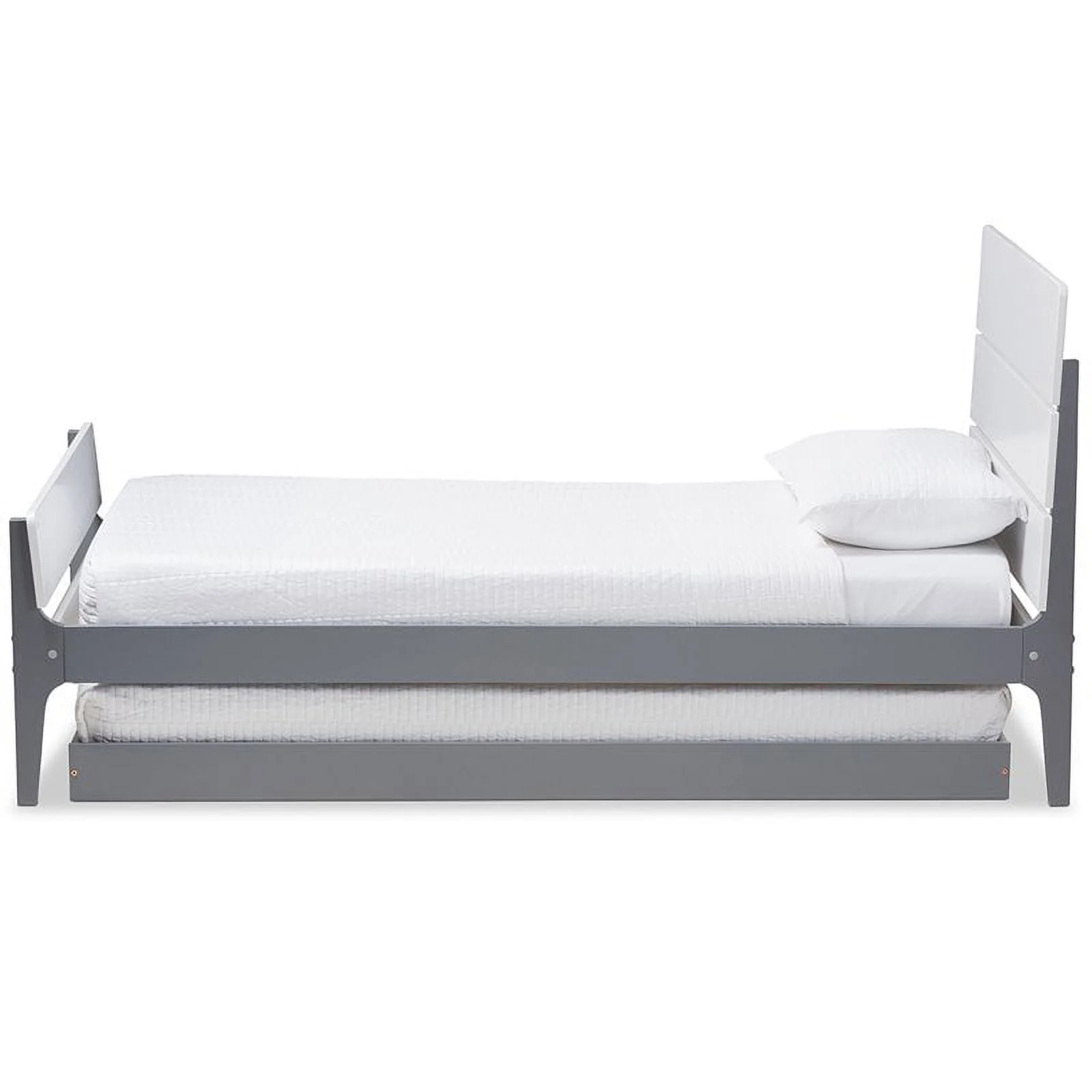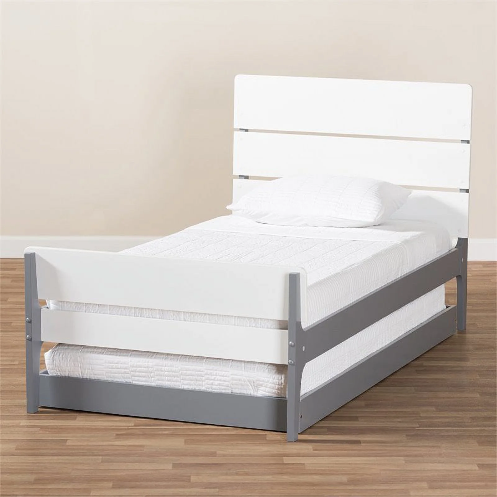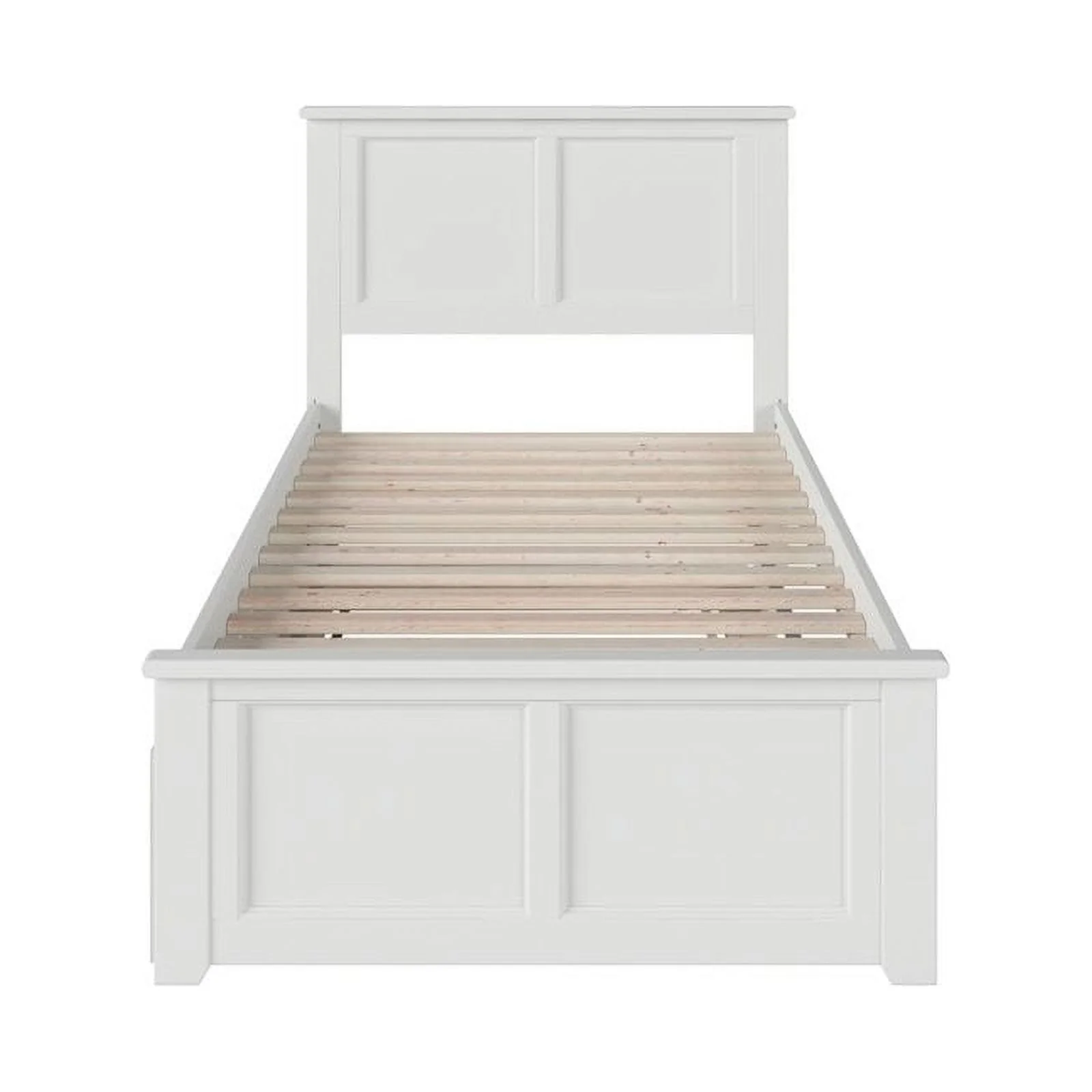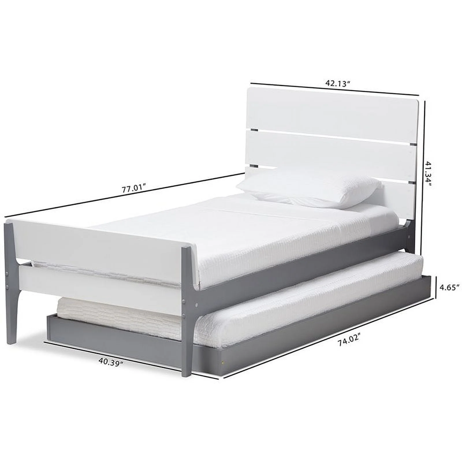 Contemporary Youth Bedroom Furniture 1pc Twin Size Bed w Trundle White Plywood Slats Bedframe
