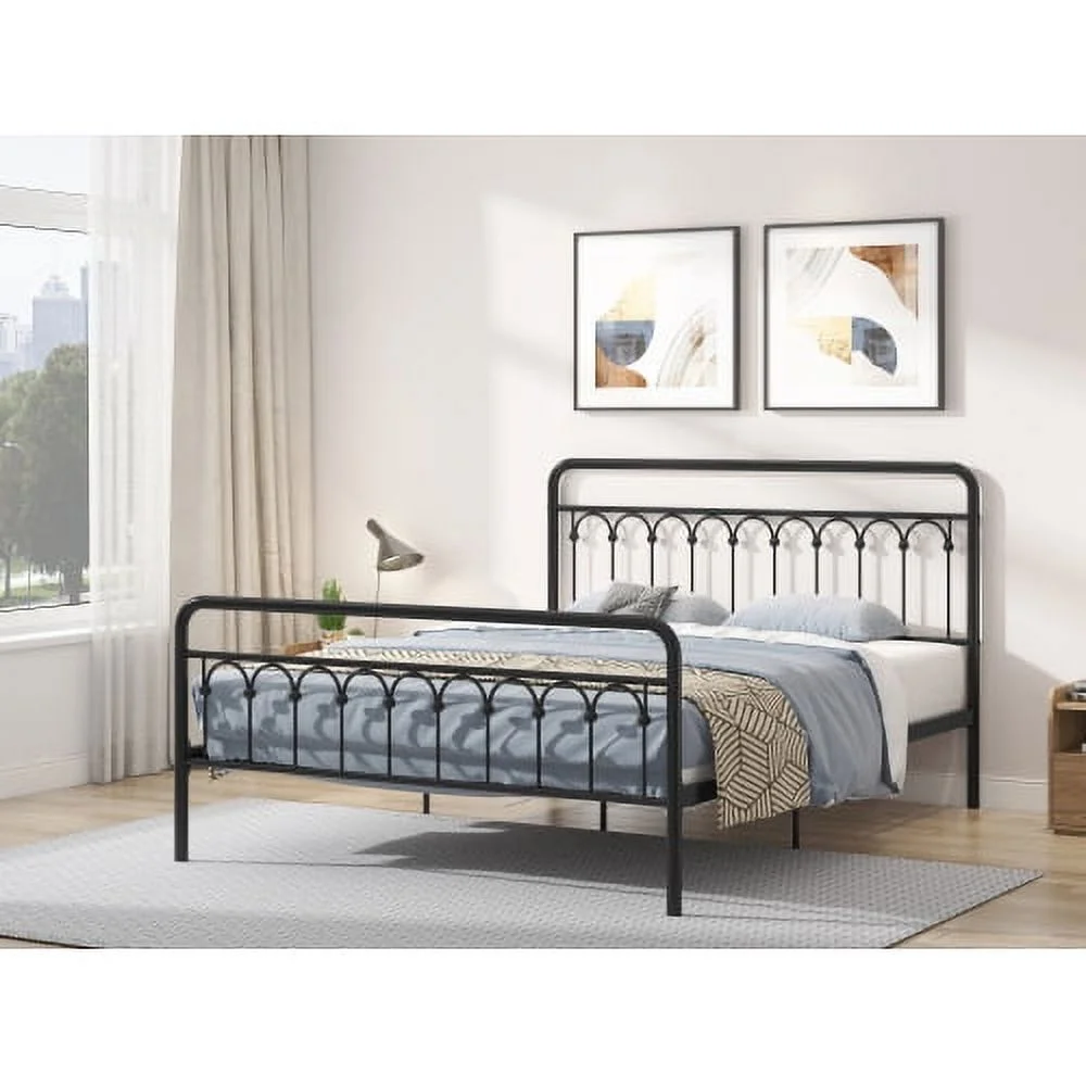 Bowery Hill Contemporary Black Finished Metal Queen Size Platform Bed