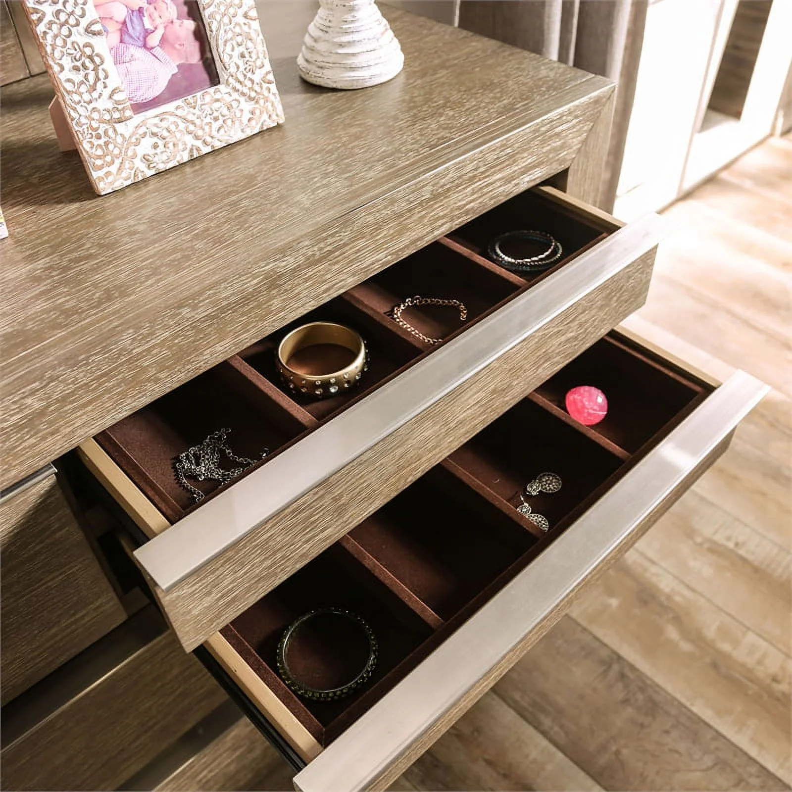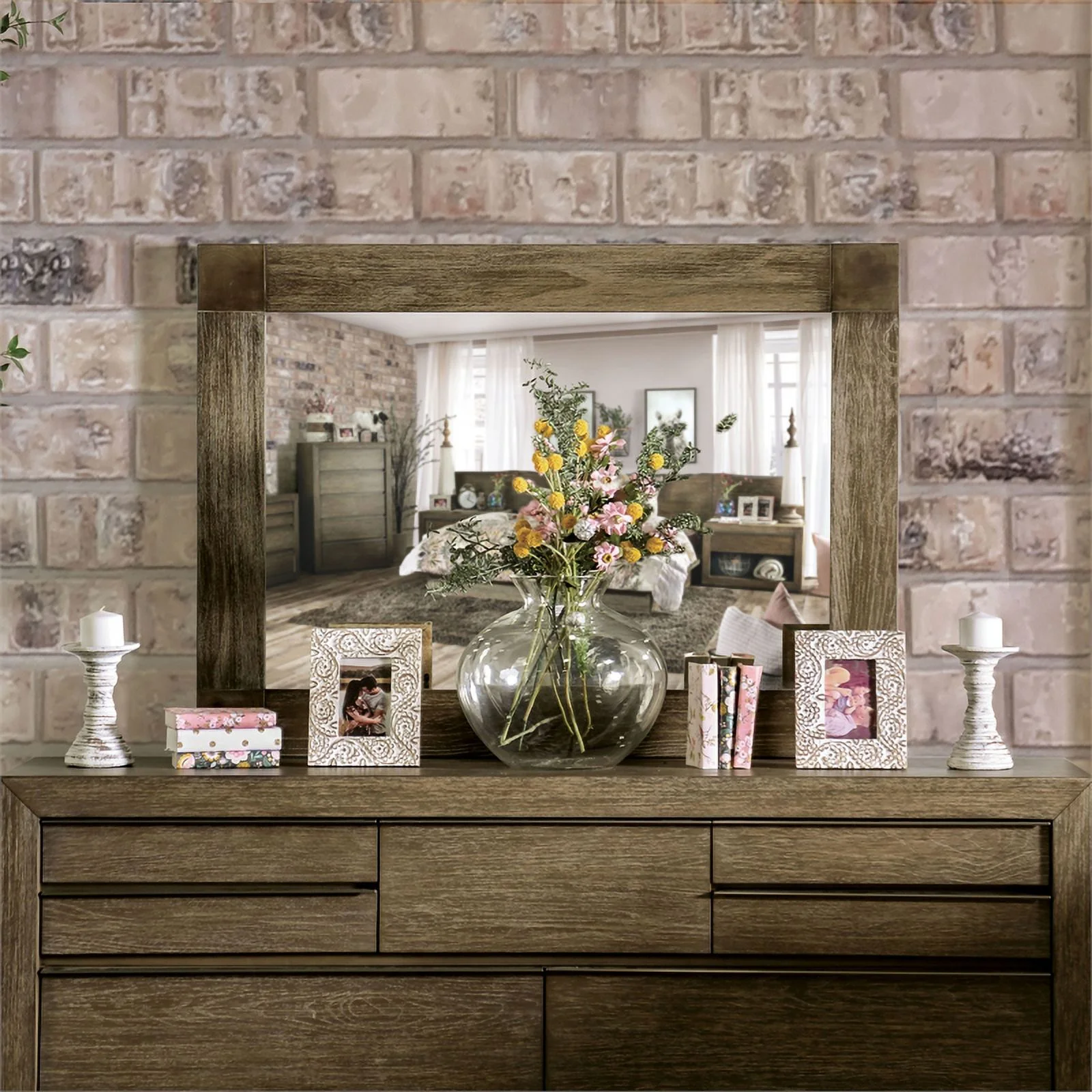 Furniture of America Camile Wood 9-Drawer Dresser with Mirror in Light Walnut