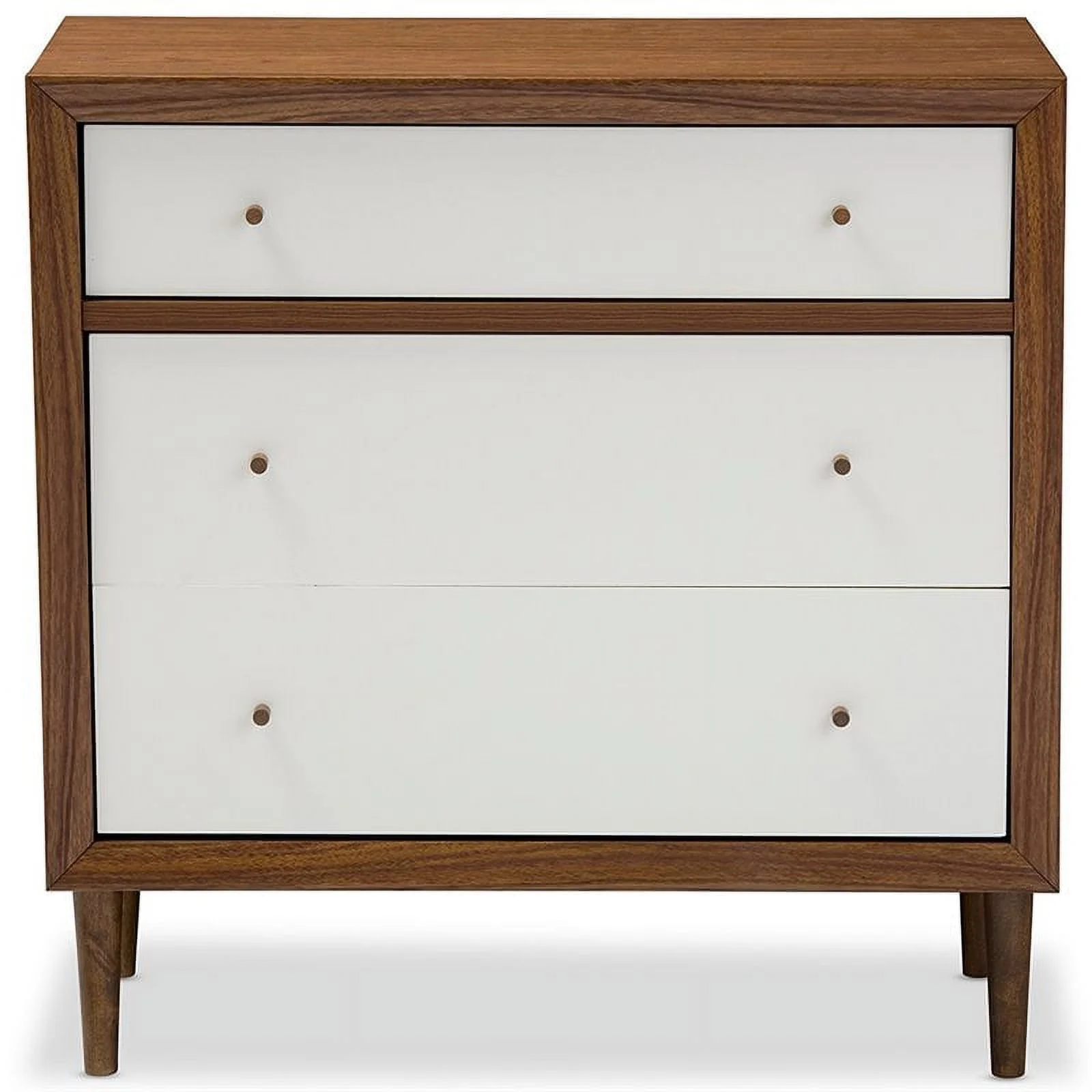 Bowery Hill Contemporary 3-Drawer Engineered Wood Chest in White/Walnut