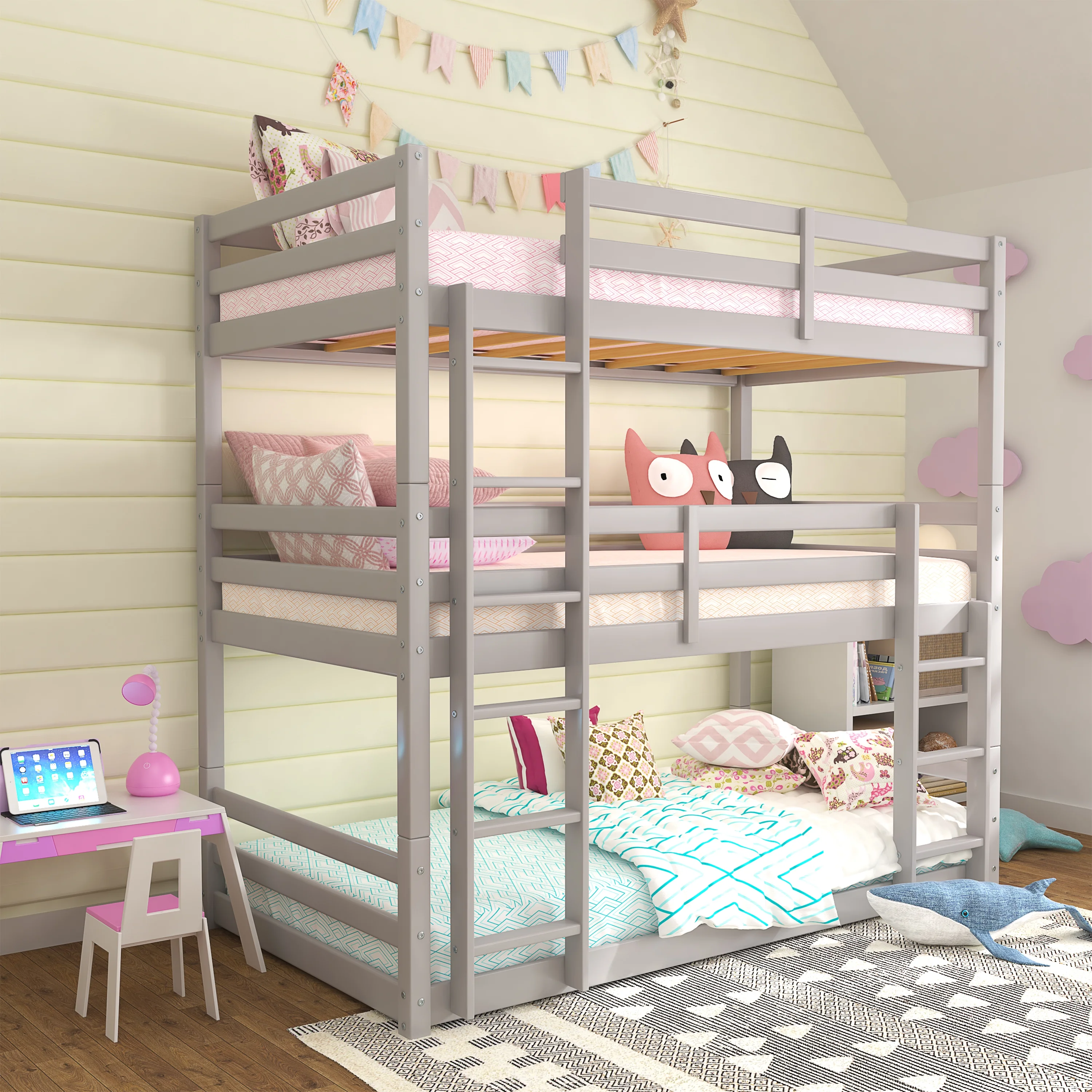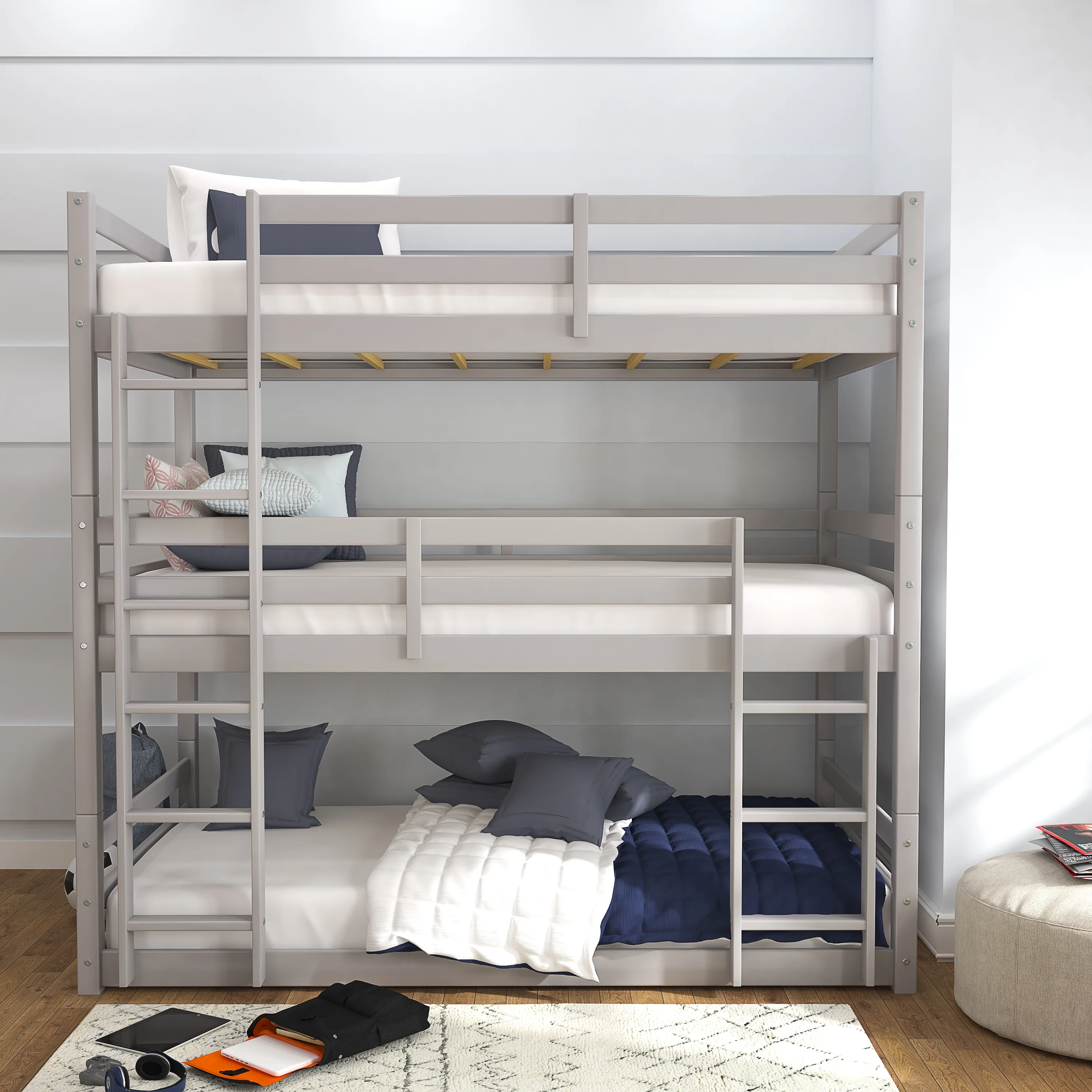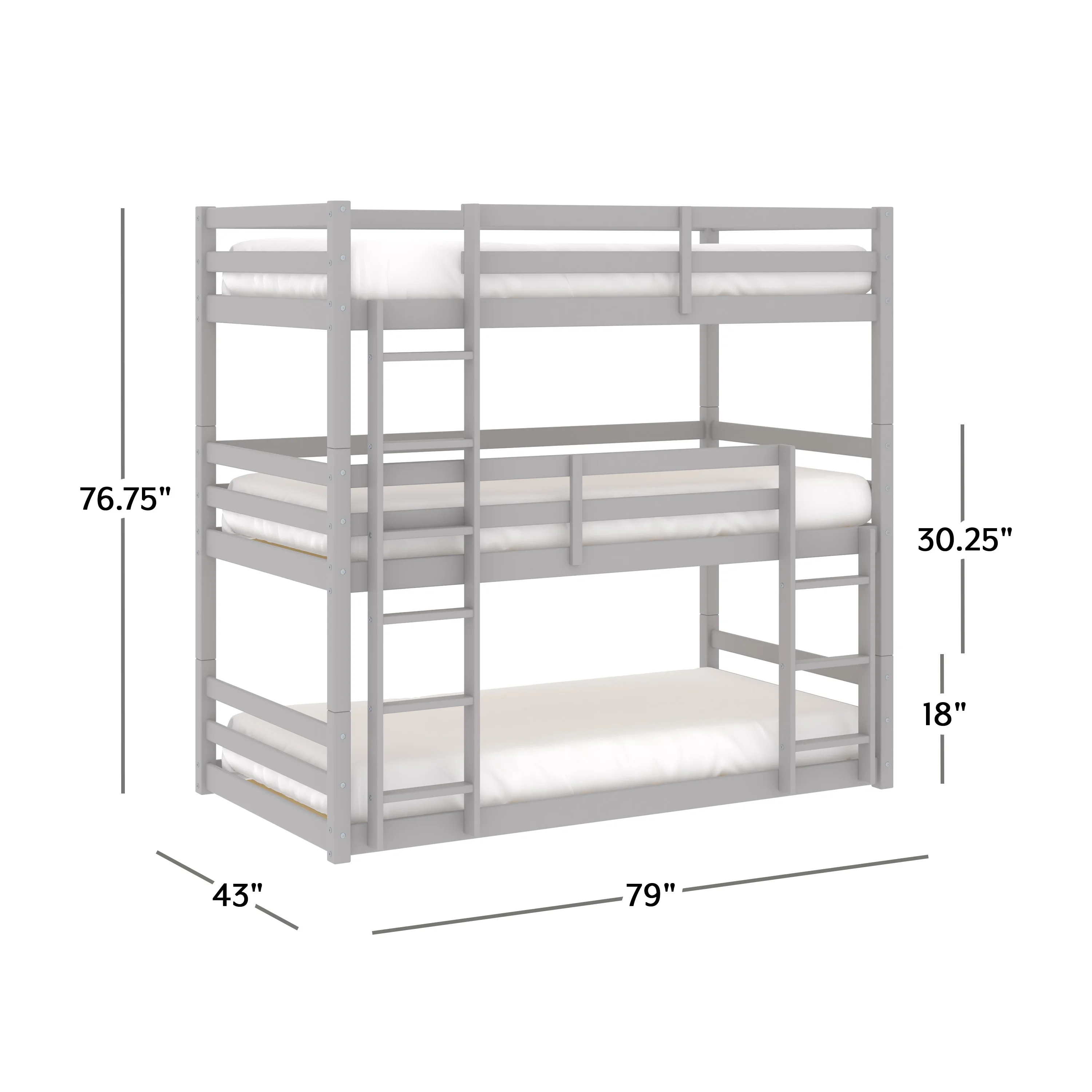 Campbell Wood Triple Twin Bunk Bed, Gray, by Hillsdale Living Essentials