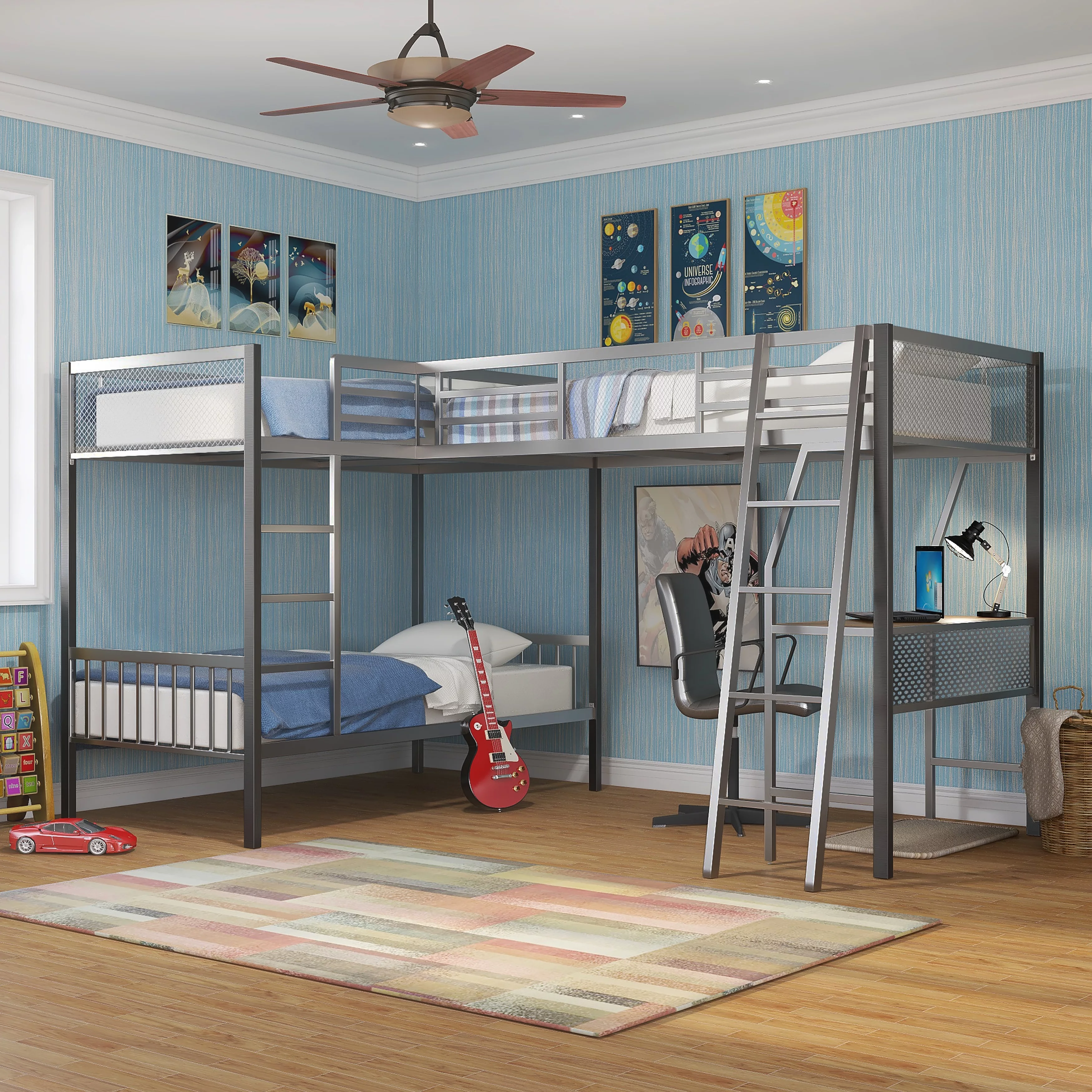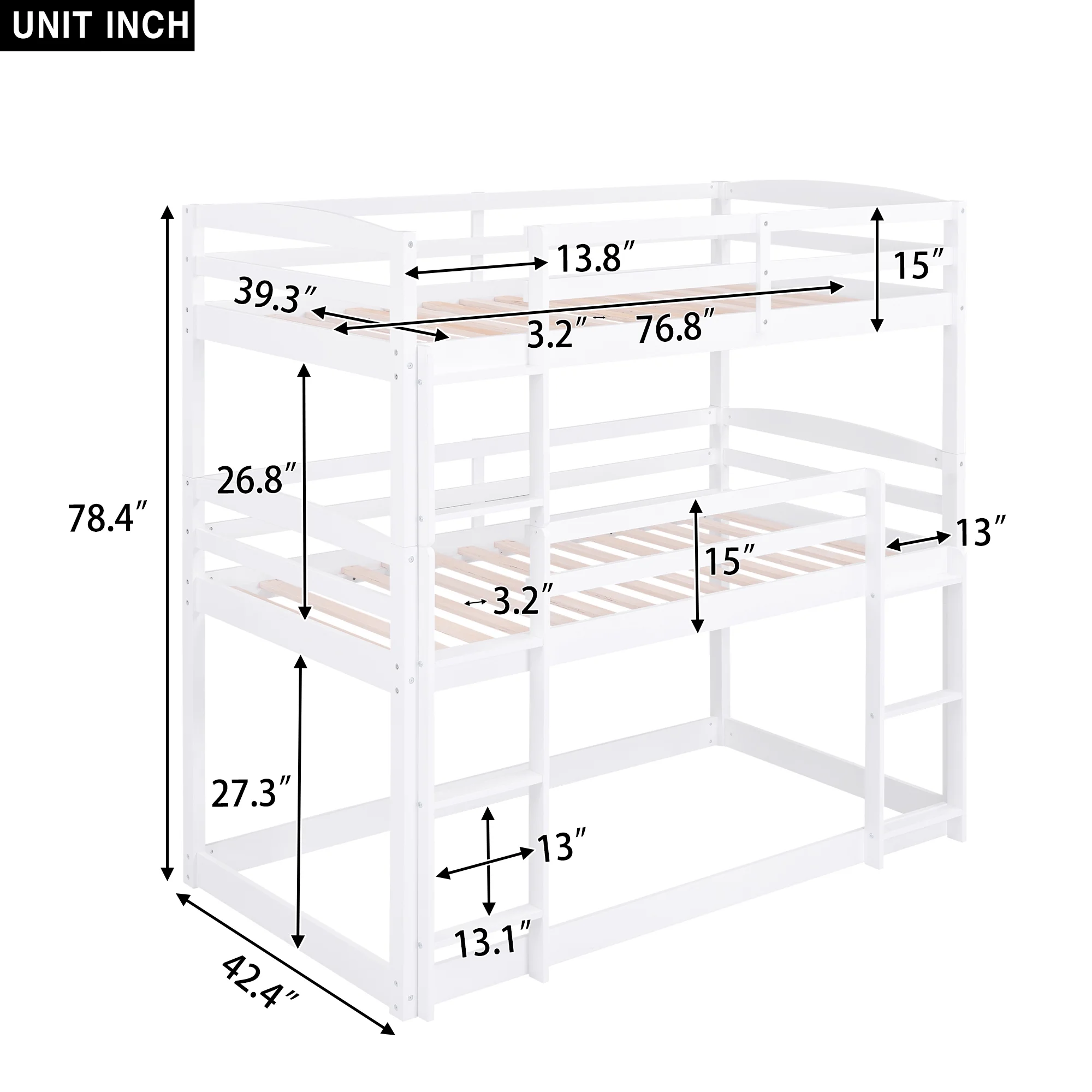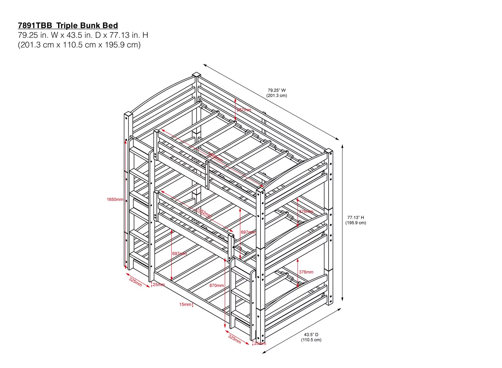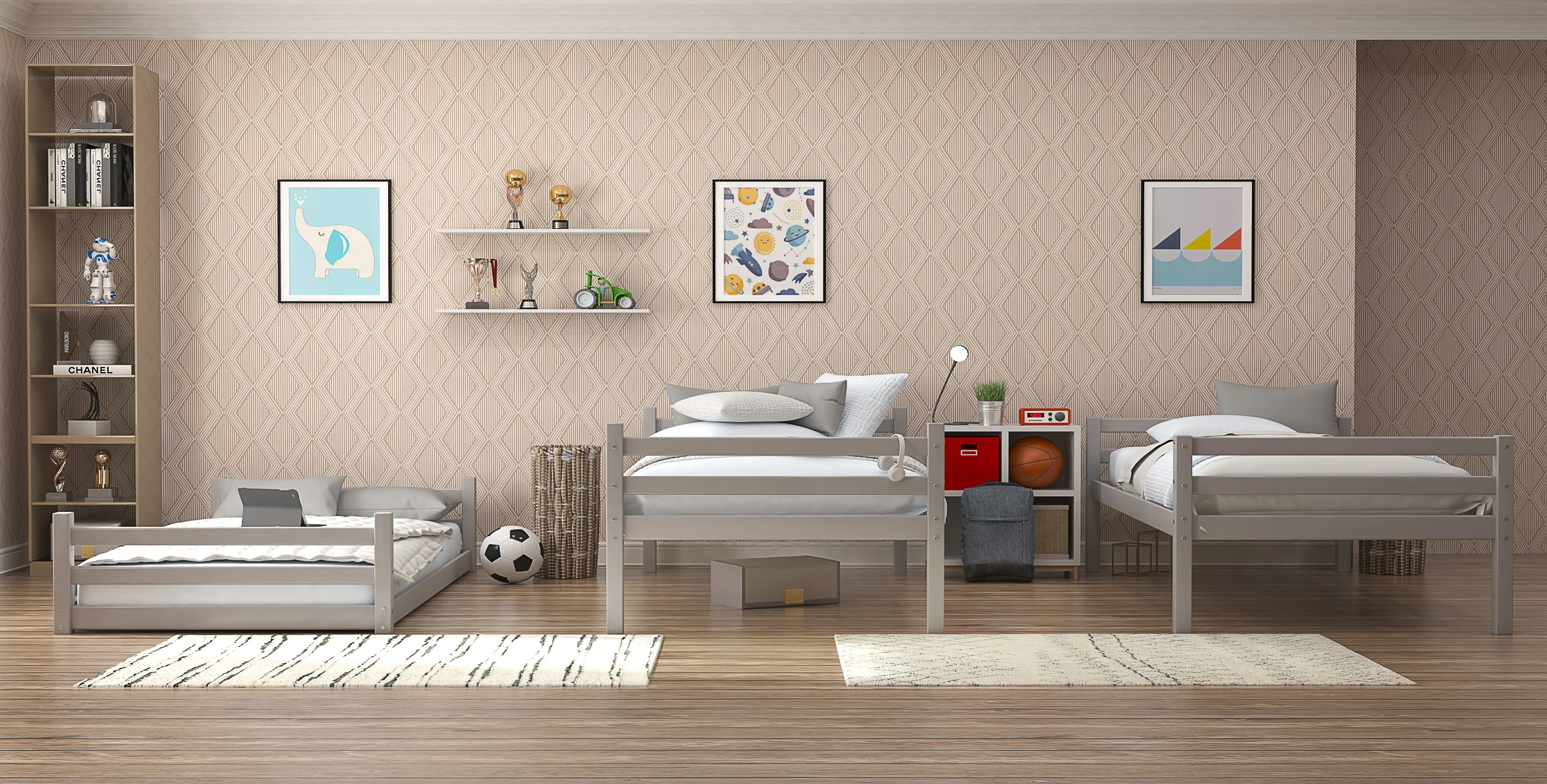 Campbell Wood Triple Twin Bunk Bed, Gray, by Hillsdale Living Essentials