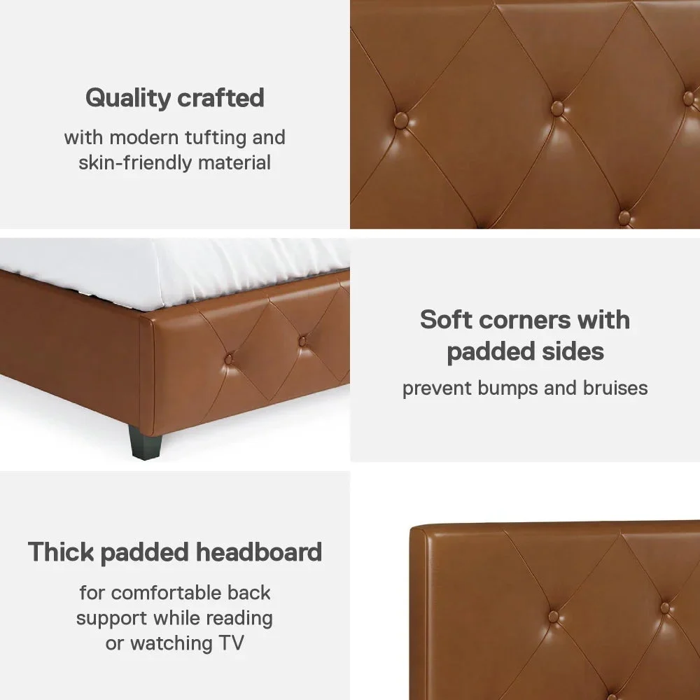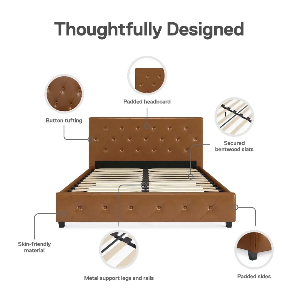 DHP Dakota Tufted Upholstered Platform Bed Frame, Camel Faux Leather