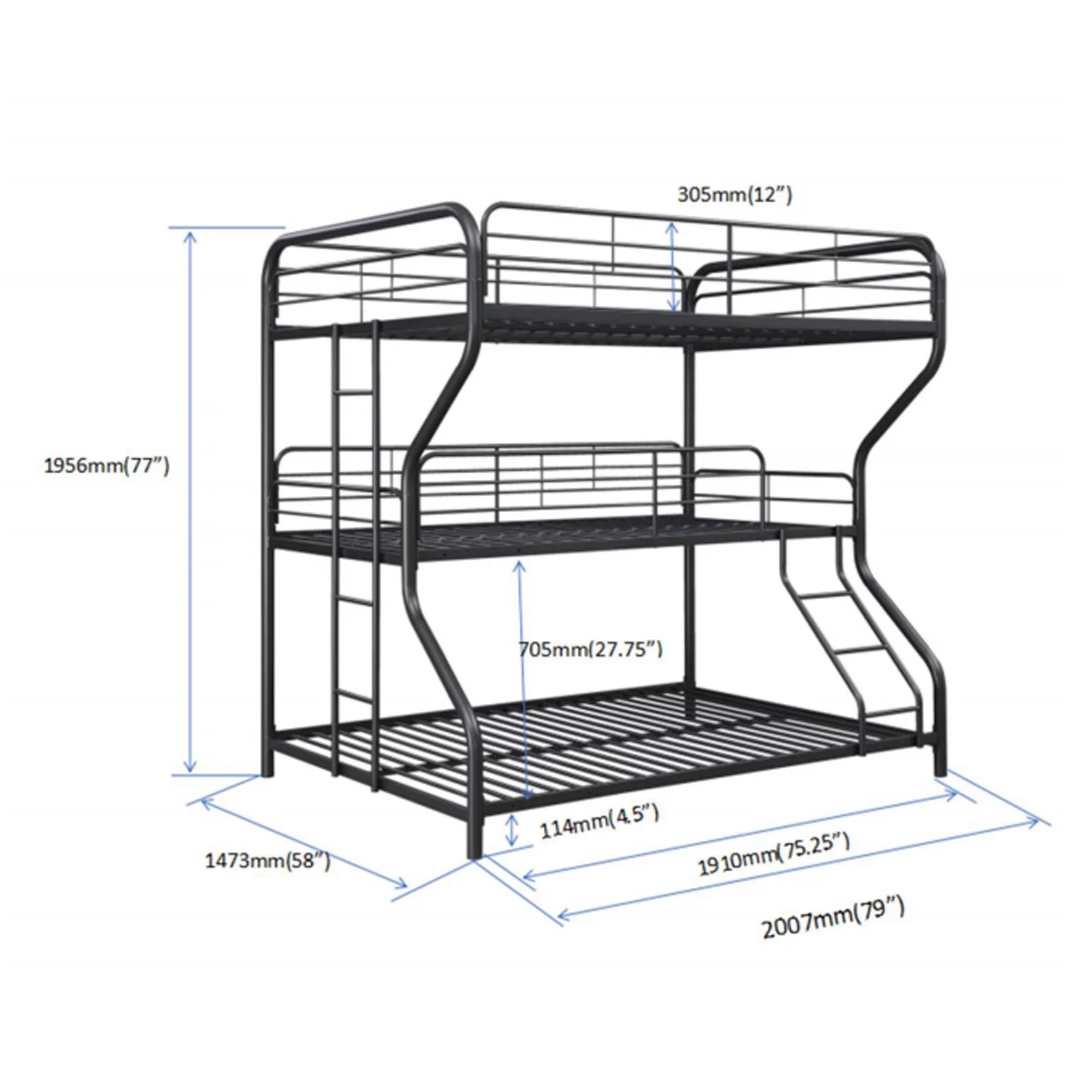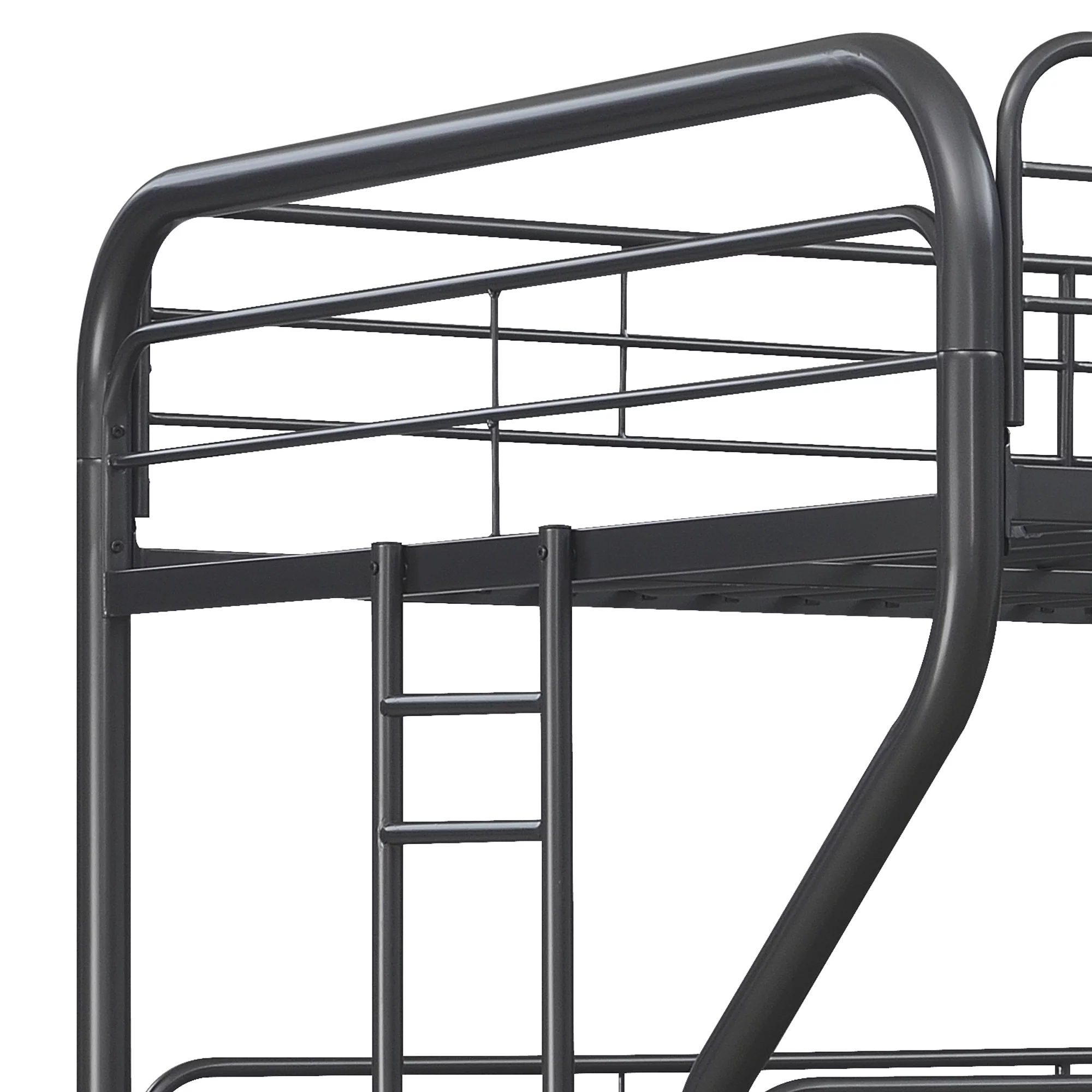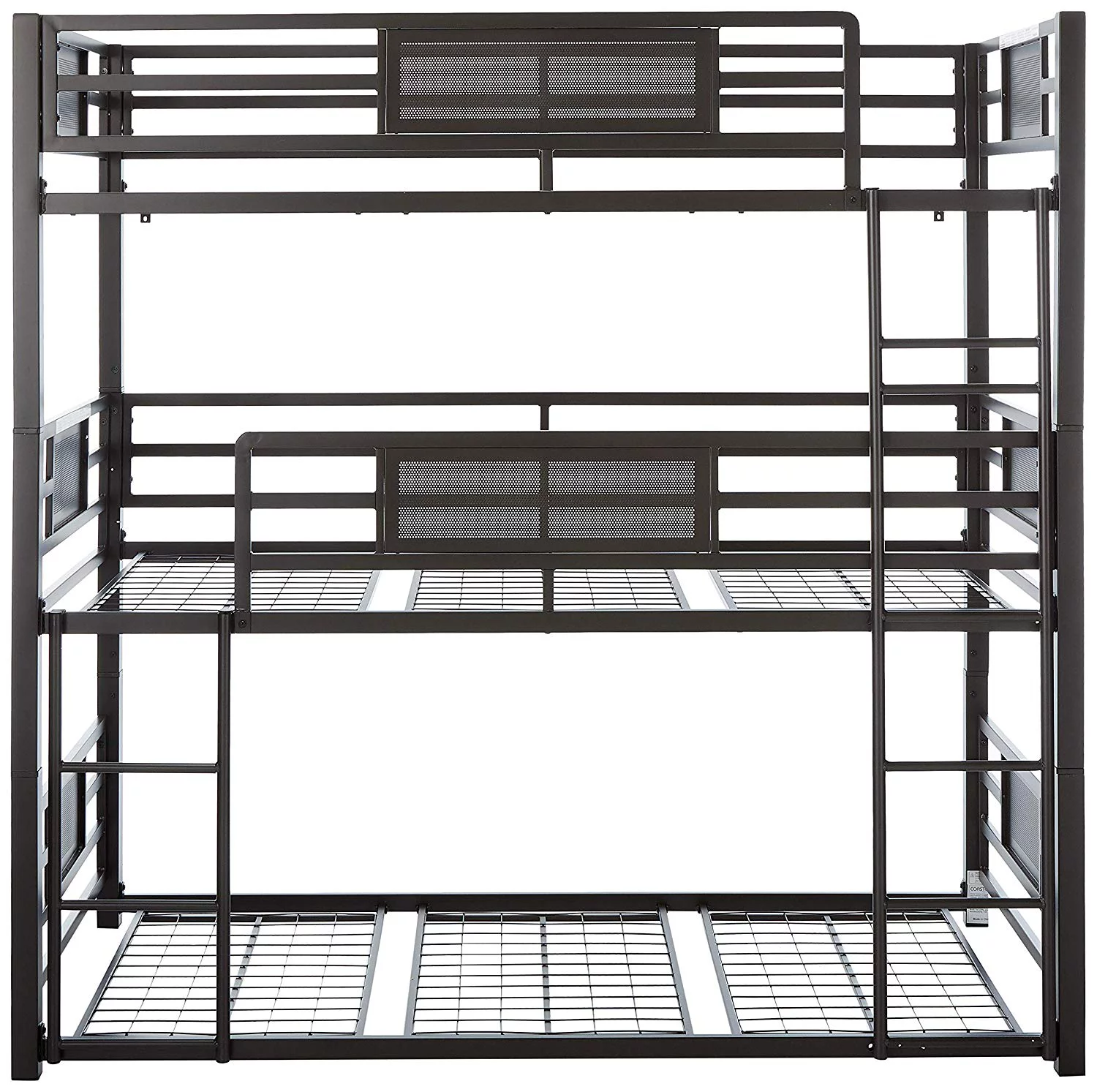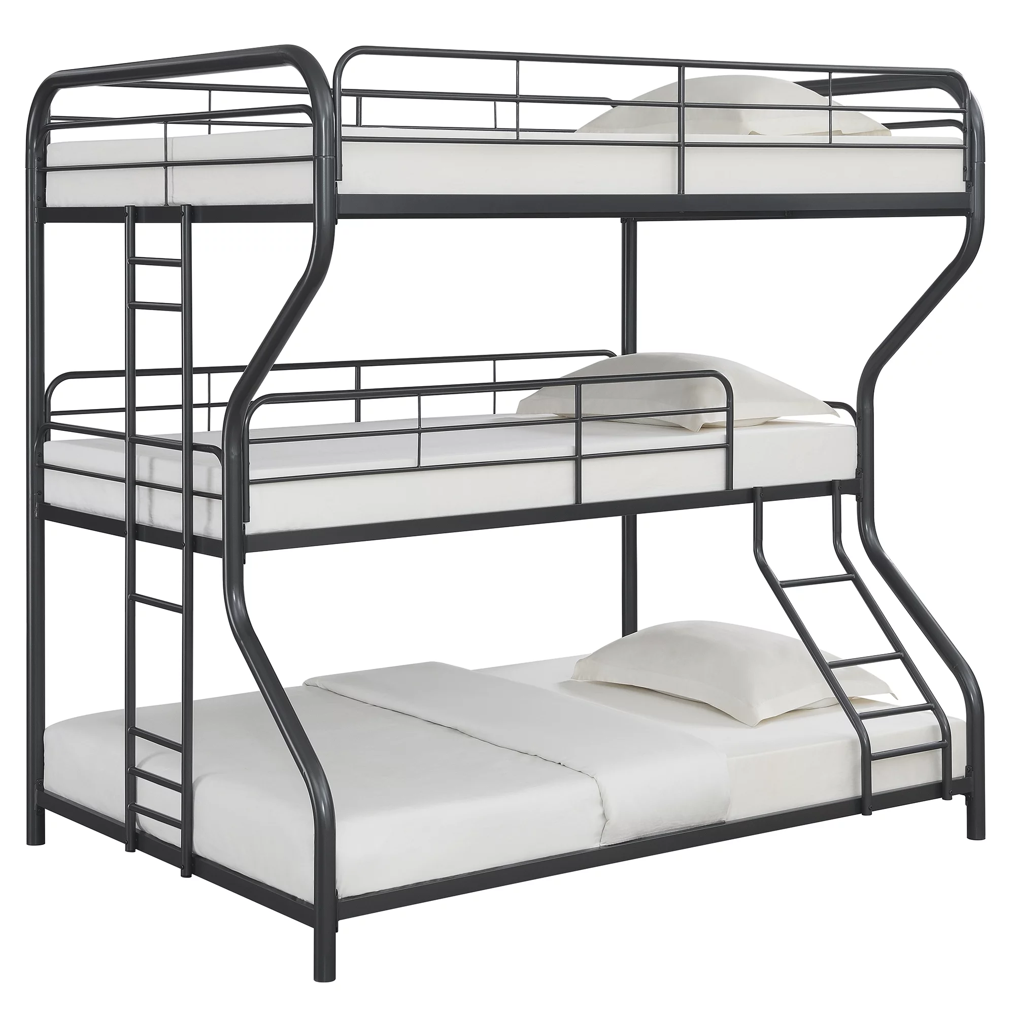 Momspeace Metal Triple Bunk Beds Full Over Twin Over Full Size Bed with 2 Ladders for Adults, Teens, Black