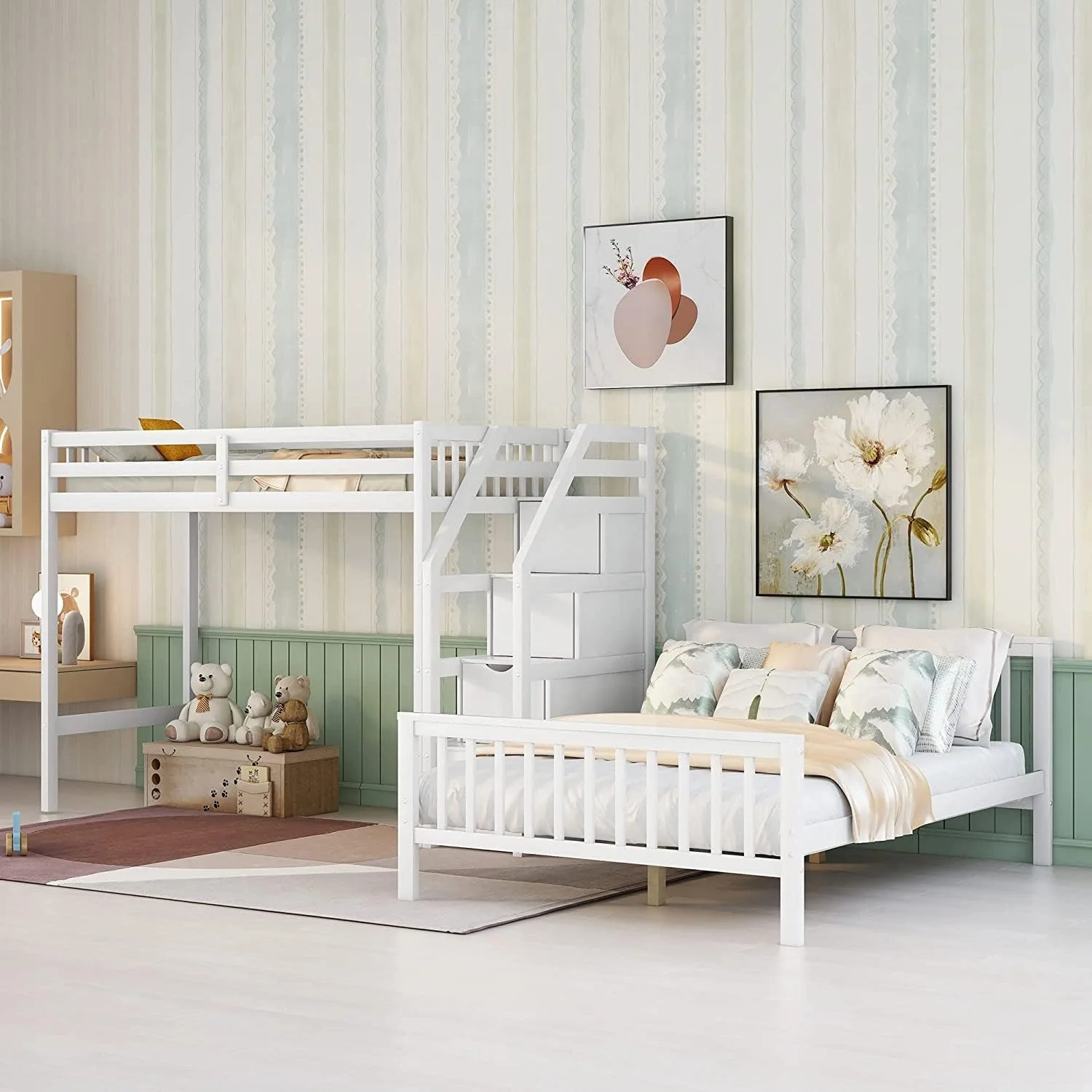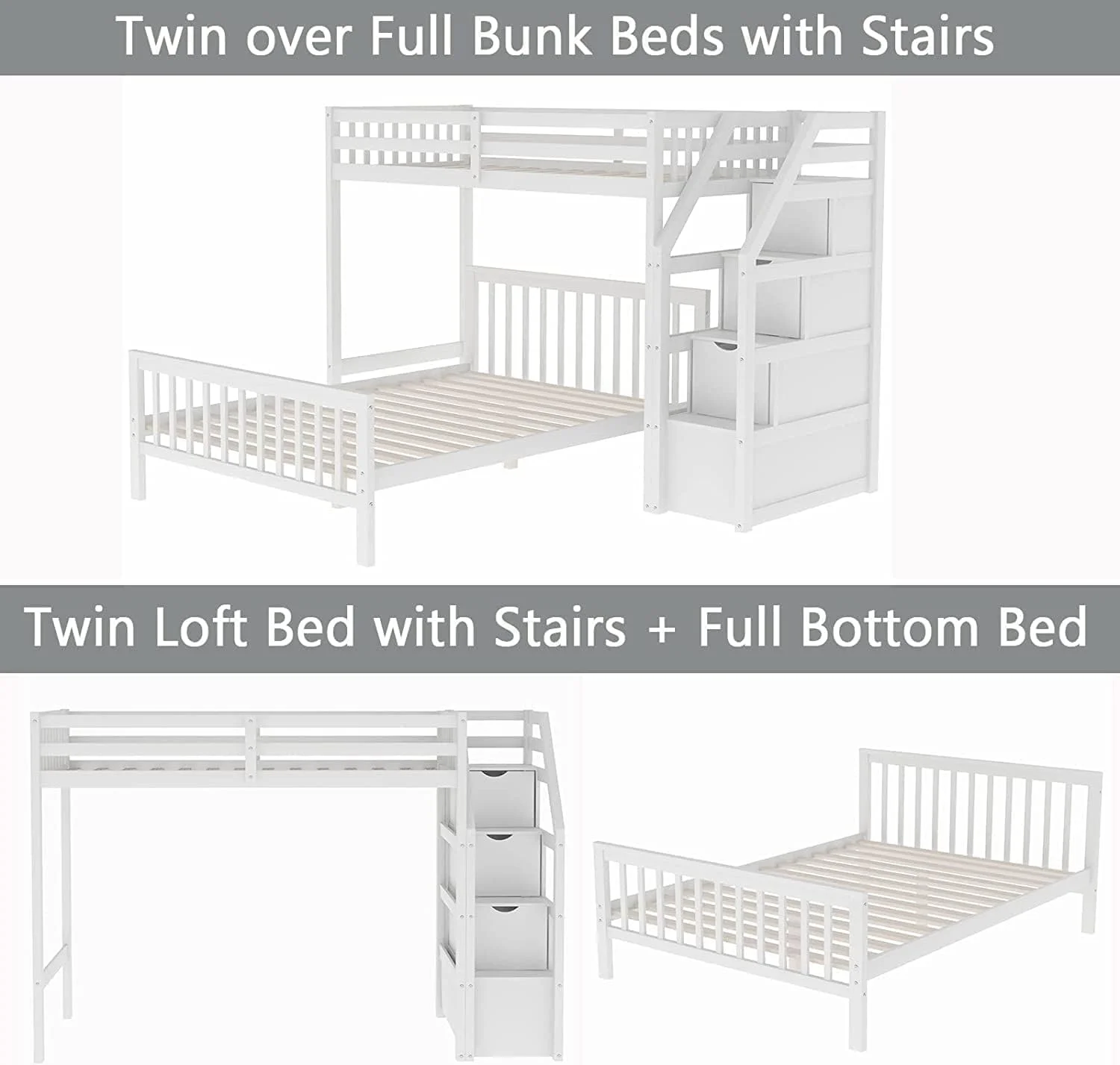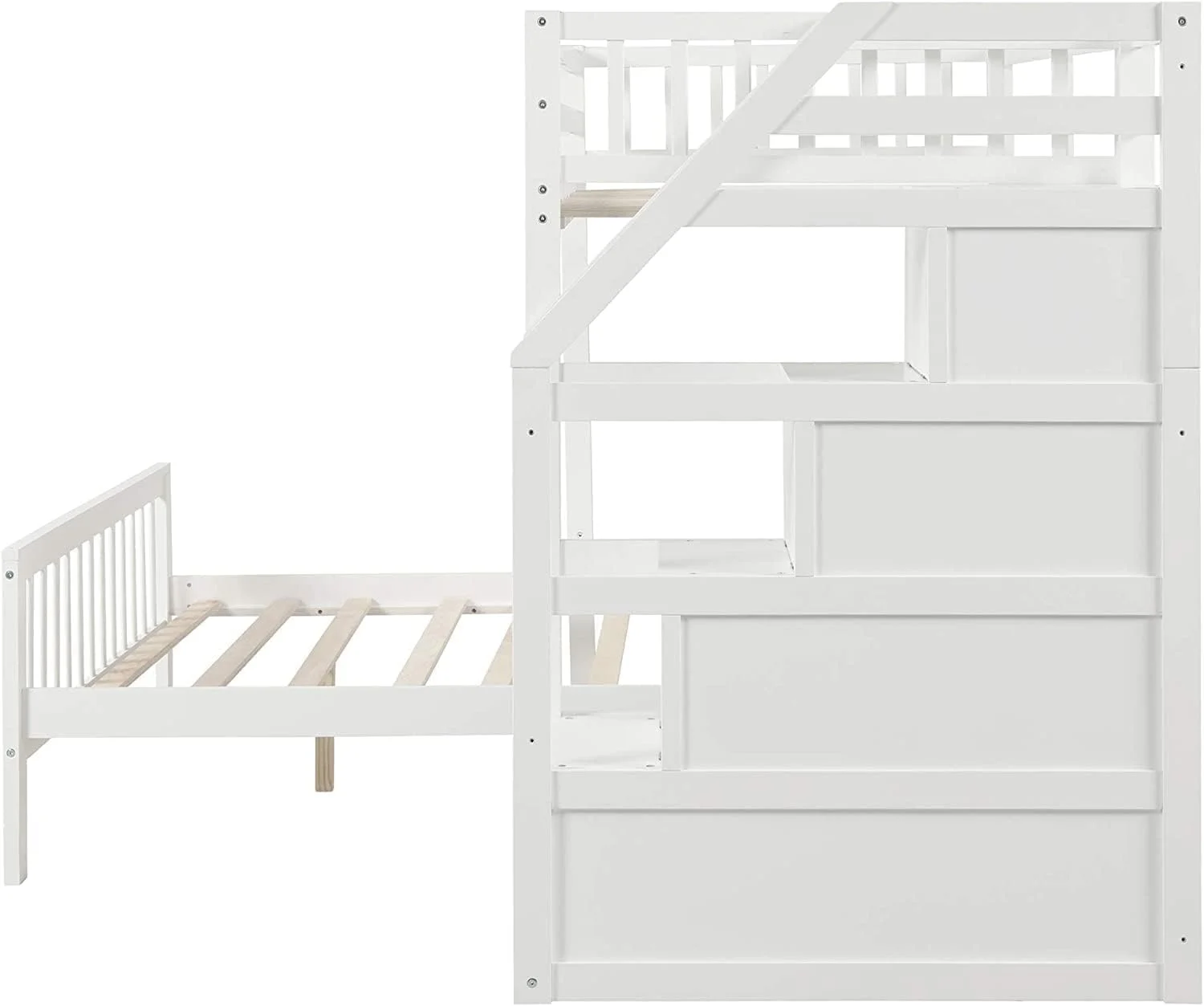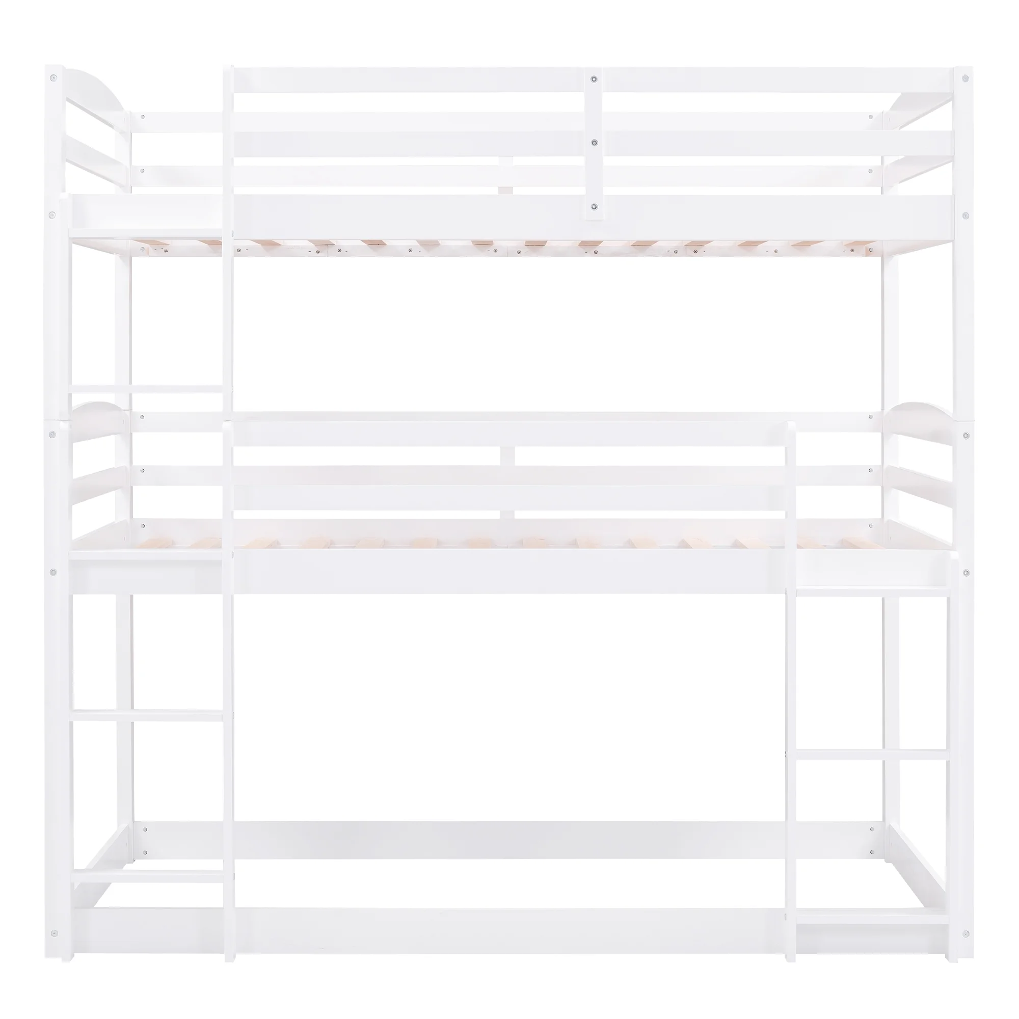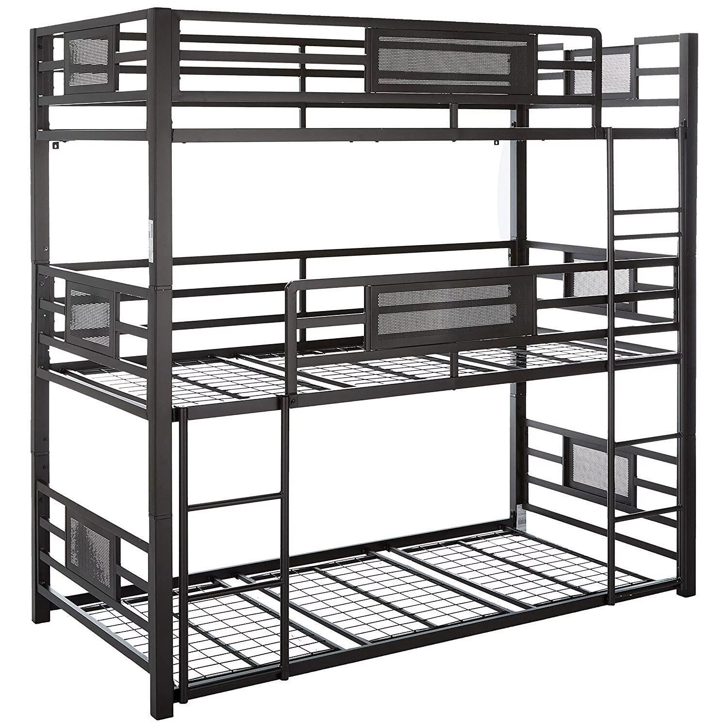 Momspeace Metal Triple Bunk Beds Full Over Twin Over Full Size Bed with 2 Ladders for Adults, Teens, Black