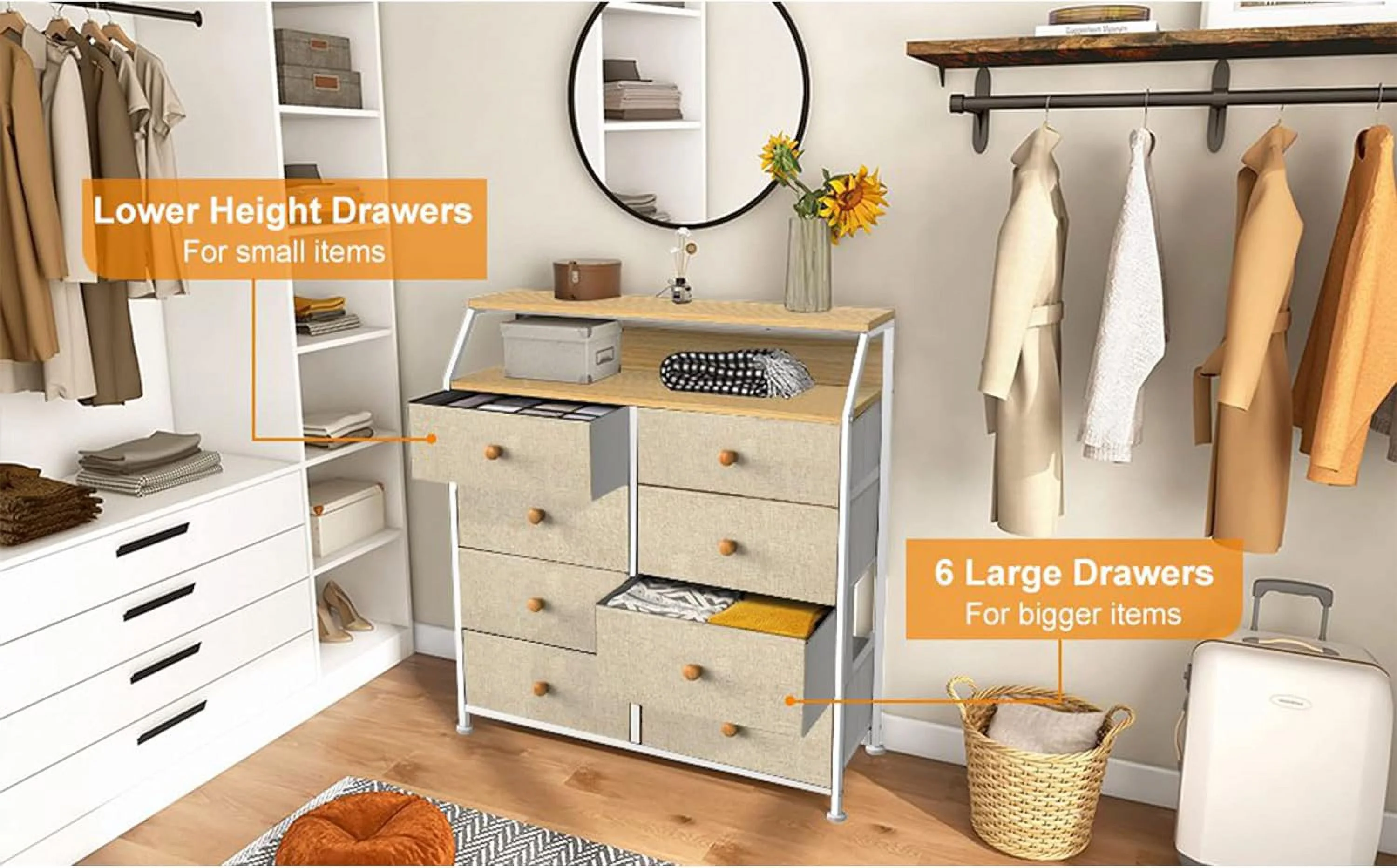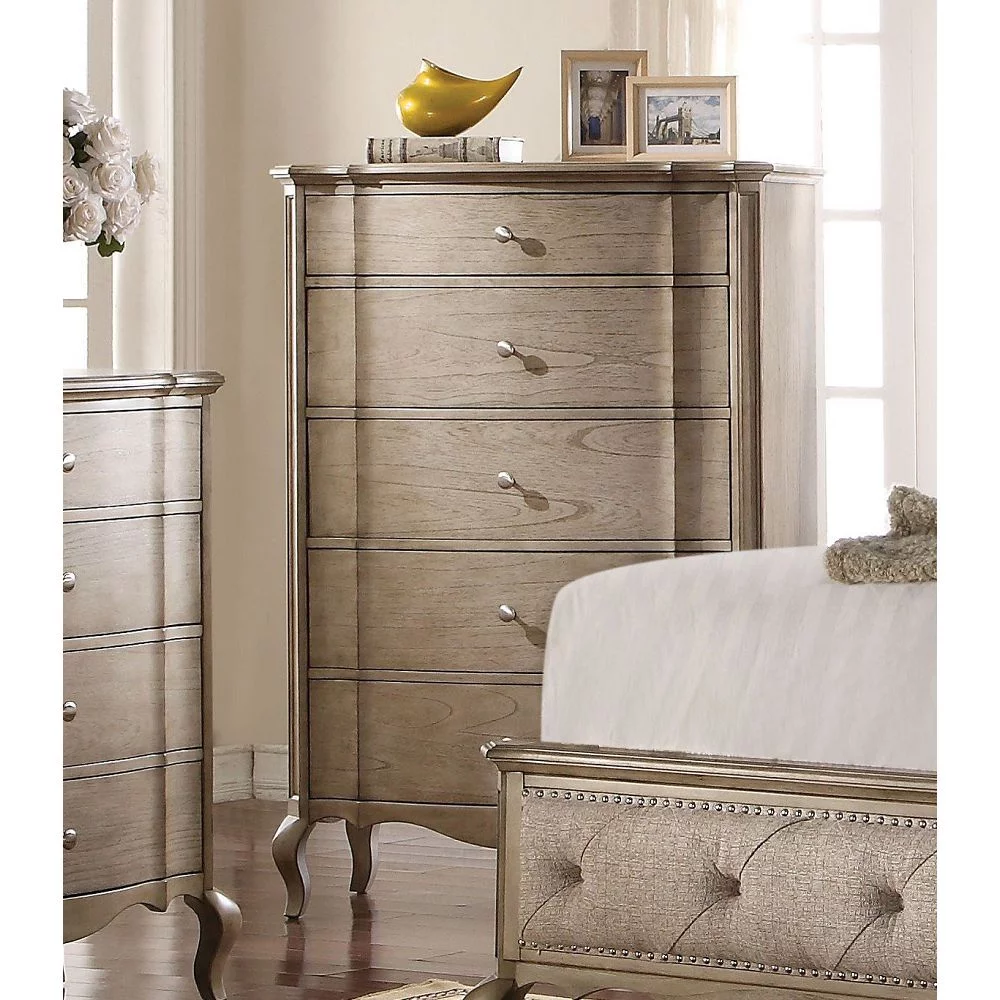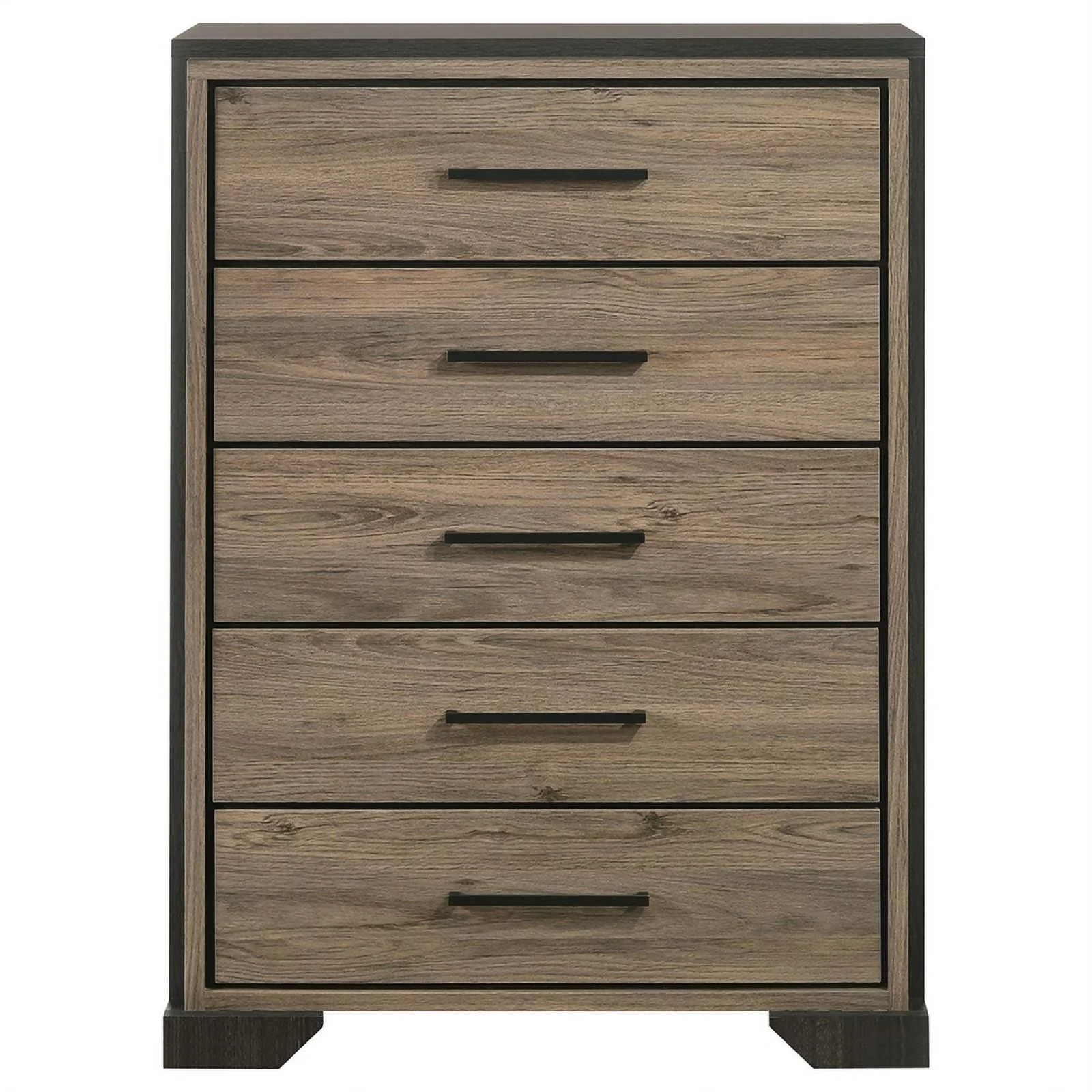 Pemberly Row Farmhouse 5-Drawer Farmhouse Wood Chest in Brown and Light Taupe
