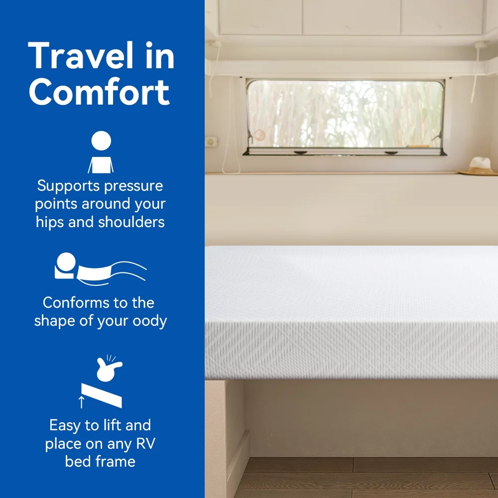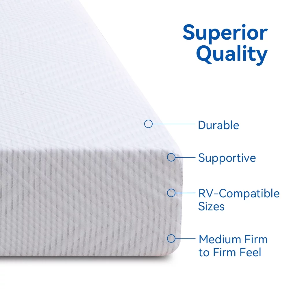 Hcore Ego White RV 10 inch Memory Foam Mattress, Short Queen Size Mattress in a Box, Medium Firm