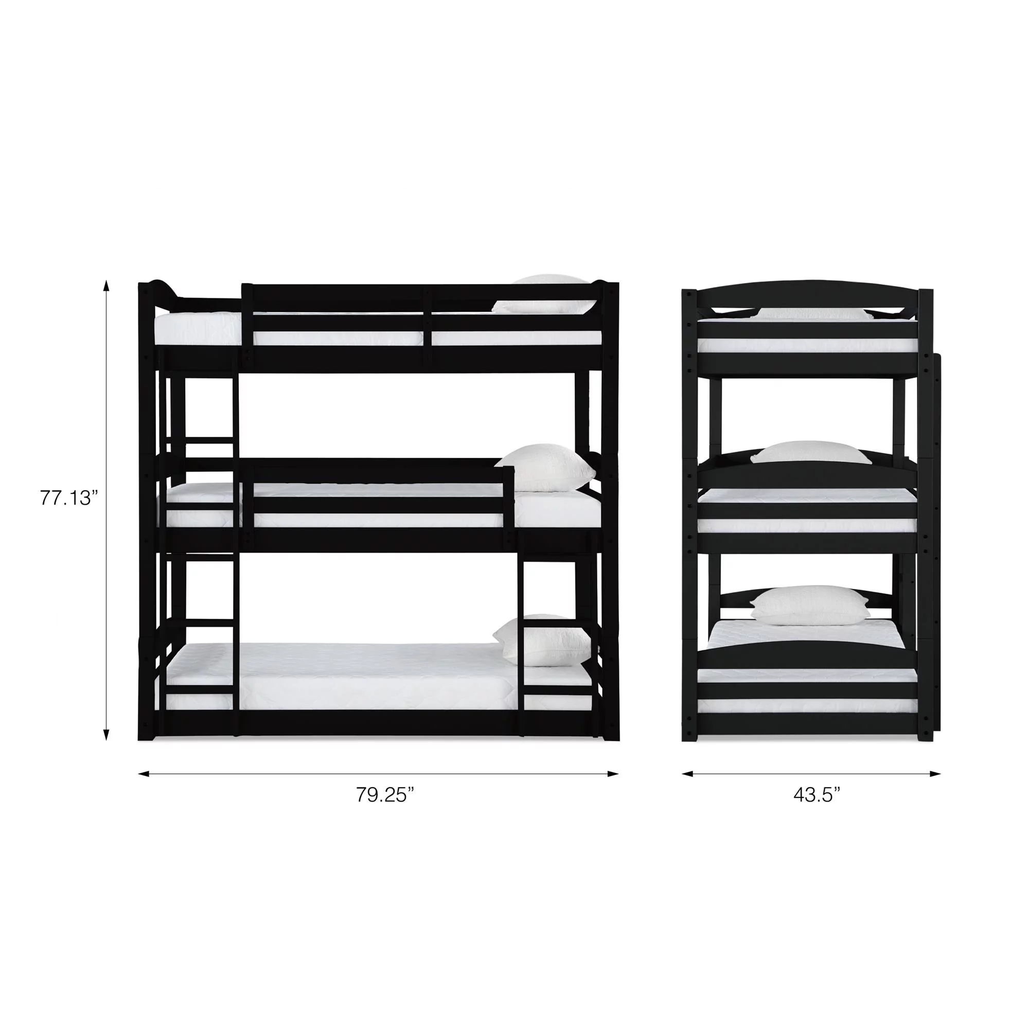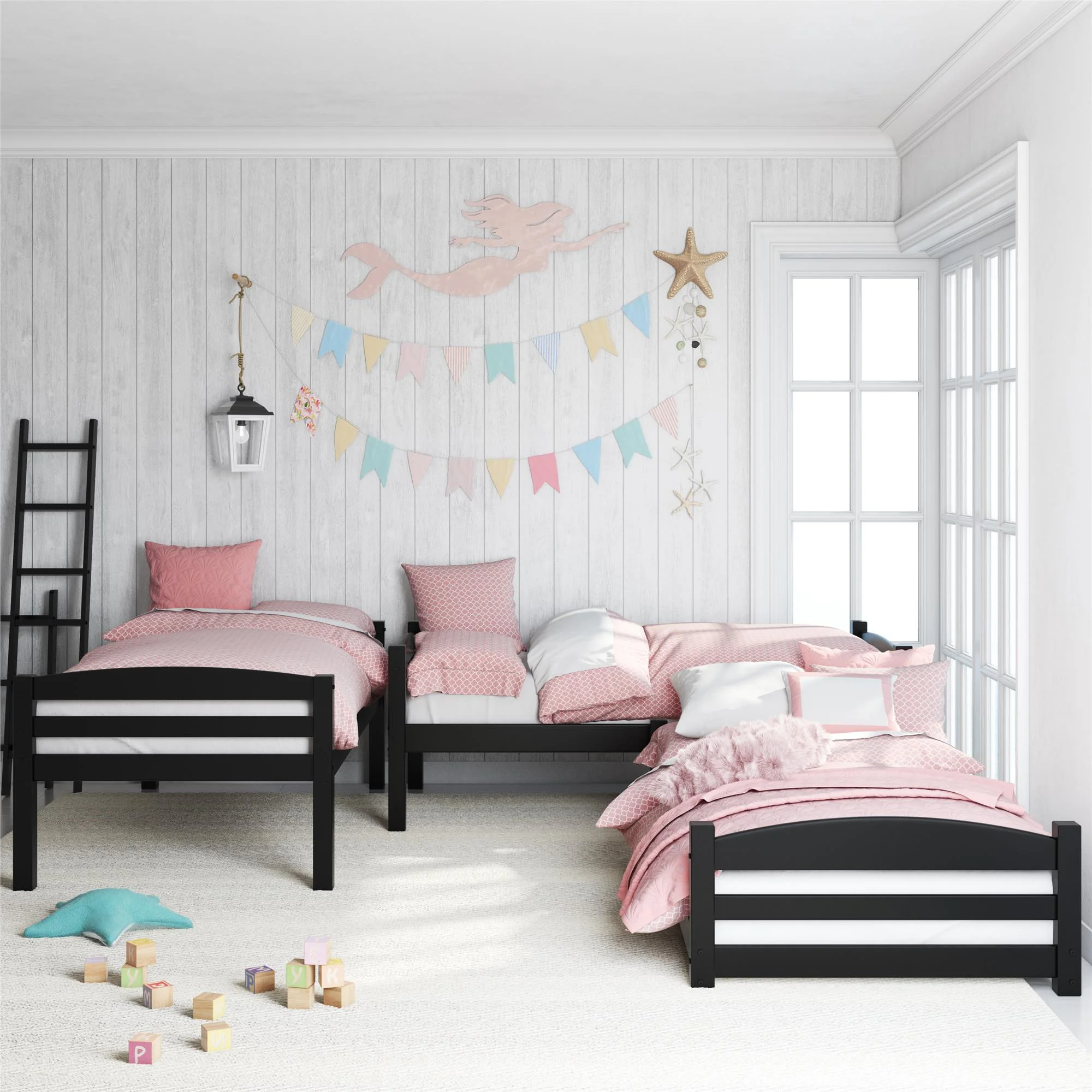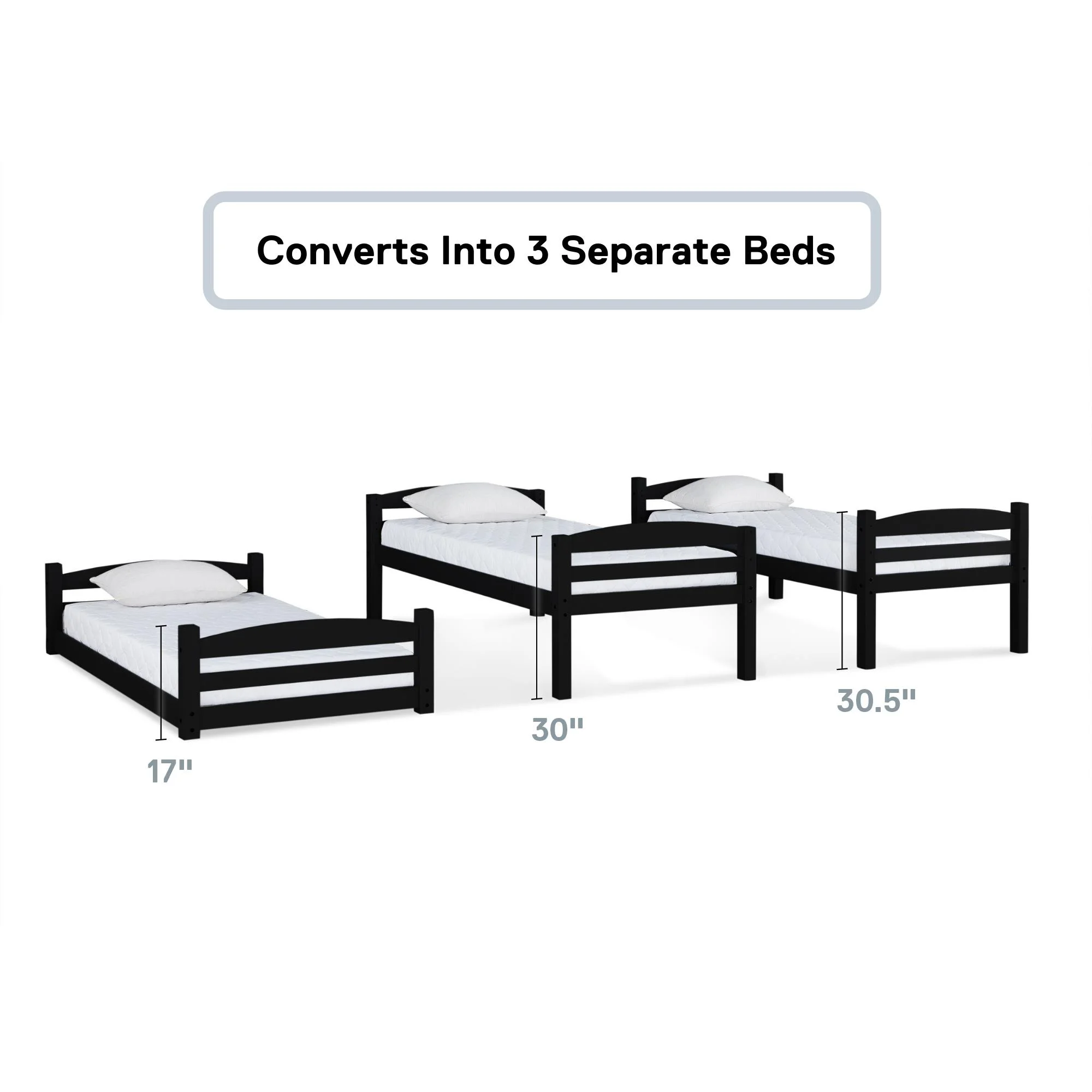 Better Homes & Gardens Tristan Triple Twin Convertible Floor Bunk Bed, Black
