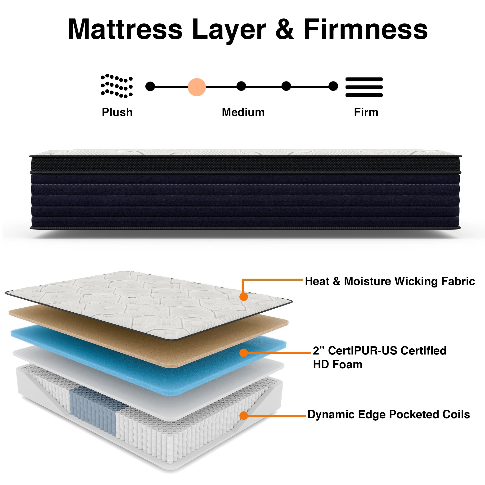 Glavbiku Twin Size Hybrid Mattress, 14" Premium Mattress for Bedroom,Waterfall-Top, Medium,Adult