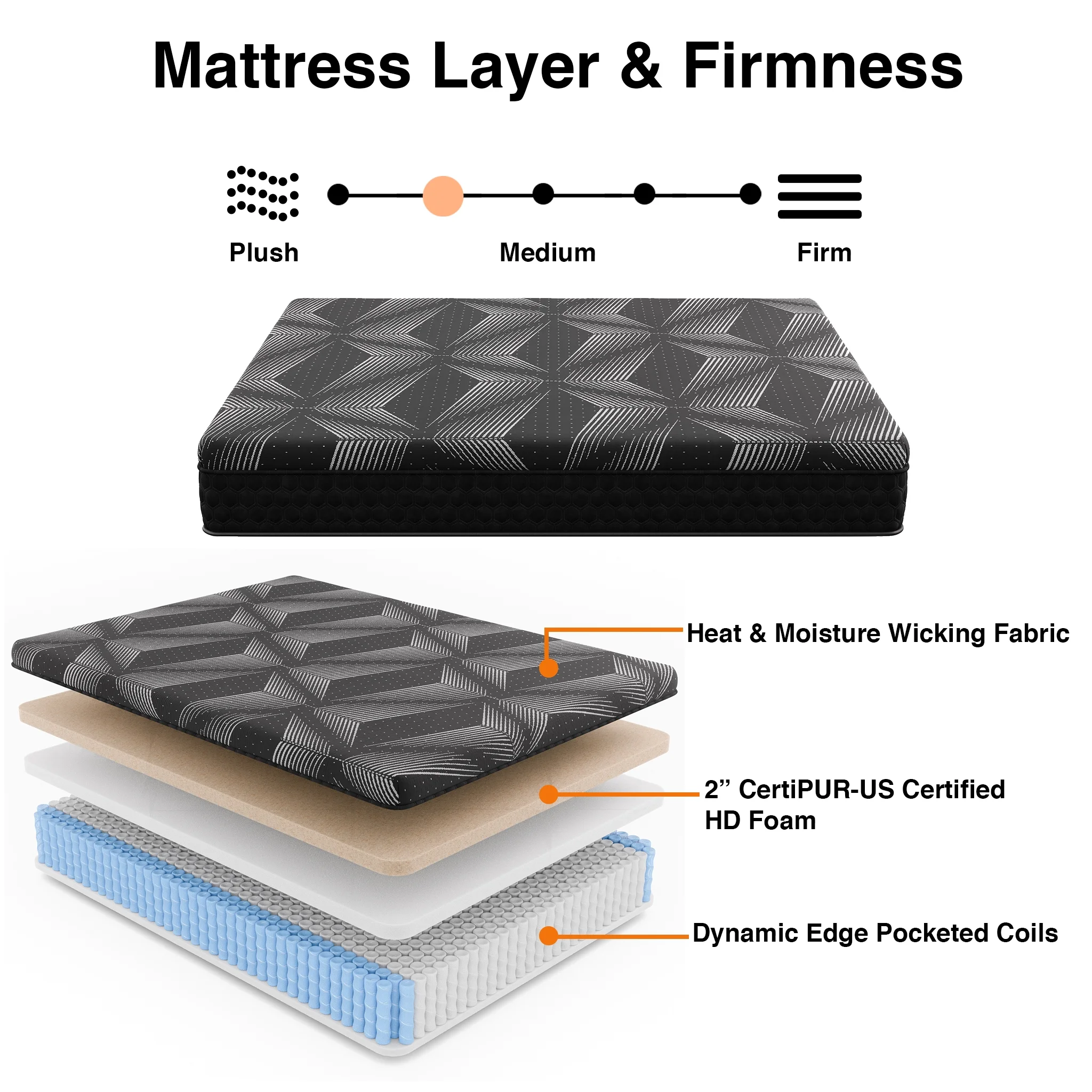 Glavbiku Twin Size Hybrid Mattress,12.5" Premium Mattress for Bedroom,Waterfall-Top,Medium,Adult