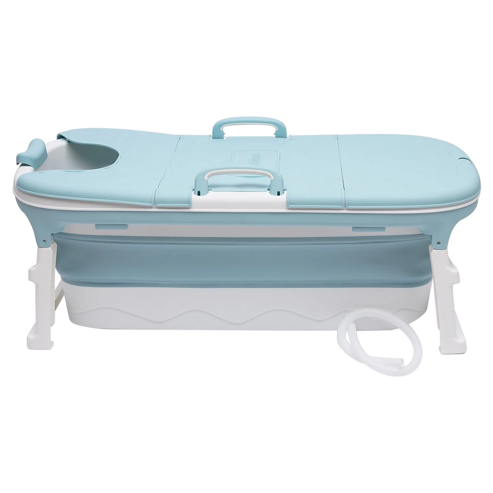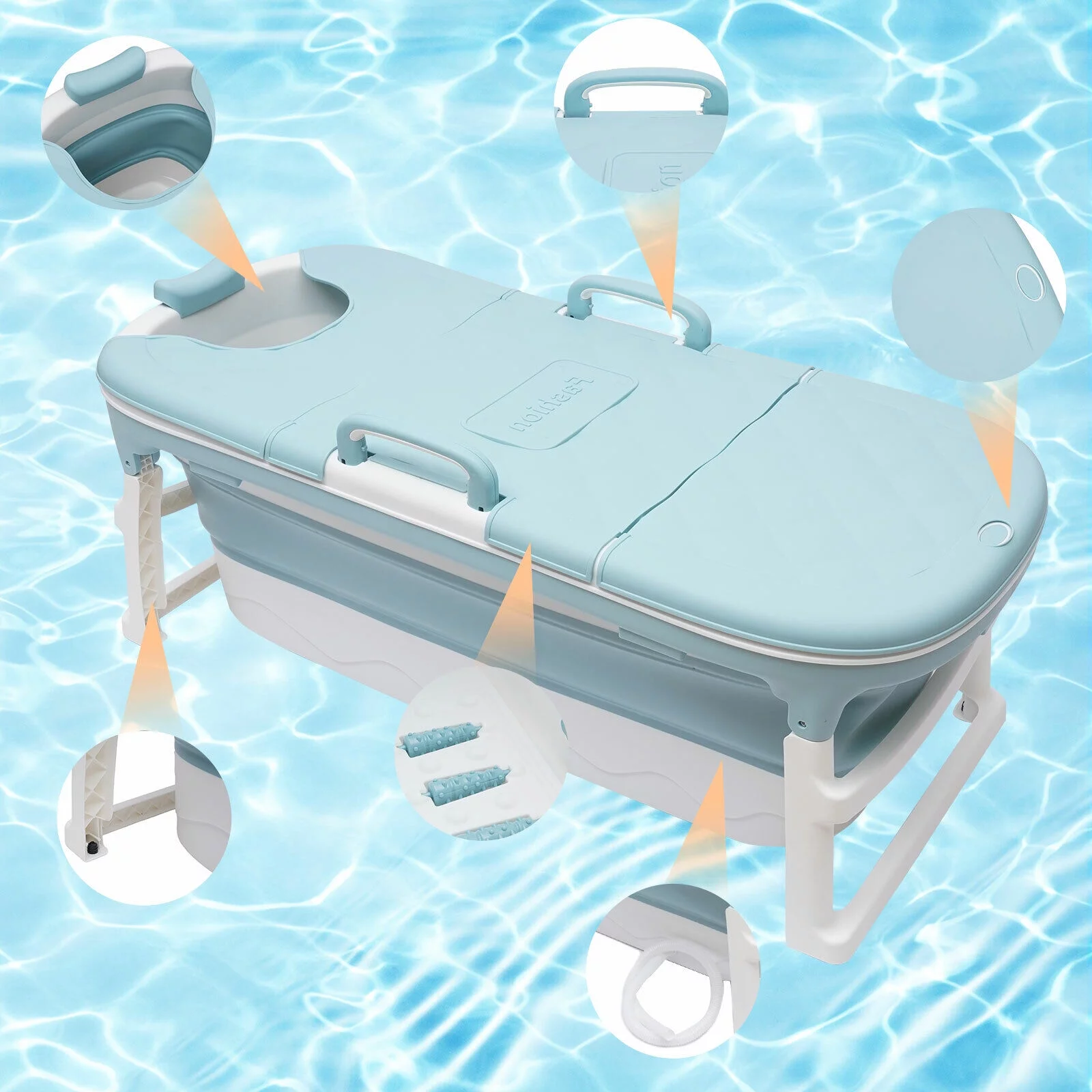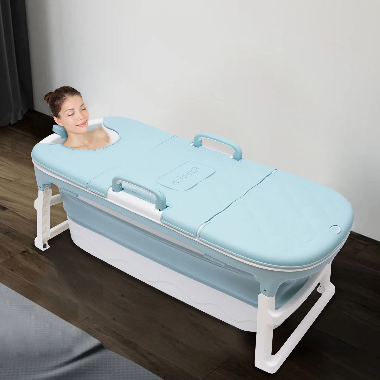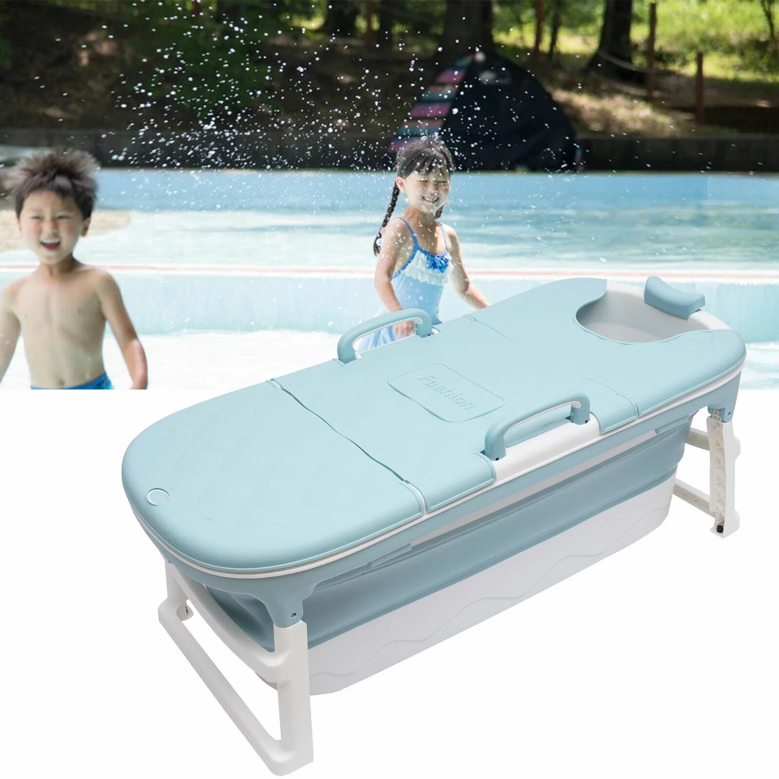 ZhdnBhnos 54'' Portable Bathtub Water Tub Folding Spa Bath Bucket Barrel Free-Standing Plastic Soaking Tub w/ Lid