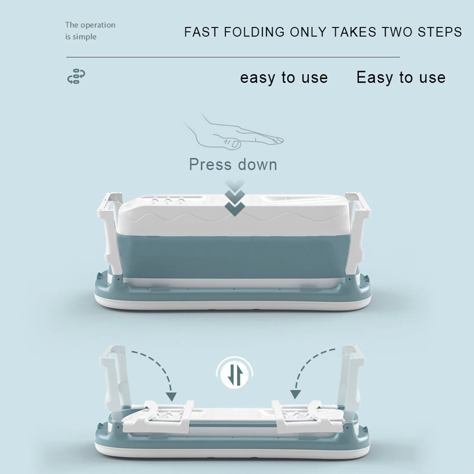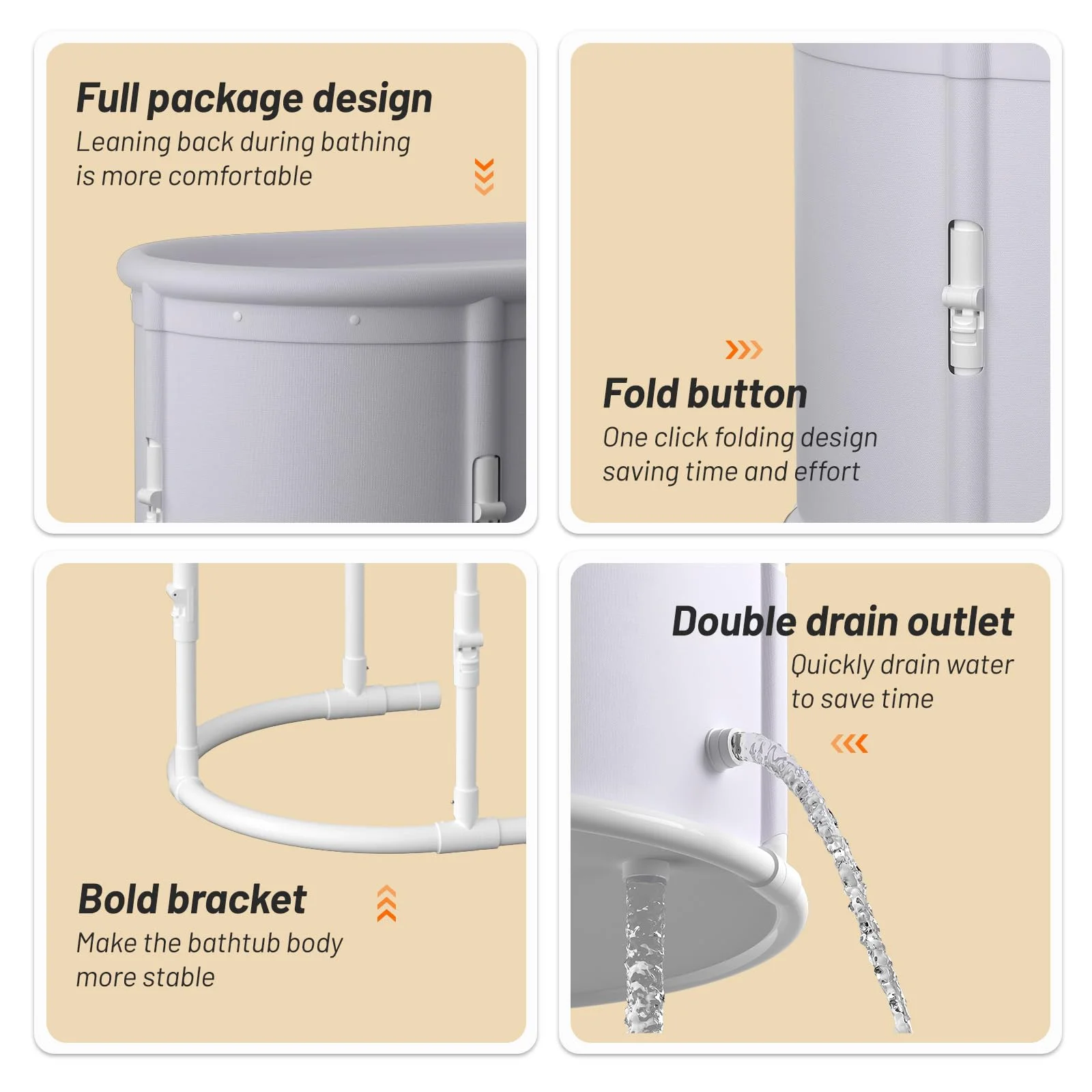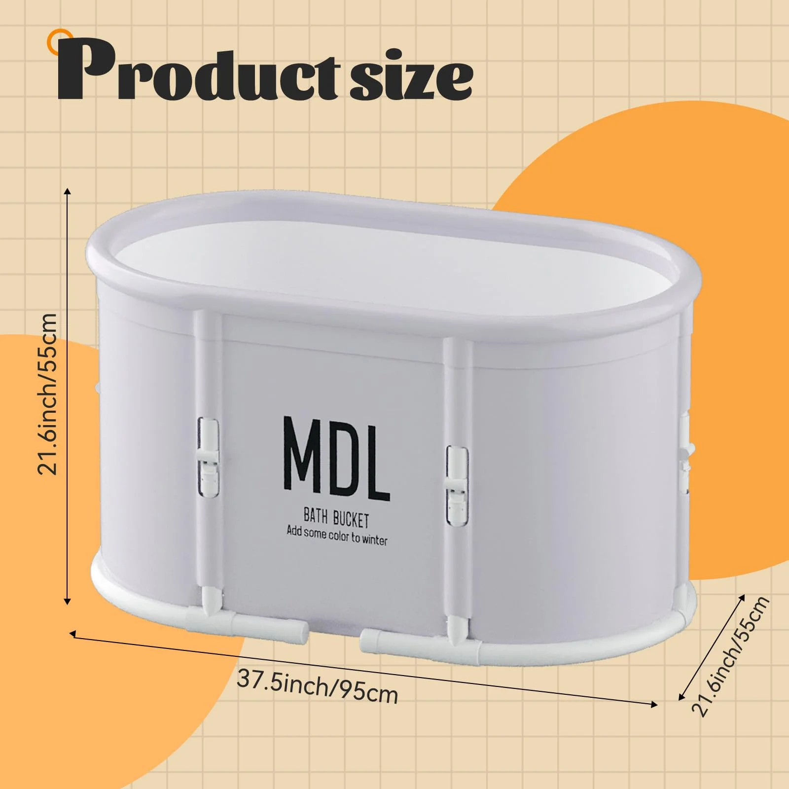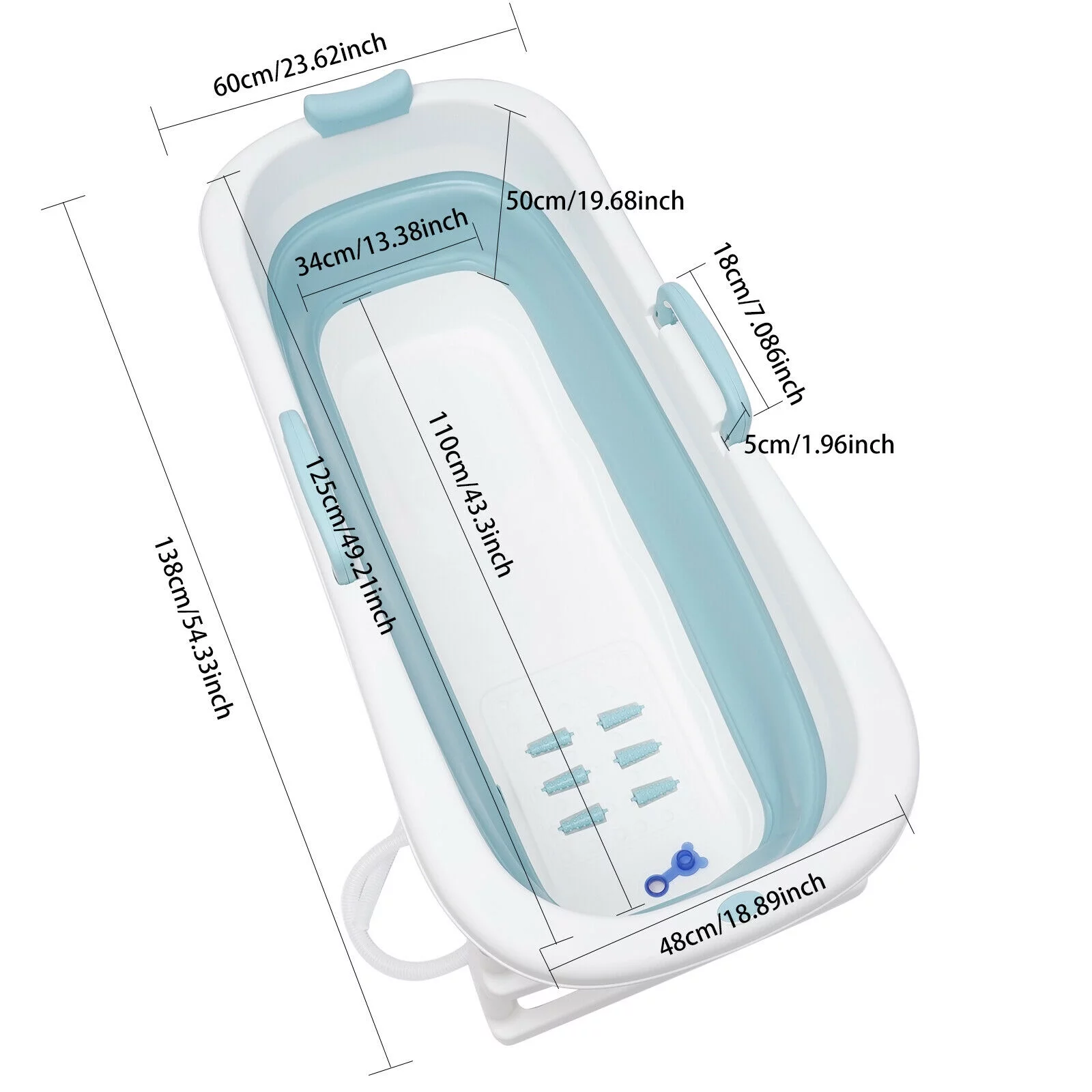 ZhdnBhnos 54'' Portable Bathtub Water Tub Folding Spa Bath Bucket Barrel Free-Standing Plastic Soaking Tub w/ Lid