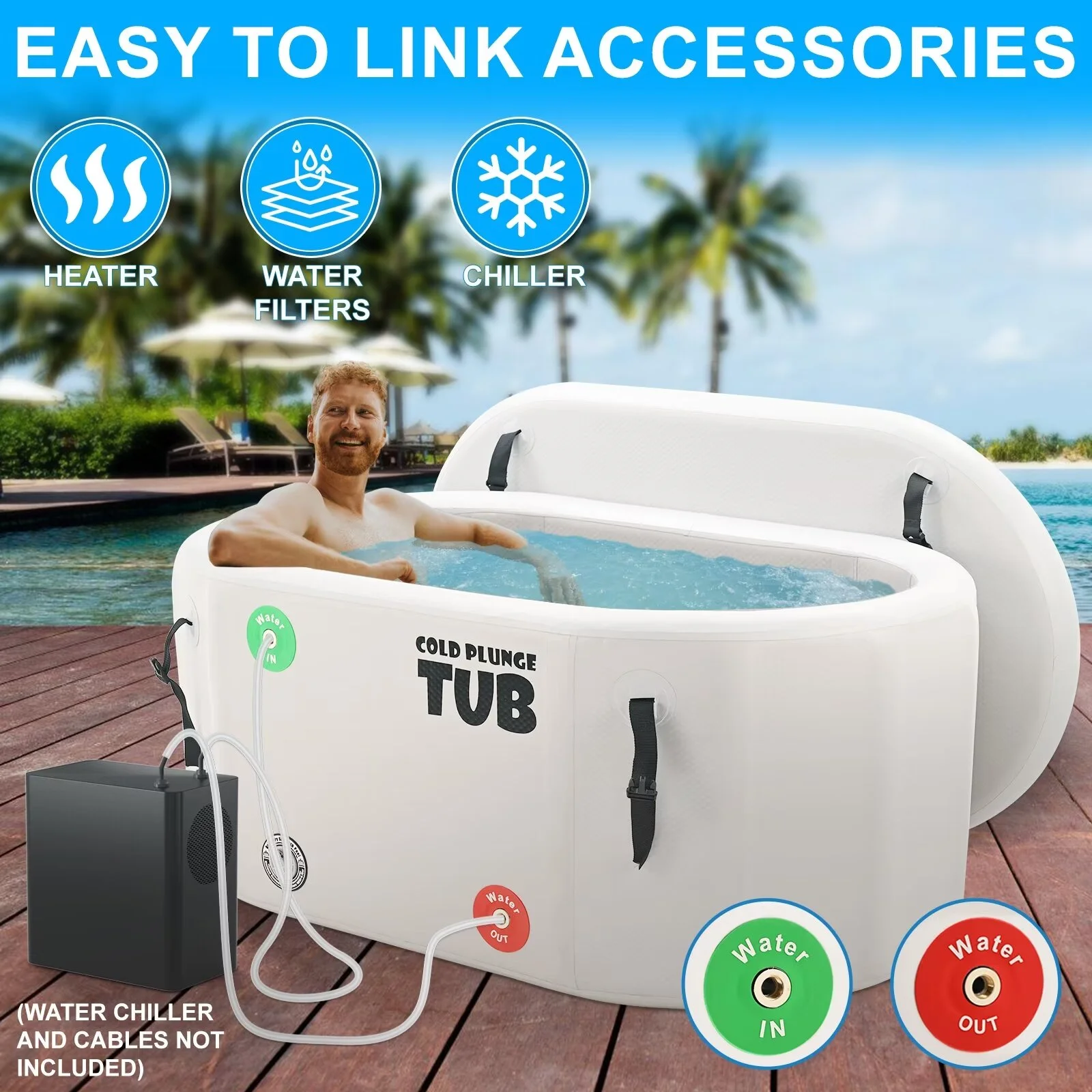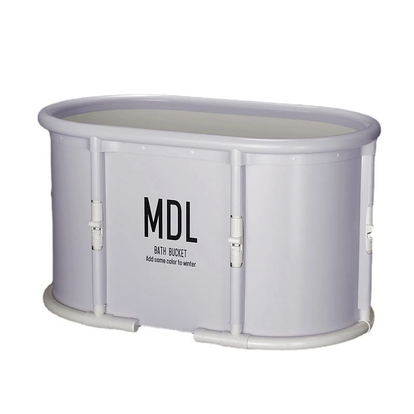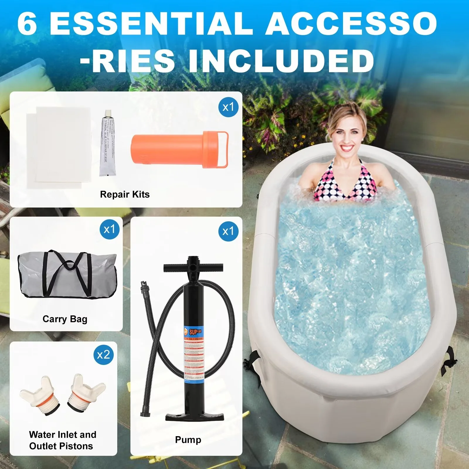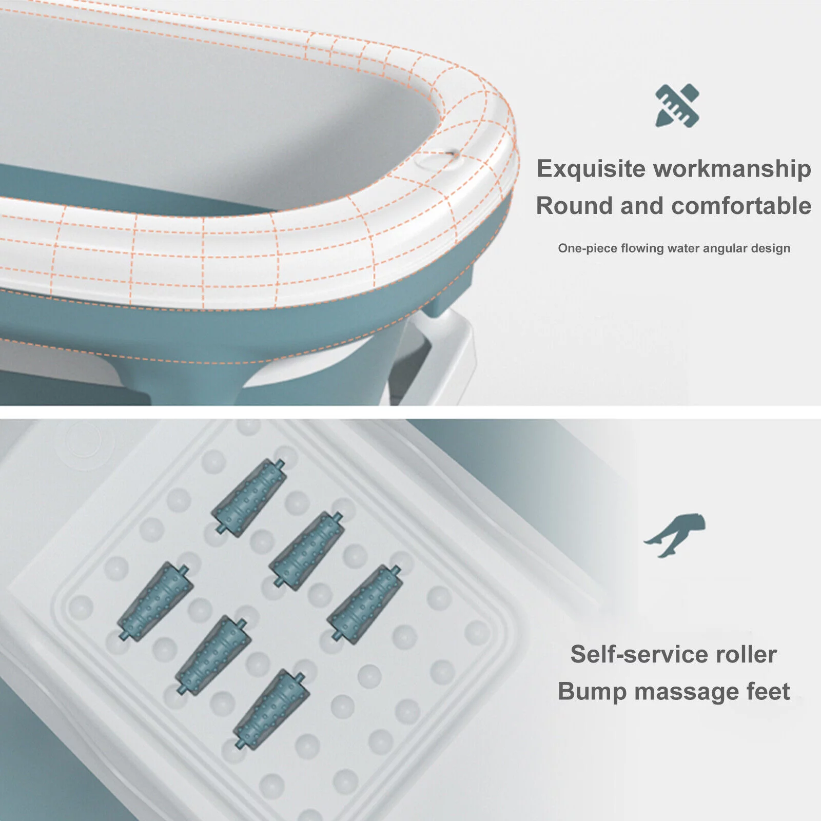 ZhdnBhnos 54'' Portable Bathtub Water Tub Folding Spa Bath Bucket Barrel Free-Standing Plastic Soaking Tub w/ Lid