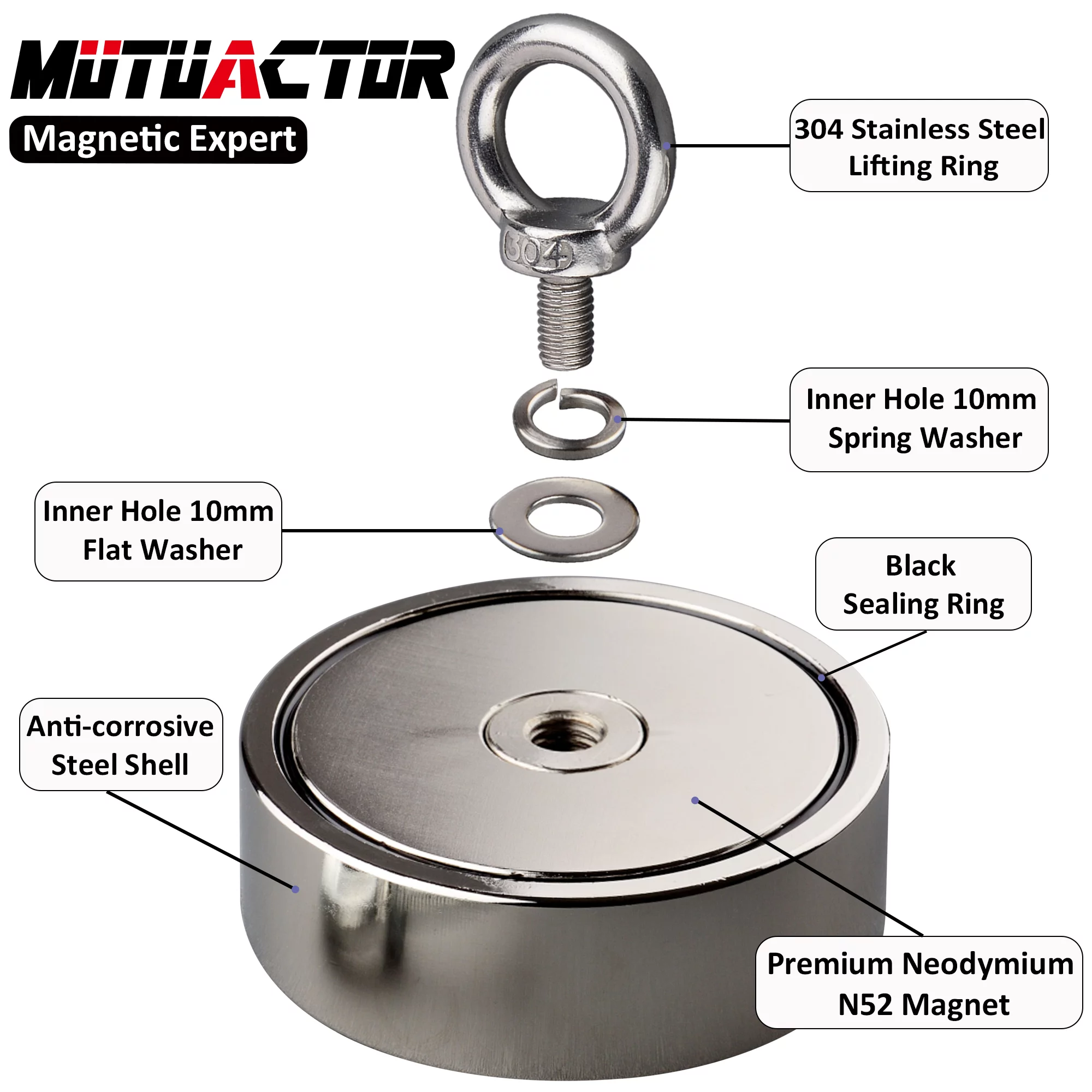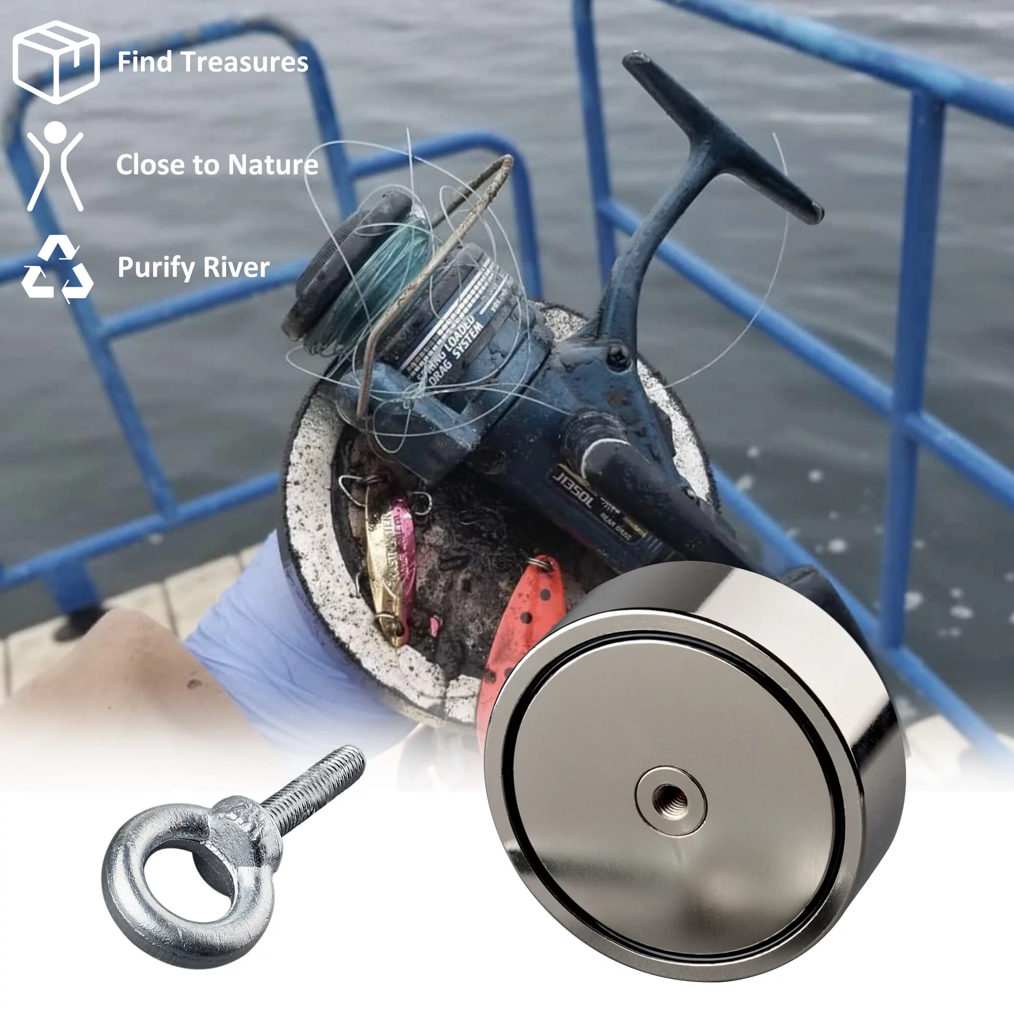Fishing Magnet Kit 350LBS - 1300LBS Upto 1300 lbs Pull Force Strong Neodymium + Rope + Carabiner (500 LBS)