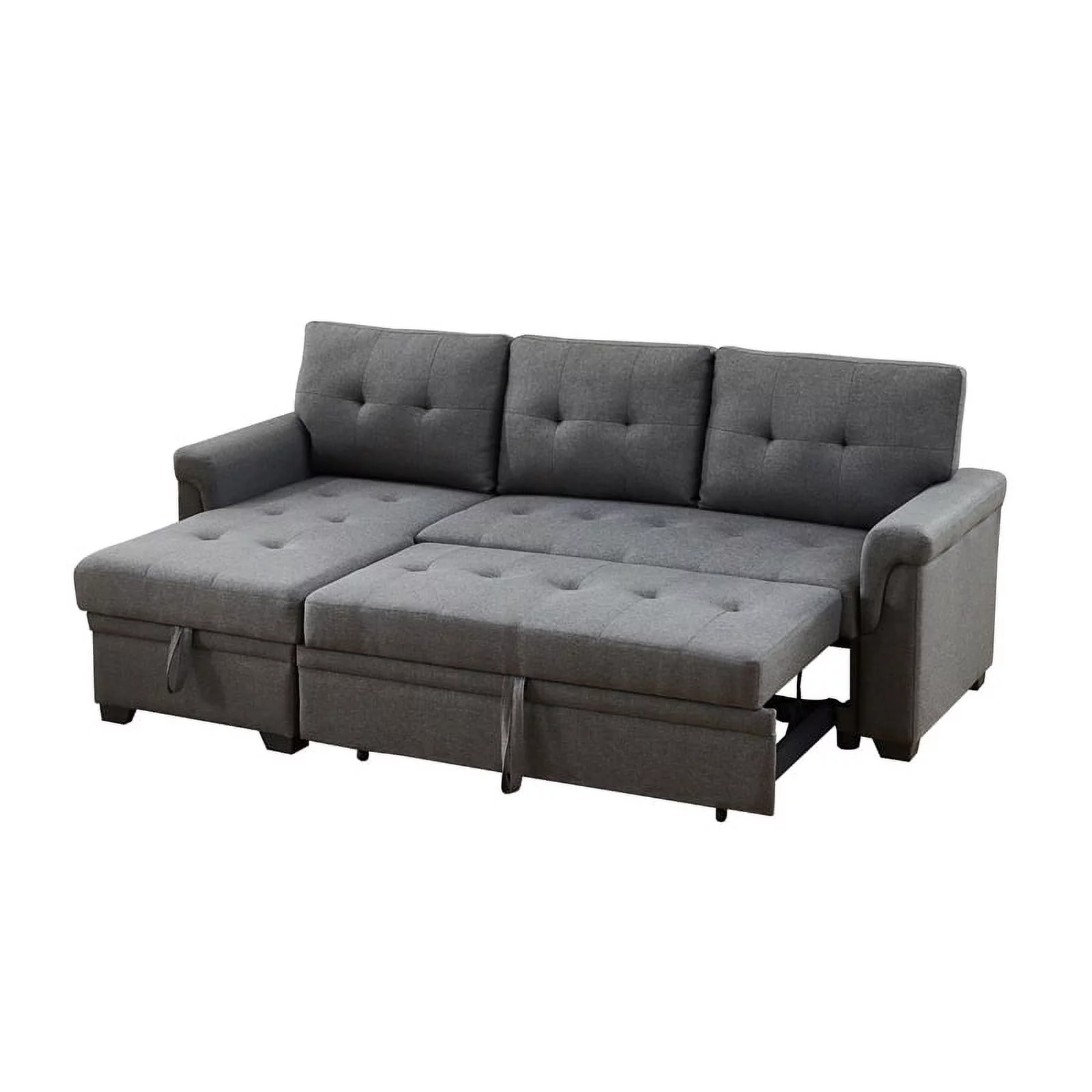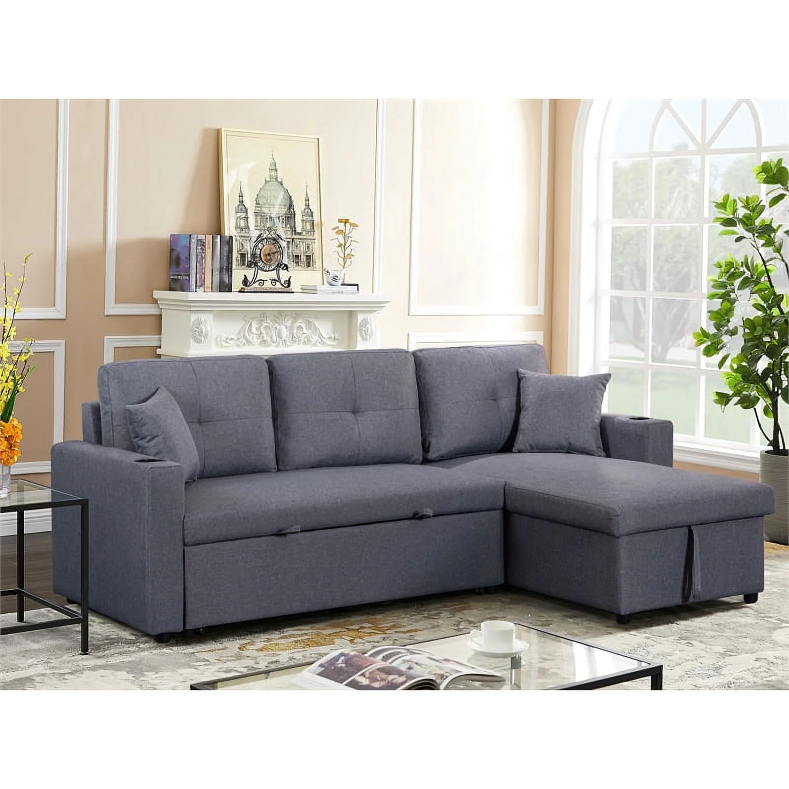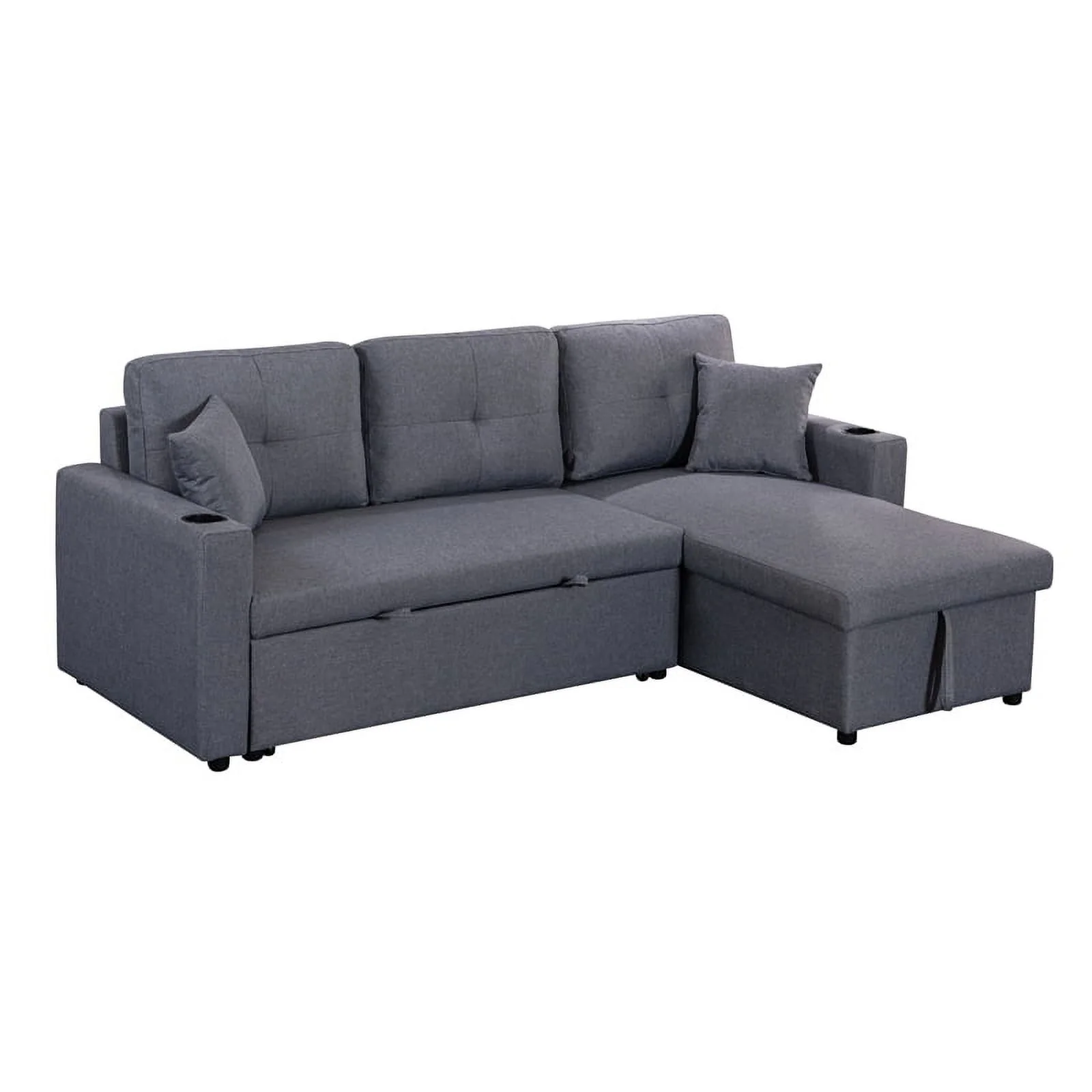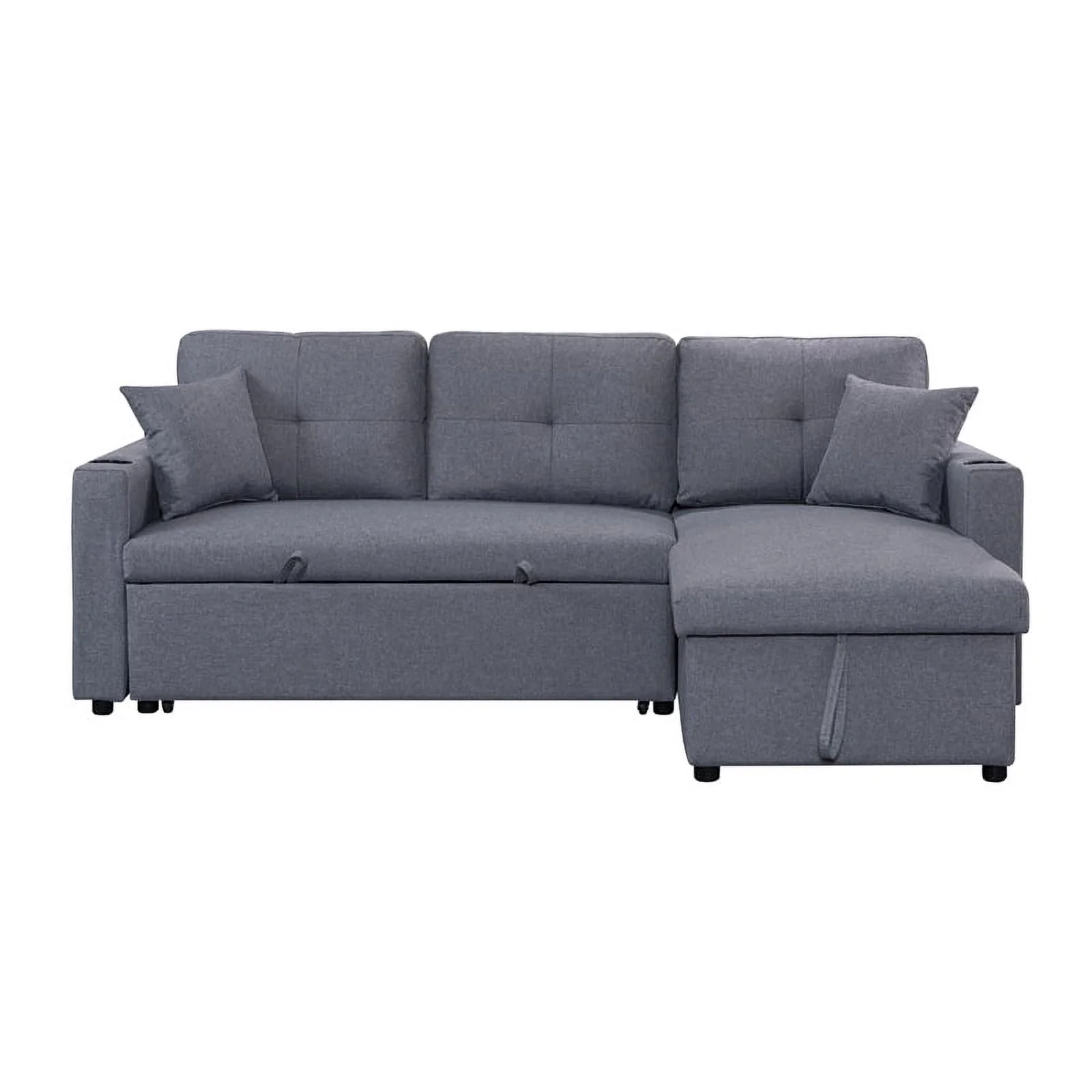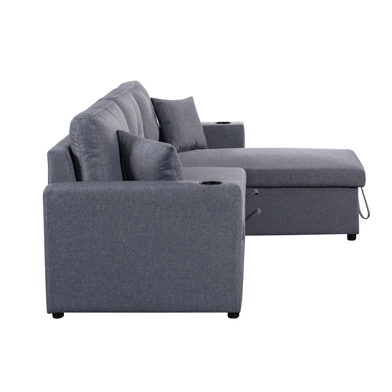 Pemberly Row Linen Fabric Reversible Sleeper Sofa & Chaise & Cup Holder-Gray