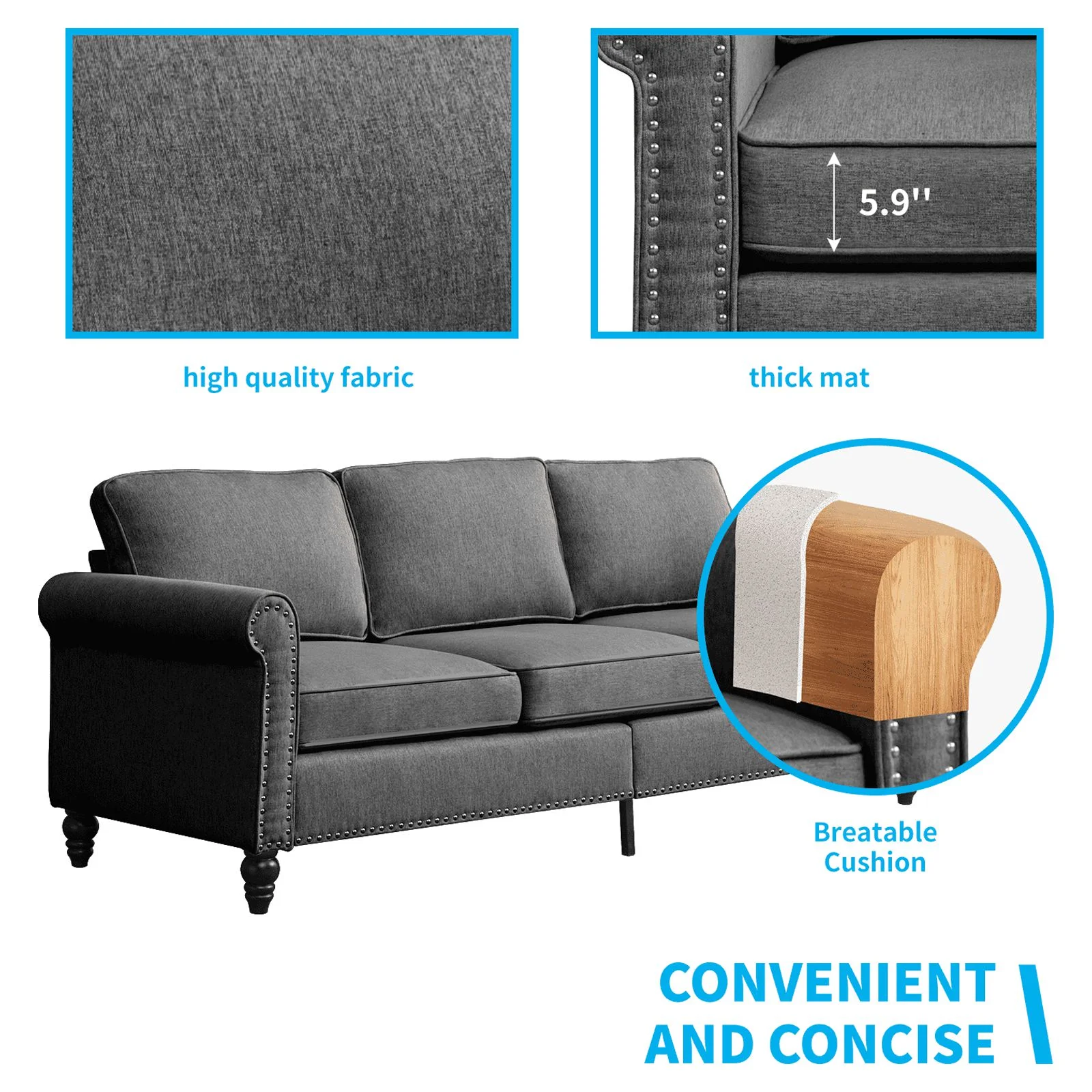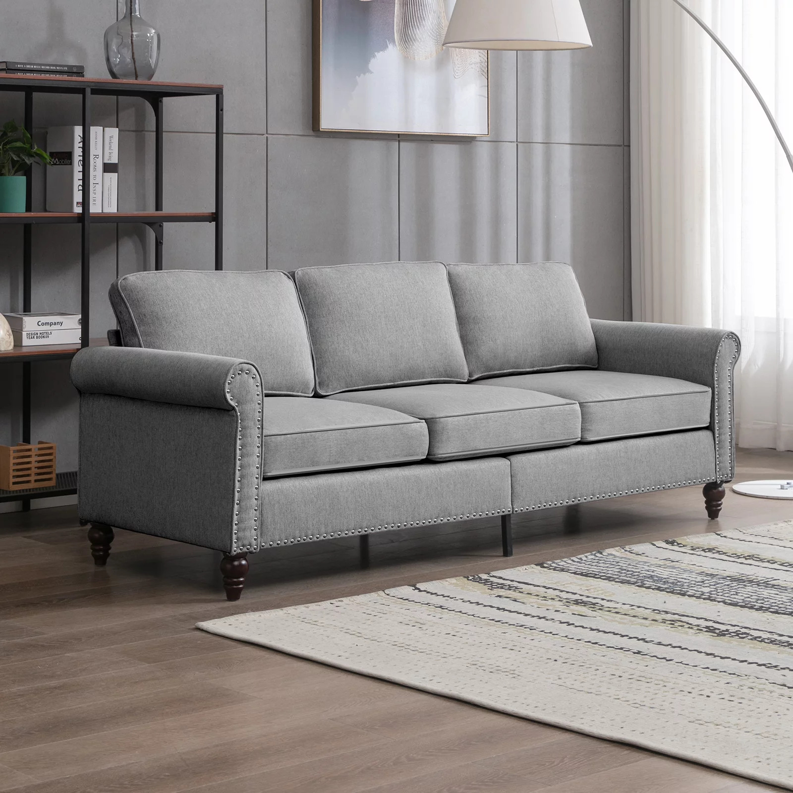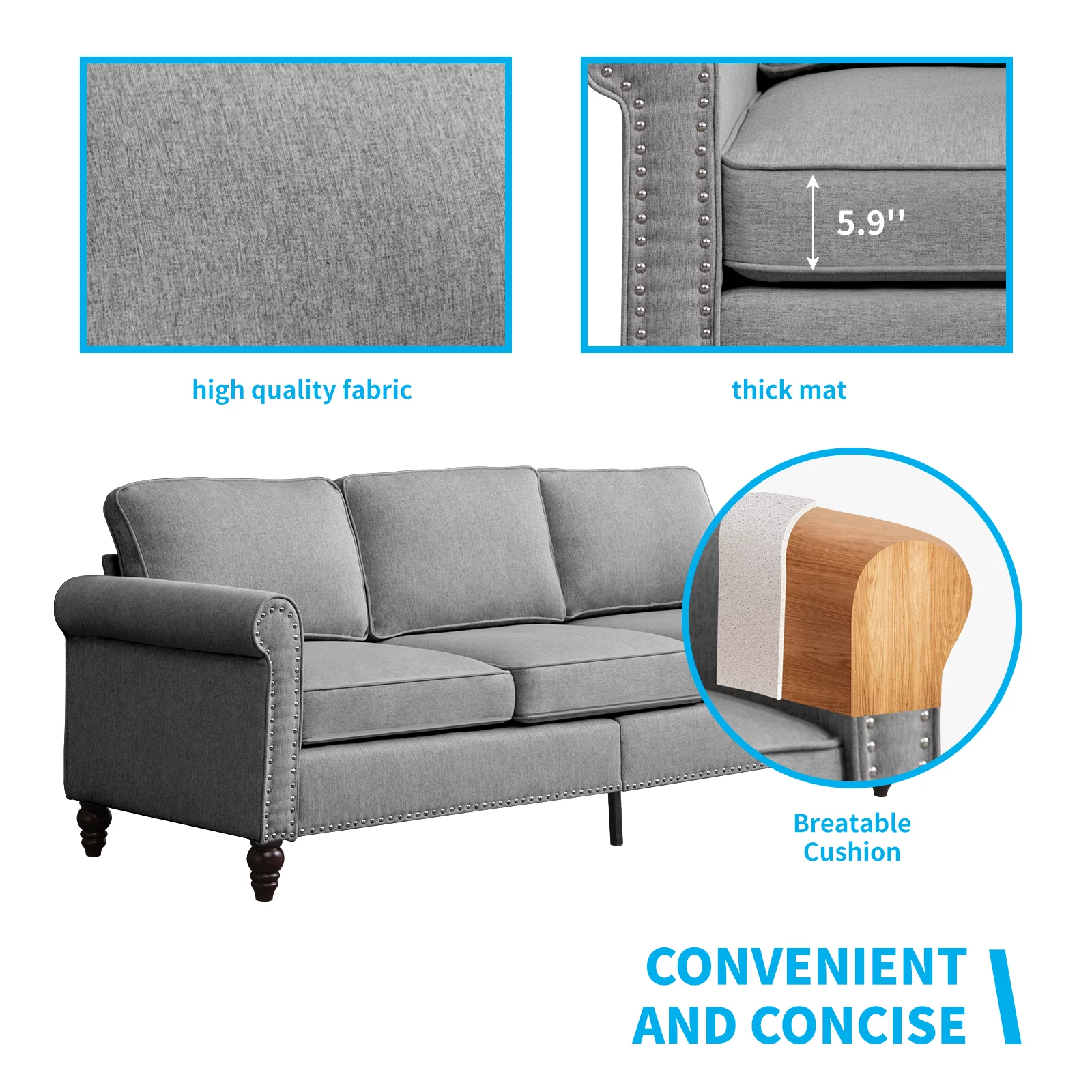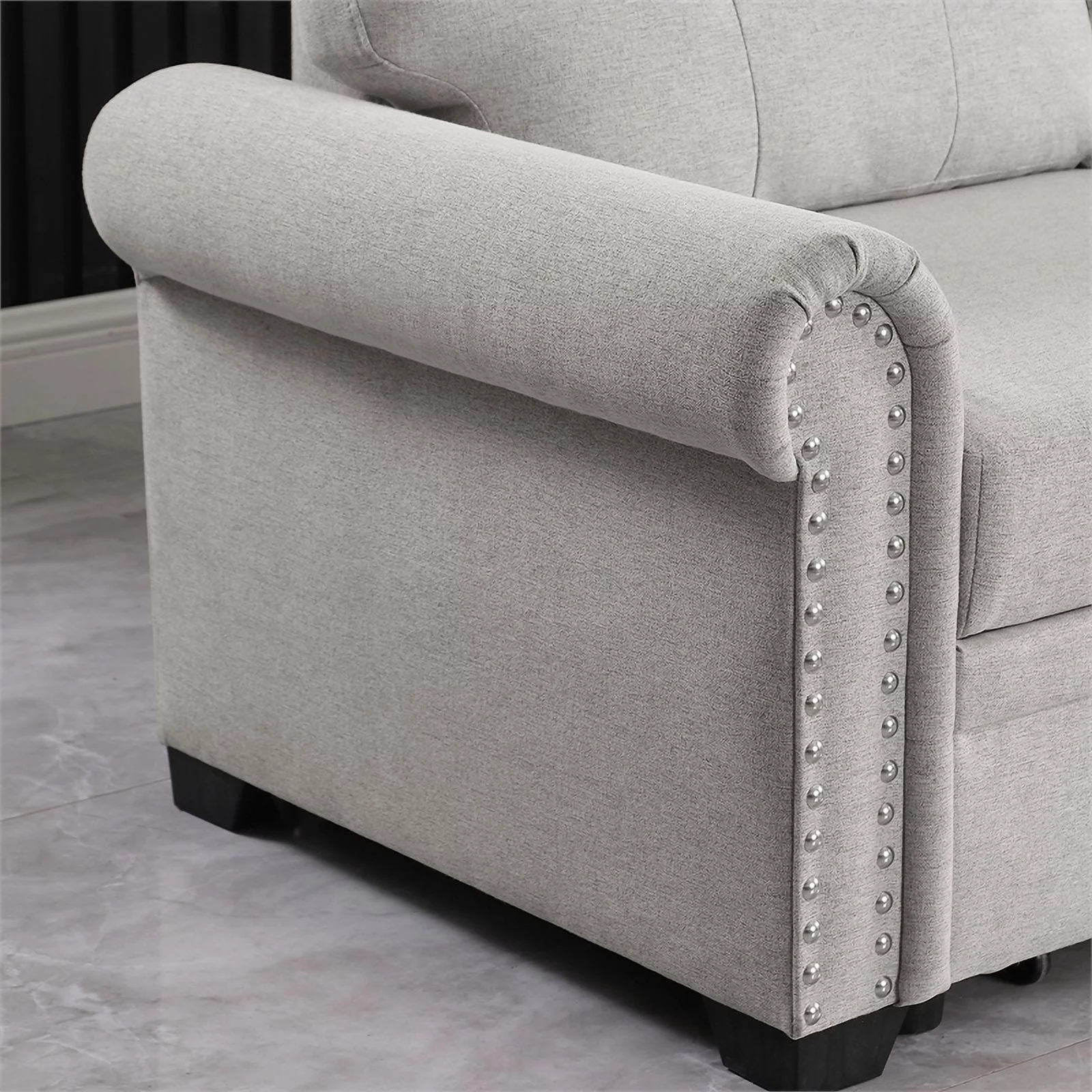 Pemberly Row Linen Fabric Reversible Sleeper Sofa & Chaise & Cup Holder-Gray