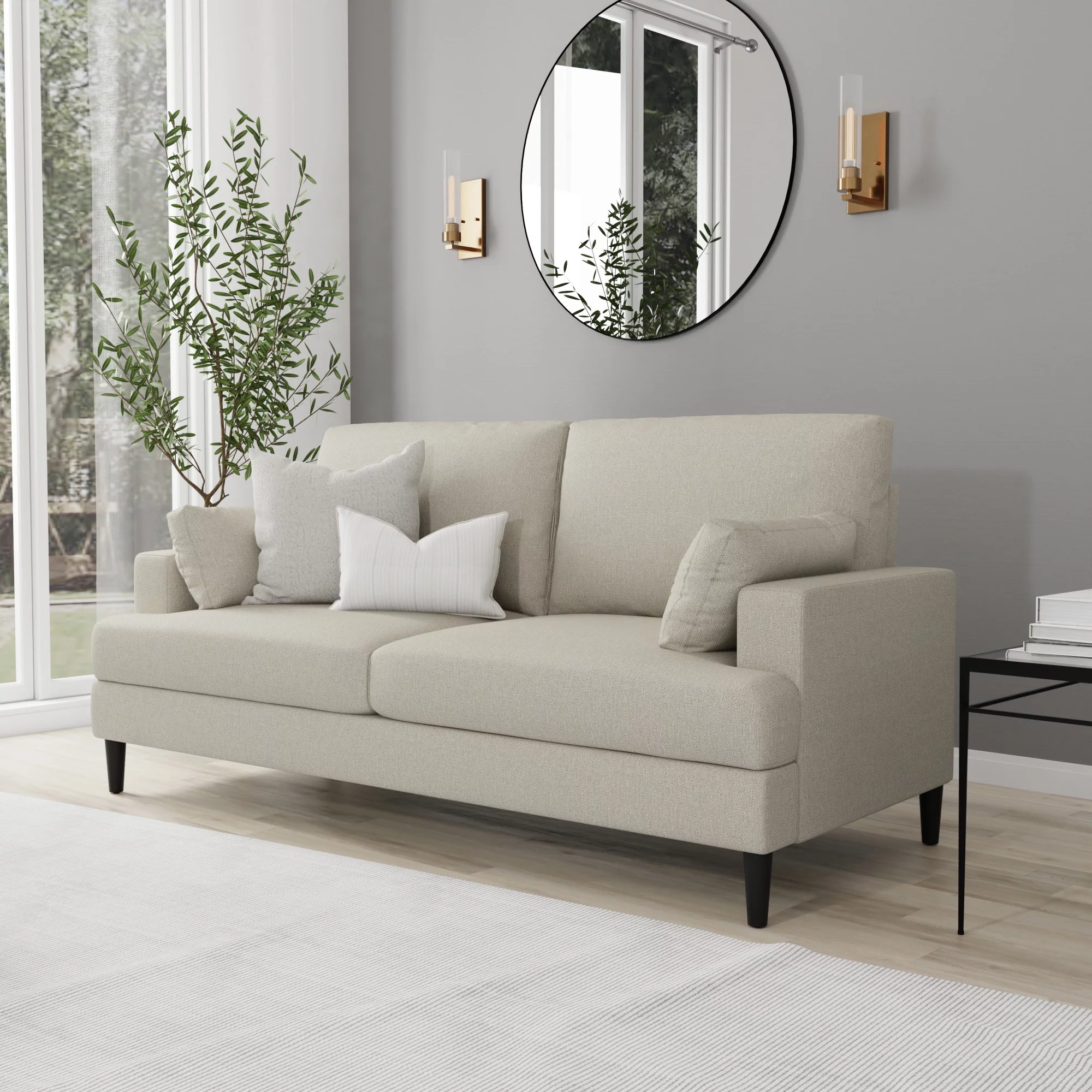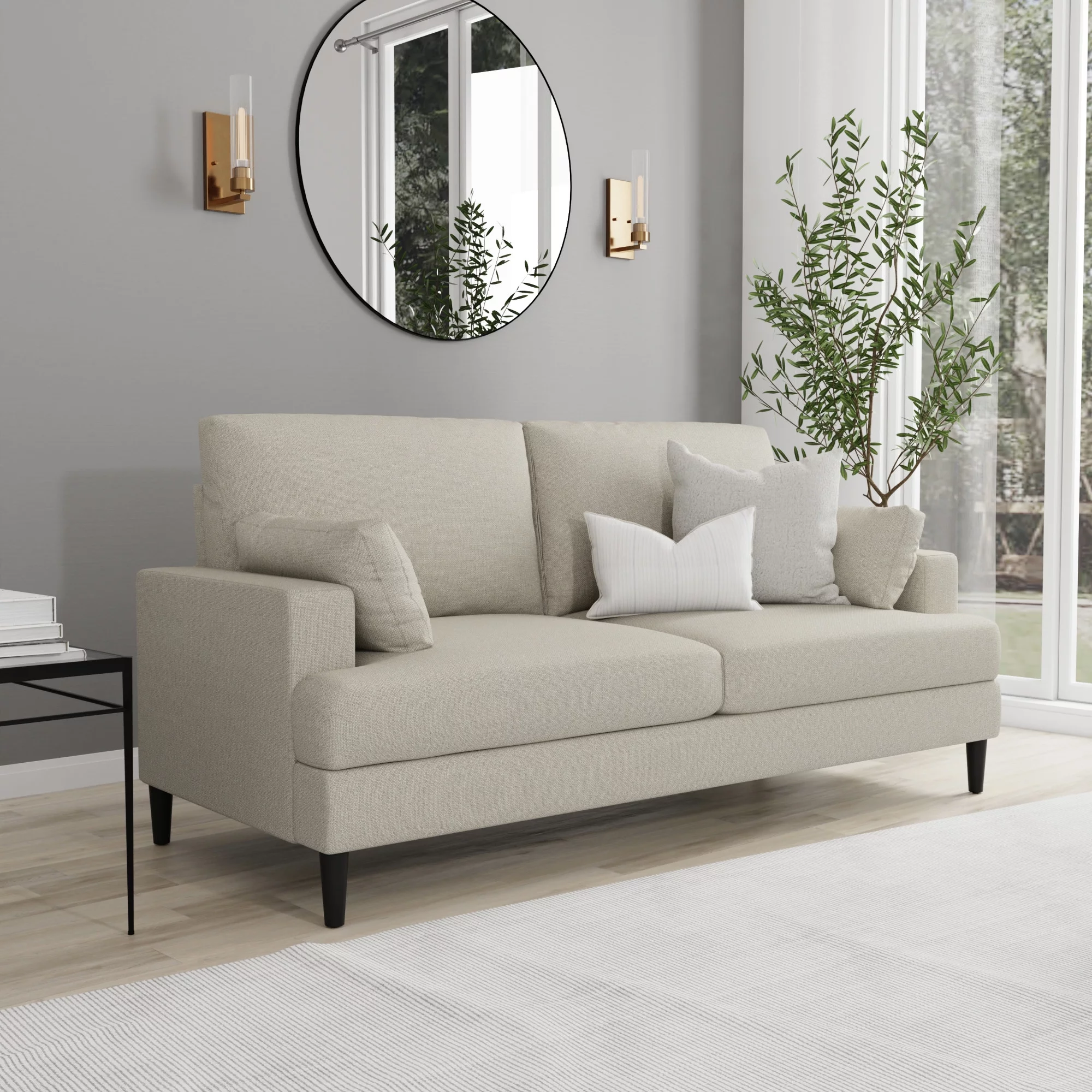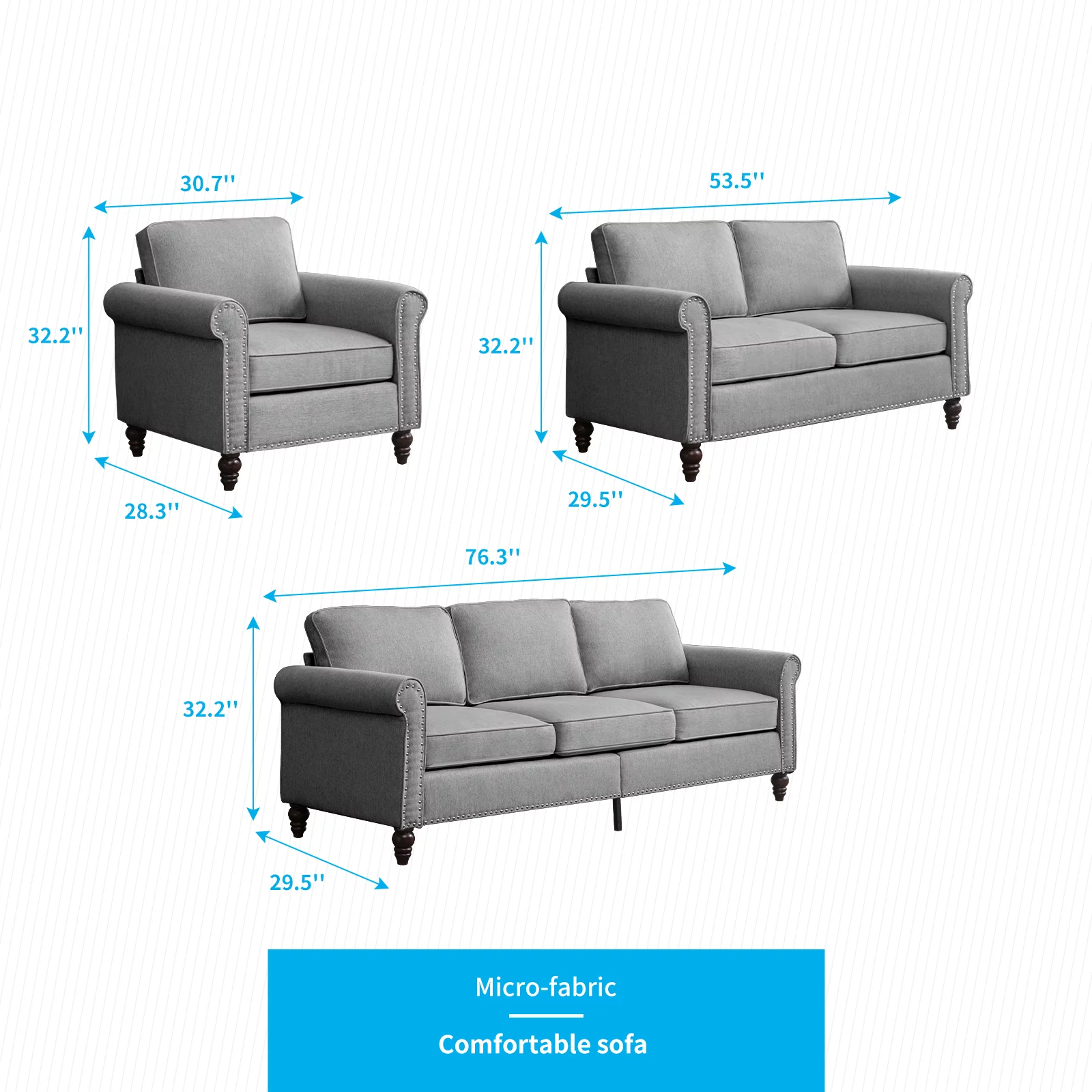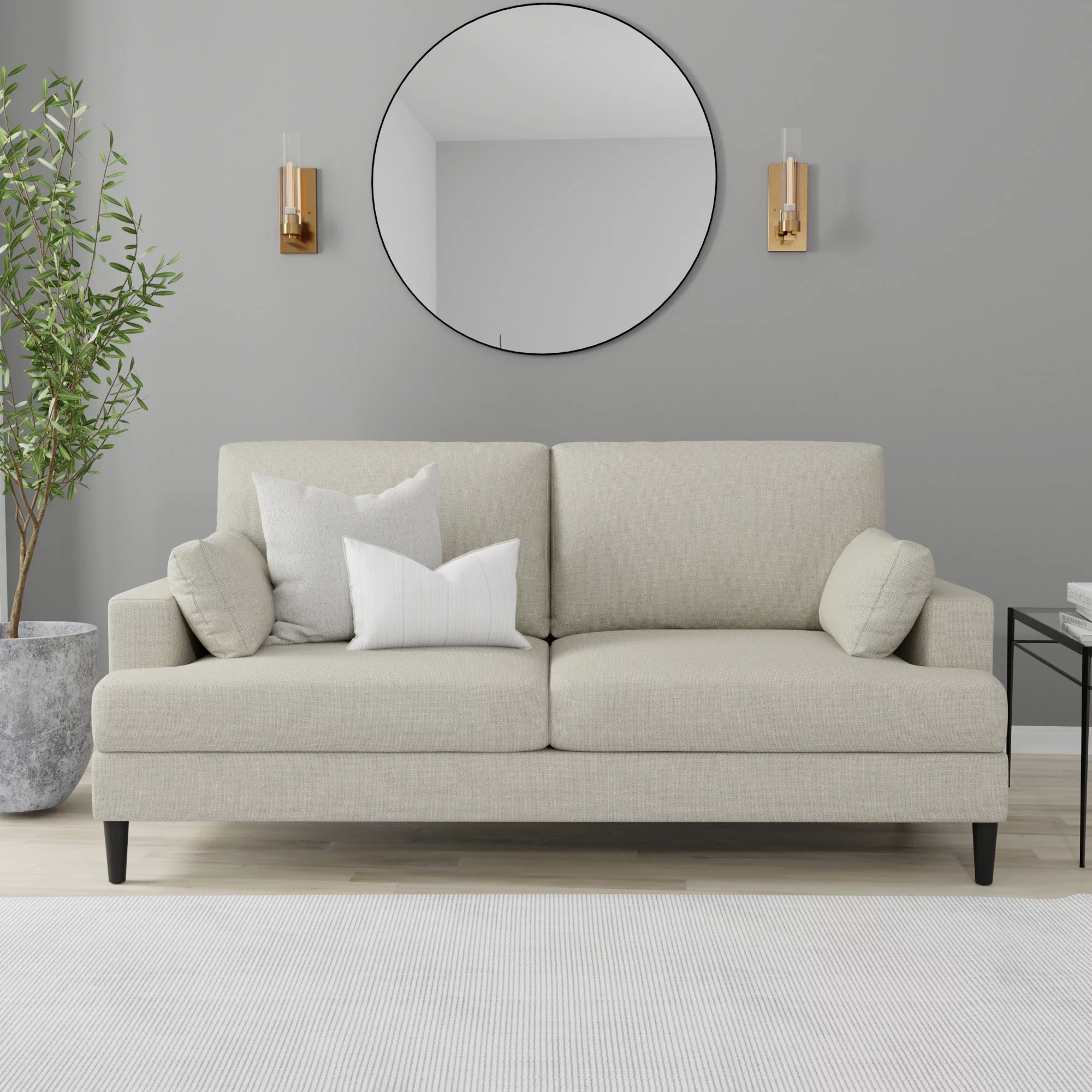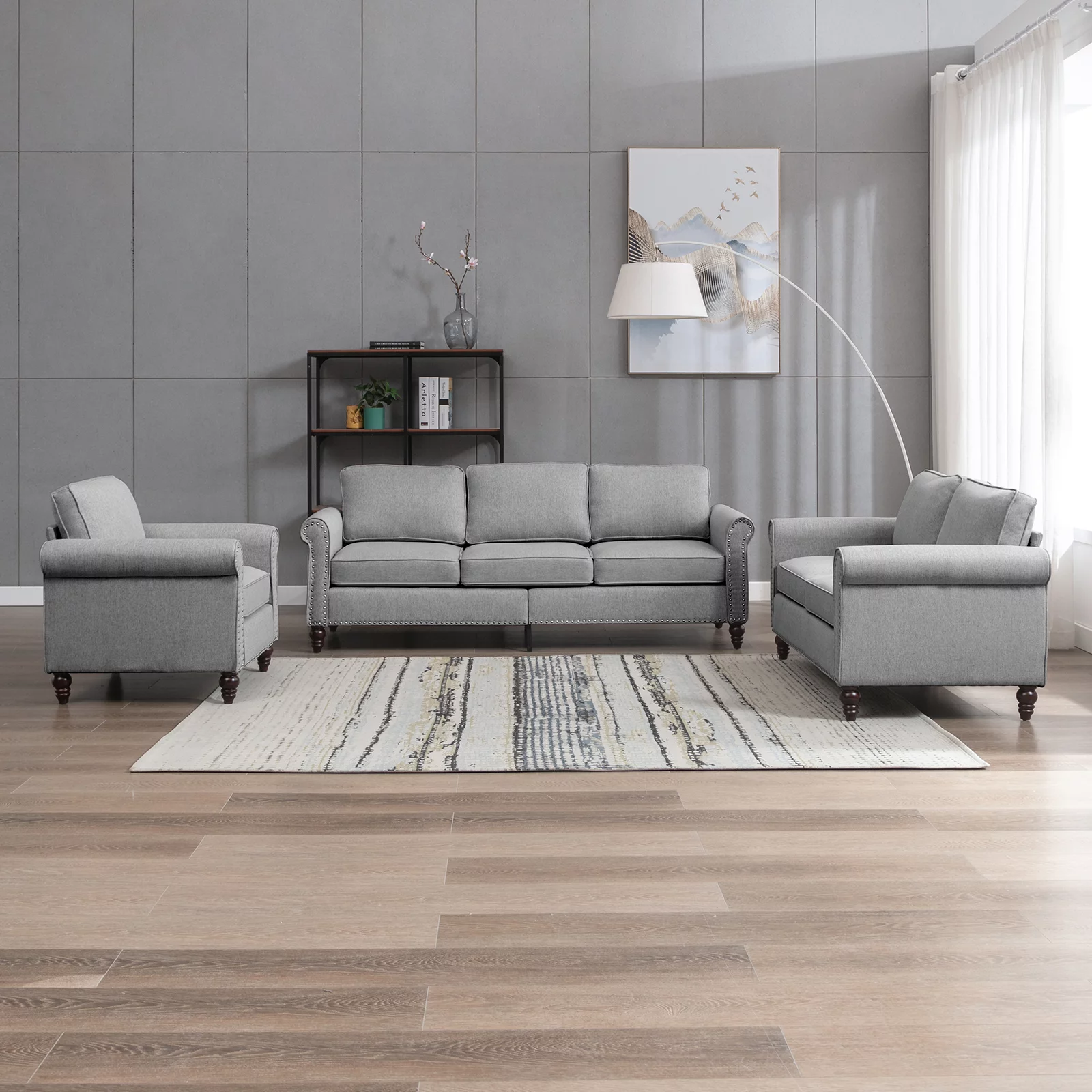 Pemberly Row Linen Fabric Reversible Sleeper Sofa & Chaise & Cup Holder-Gray