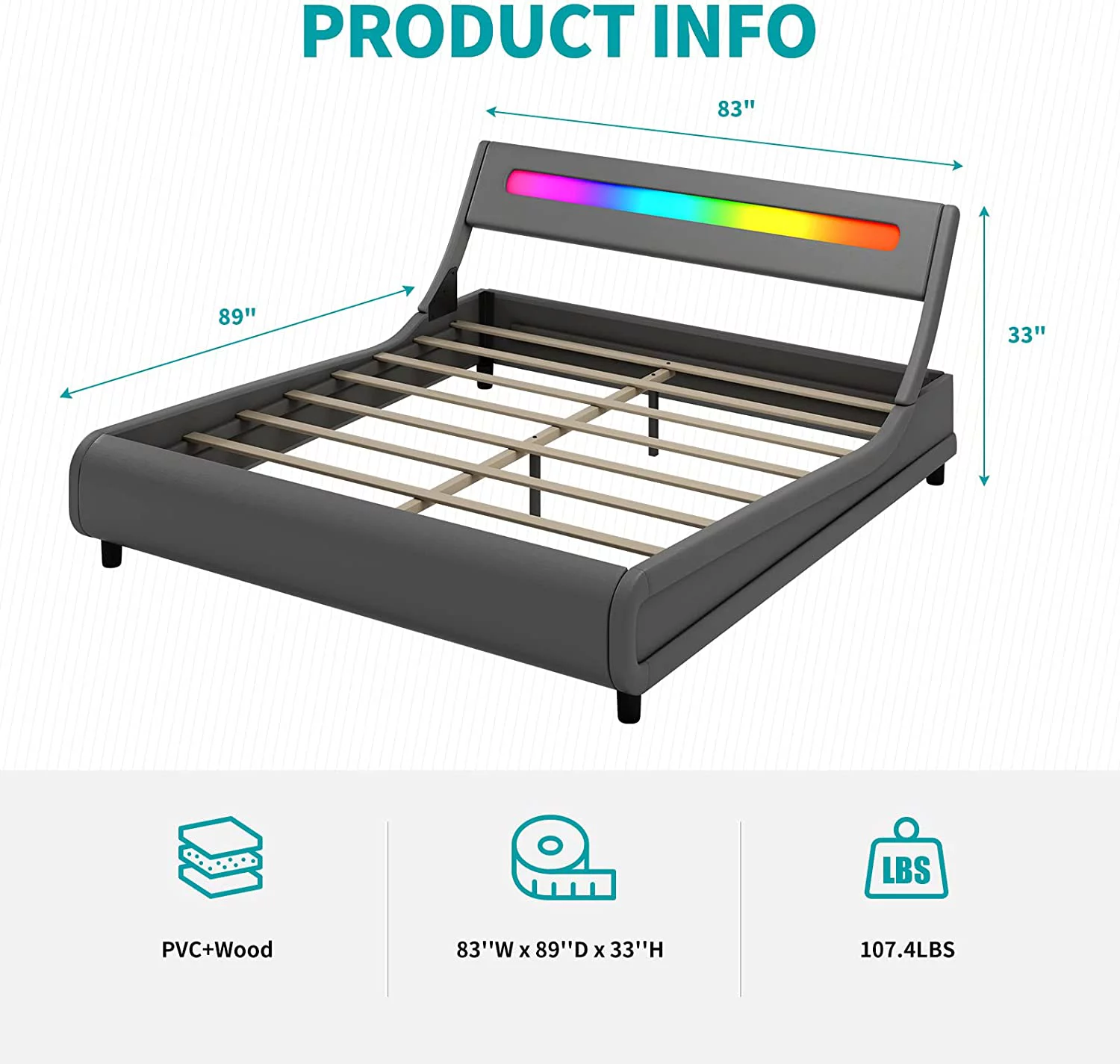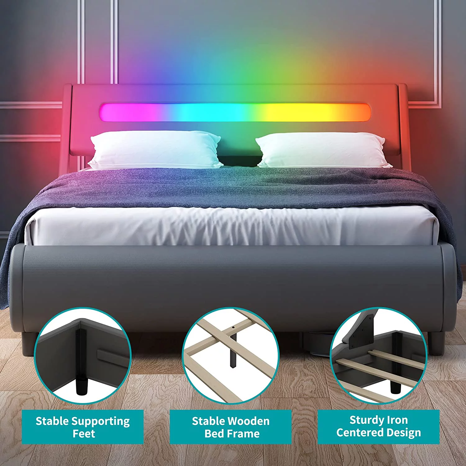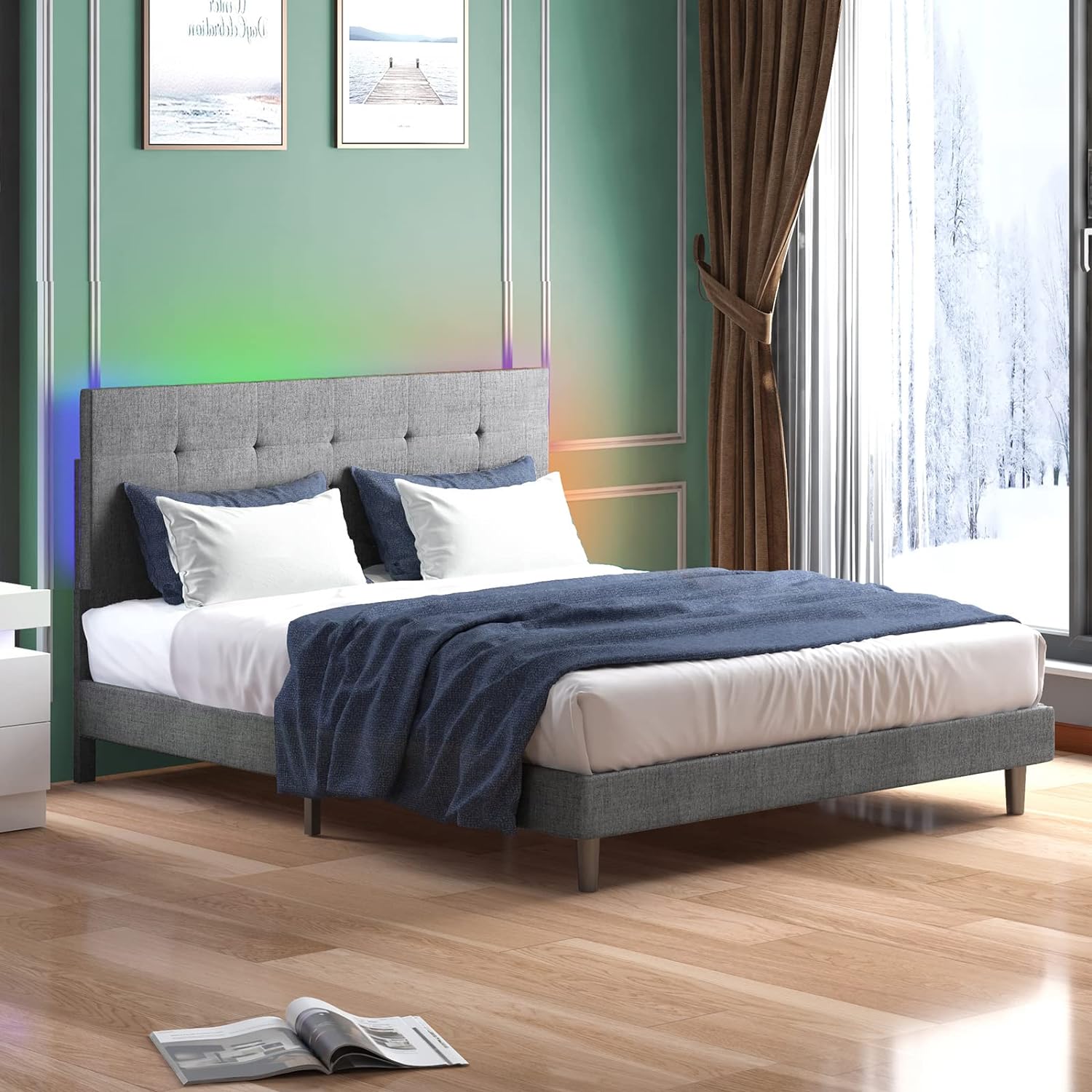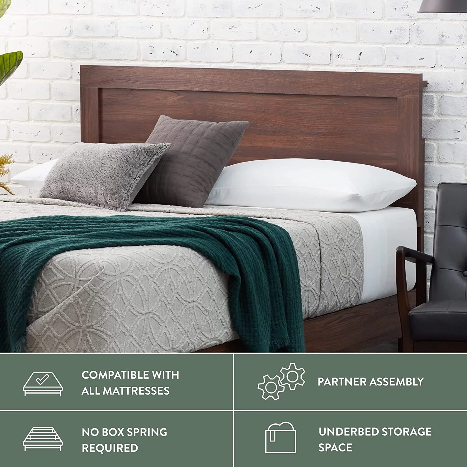 Queen Size Bed Frame with Headboard, Wood Slat Support, No Box Spring Needed