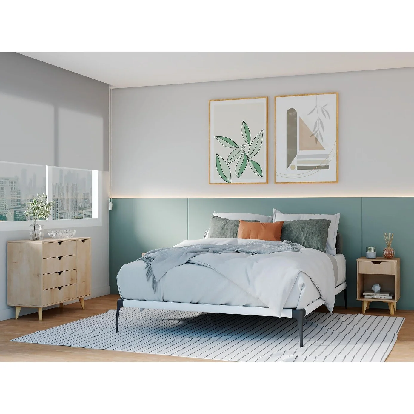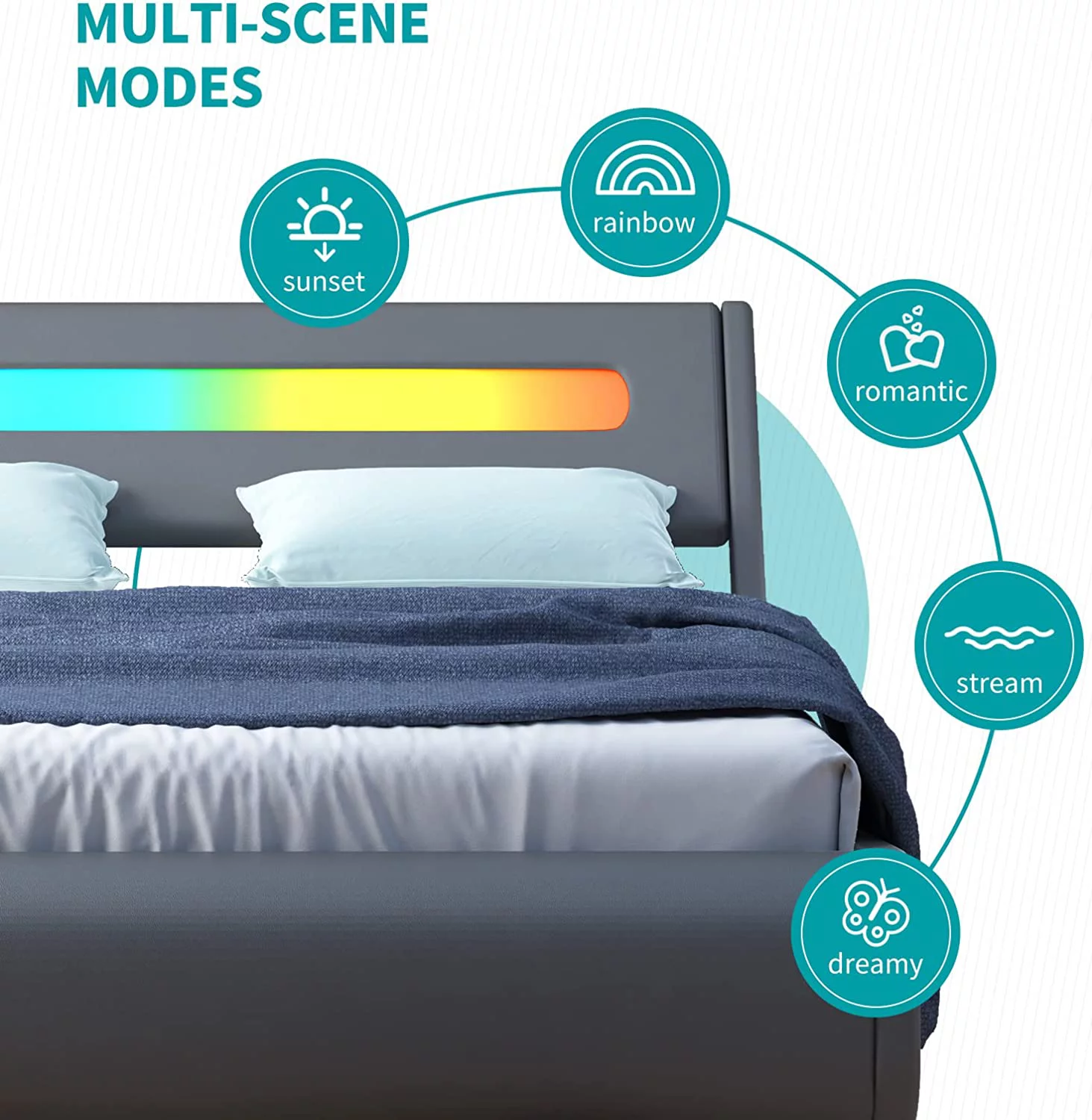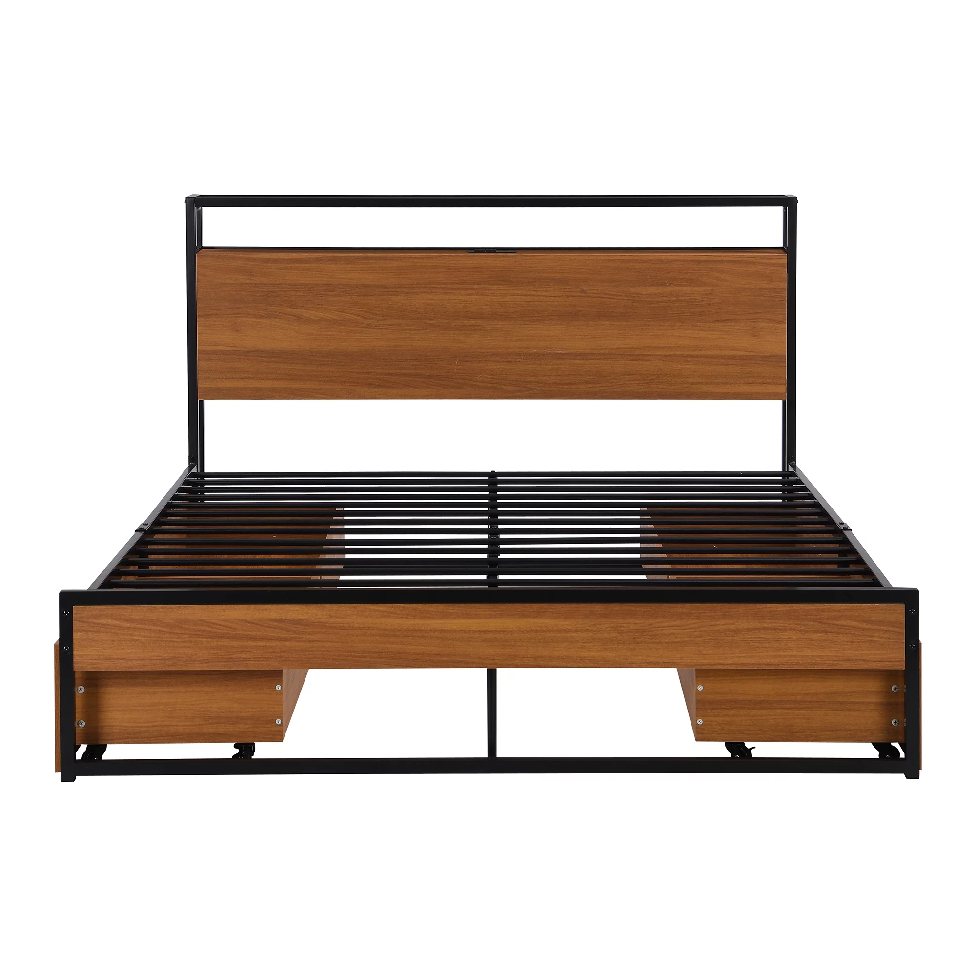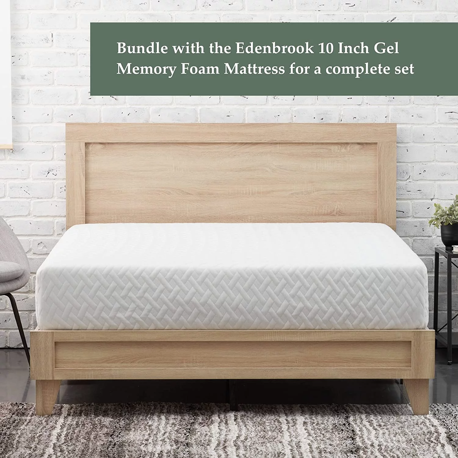 Queen Size Bed Frame with Headboard, Wood Slat Support, No Box Spring Needed