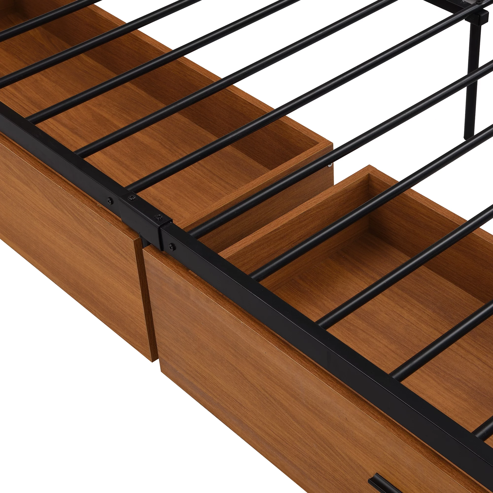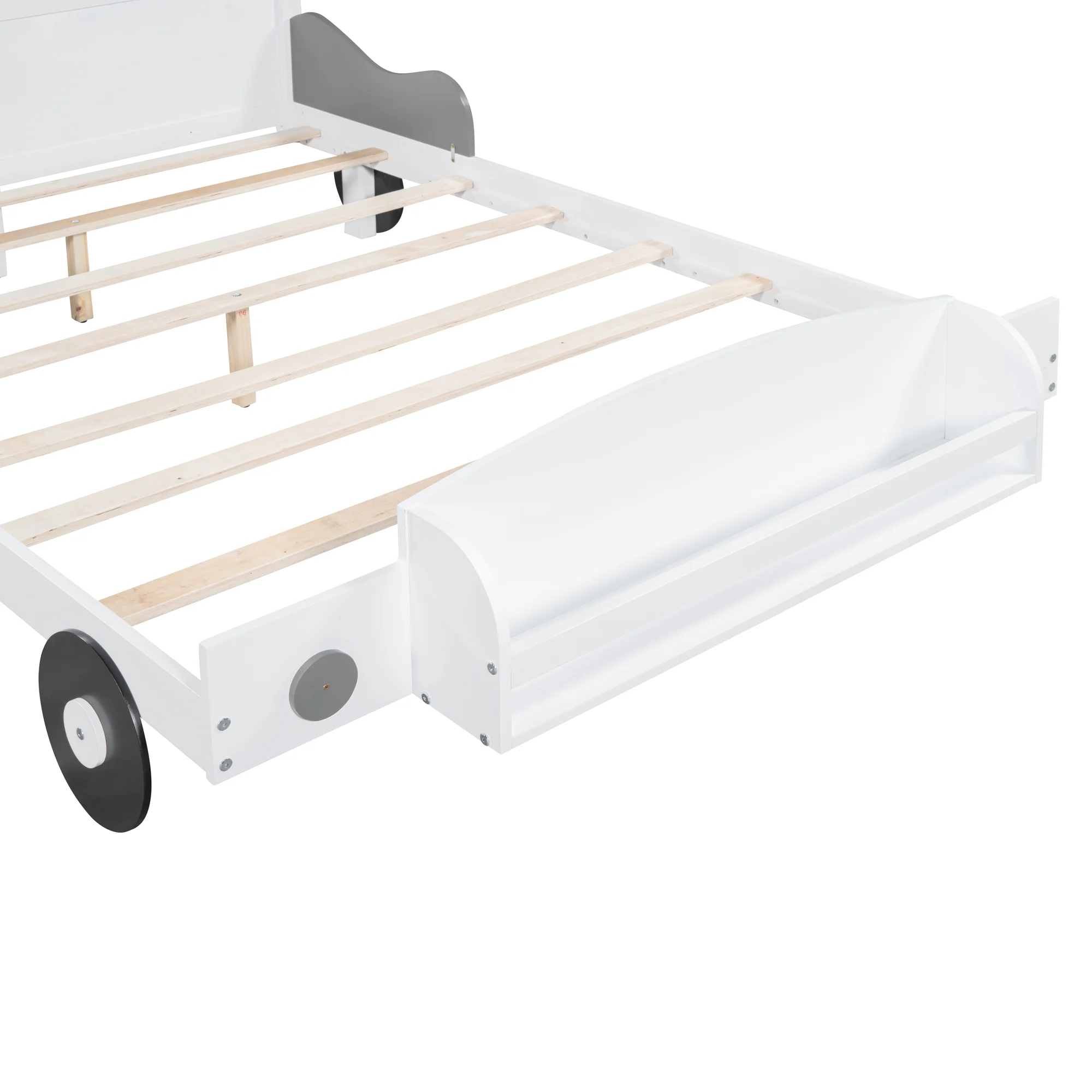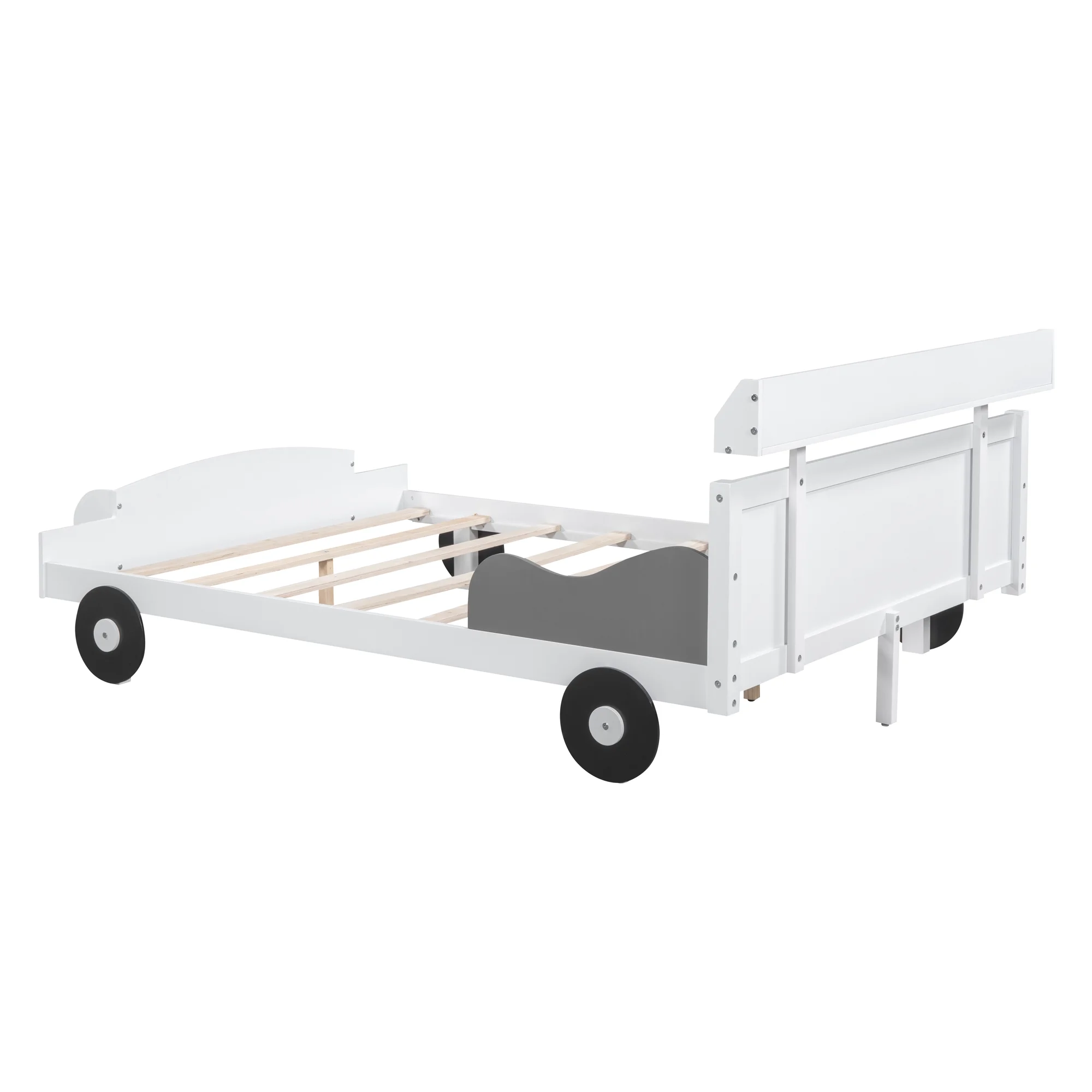 Full Size Race Car-Shaped Platform Bed with Wheels and Storage, Black+Yellow