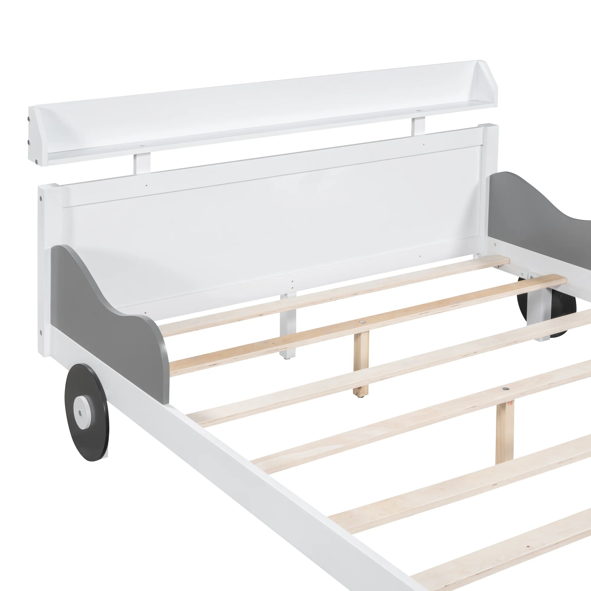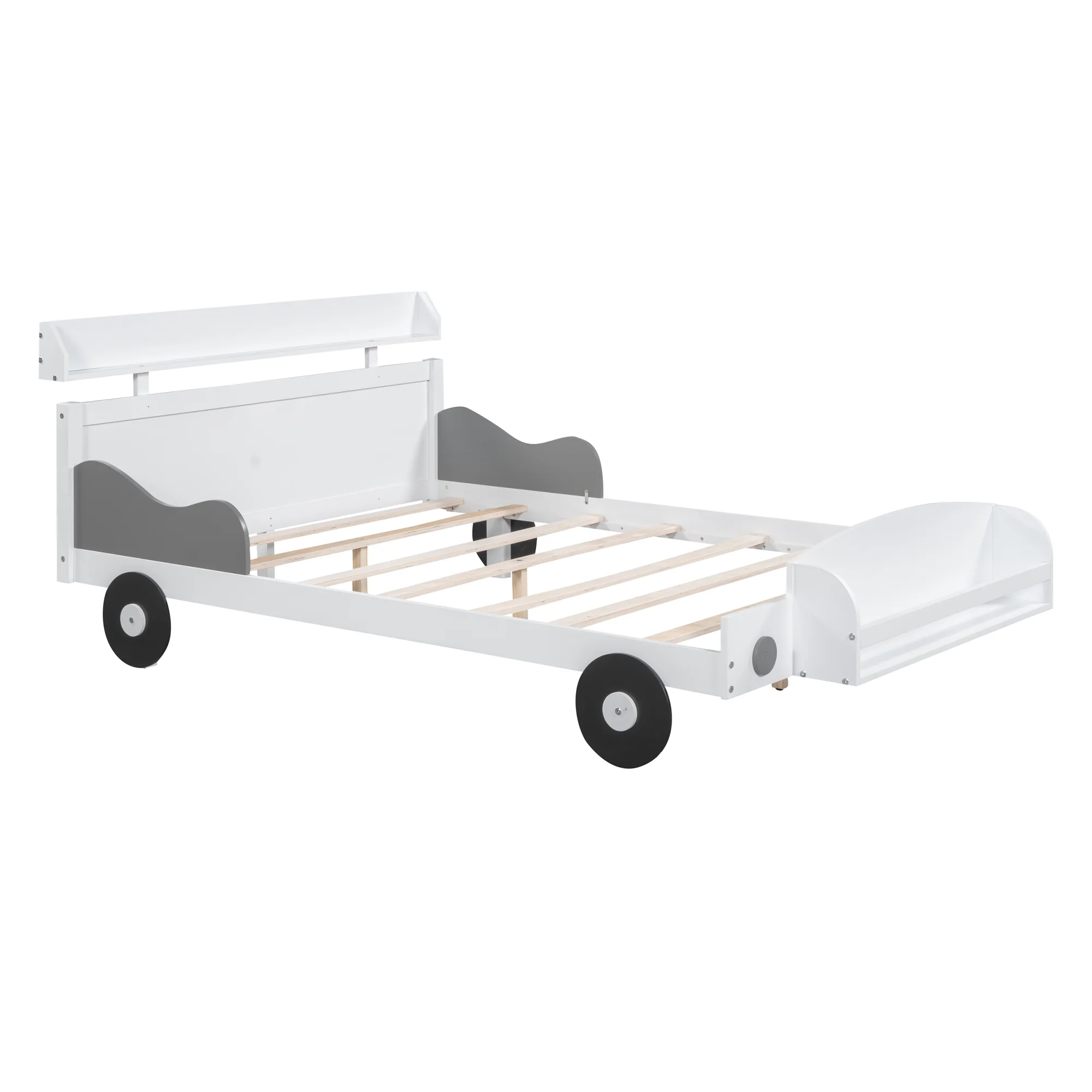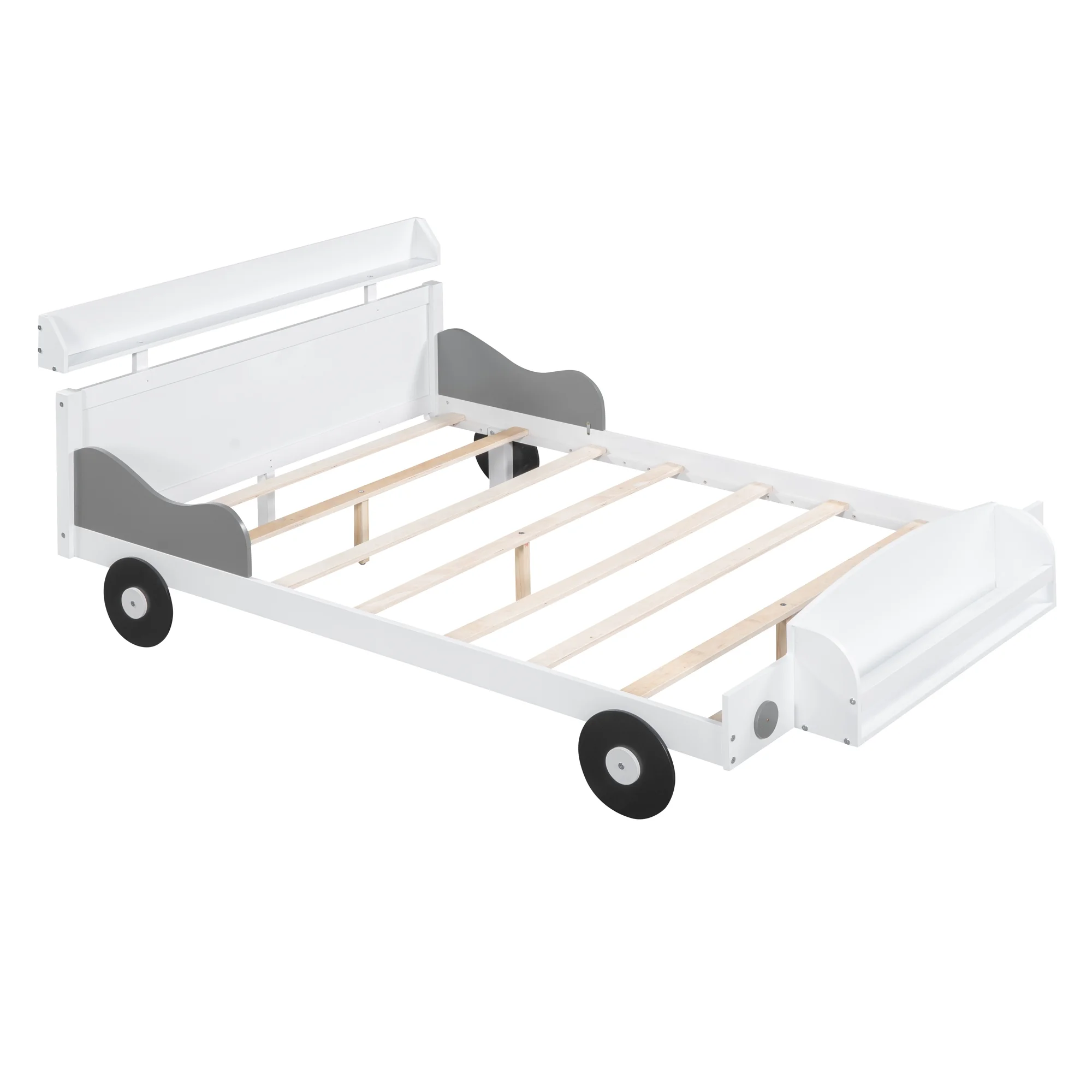 CoSoTower Full Size Car-Shaped Platform Bed,Full Bed with Storage Shelf for Bedroom,White