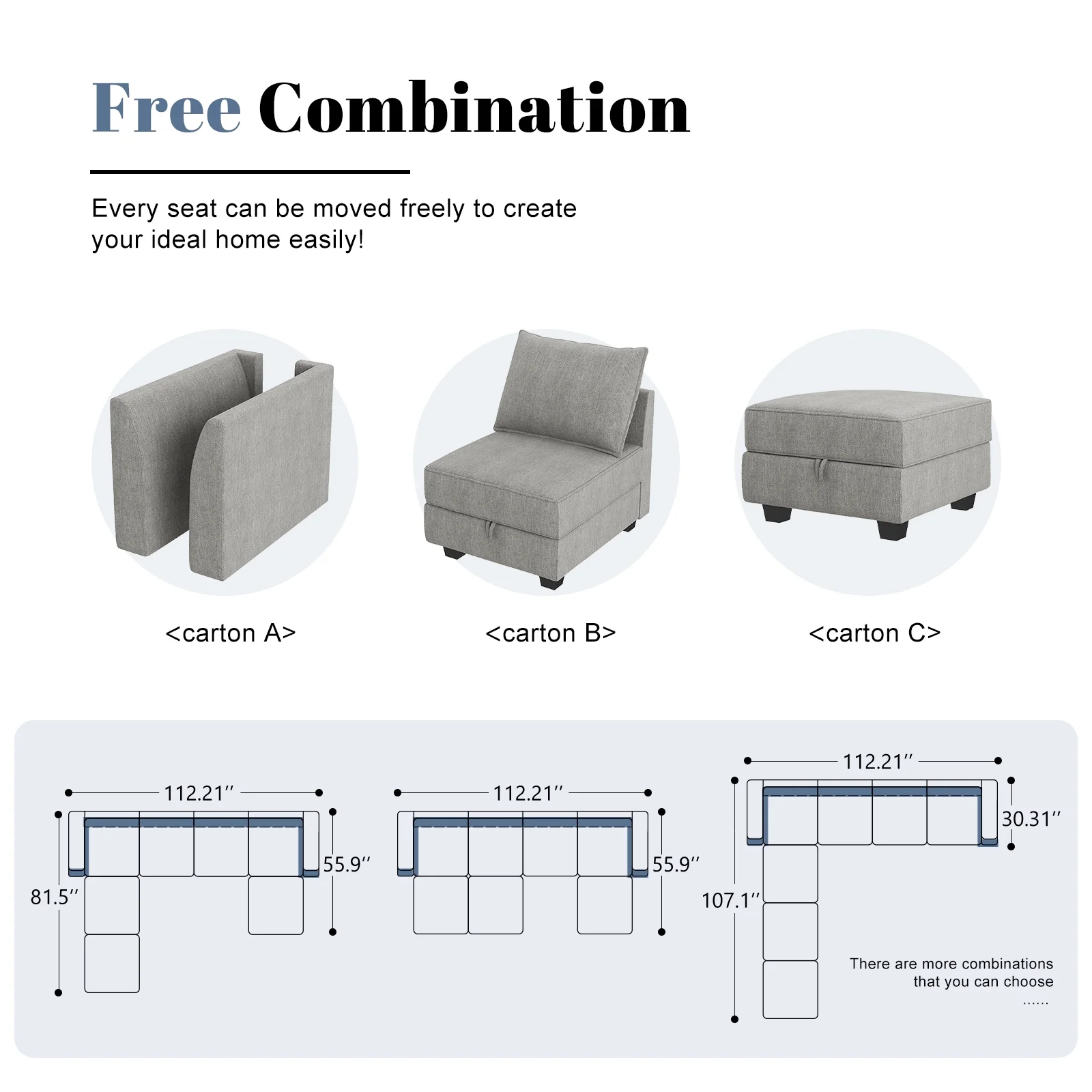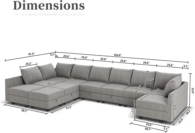 HONBAY Convertible U Shaped Modular Sofa Sectional Modular Couch with Chaise Oversized Sofa Sleeper Couch for Large Living Room, Grey