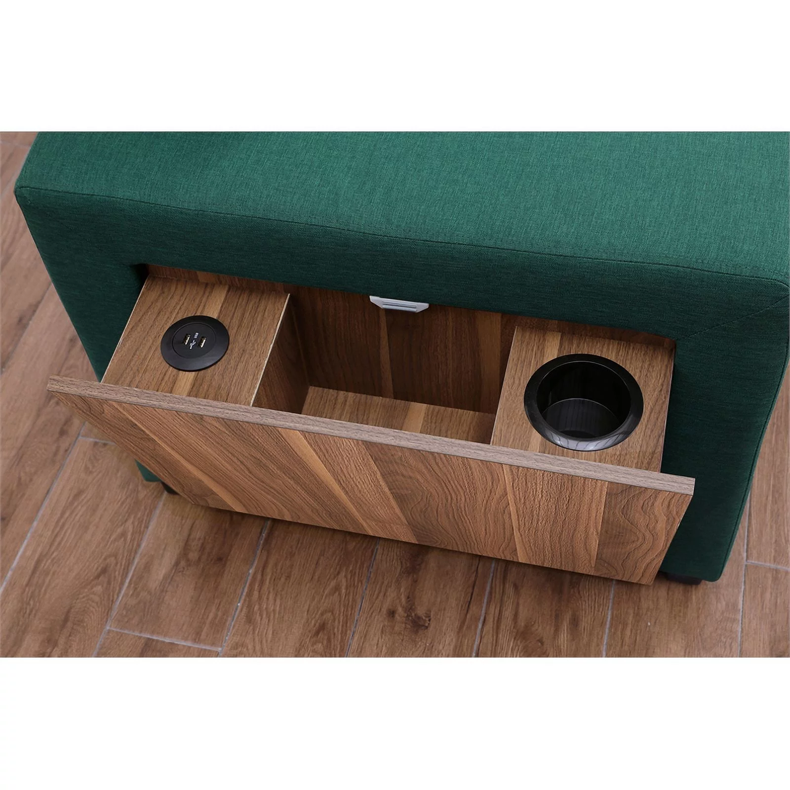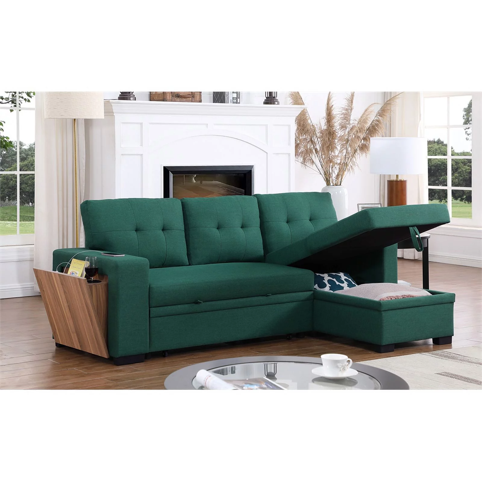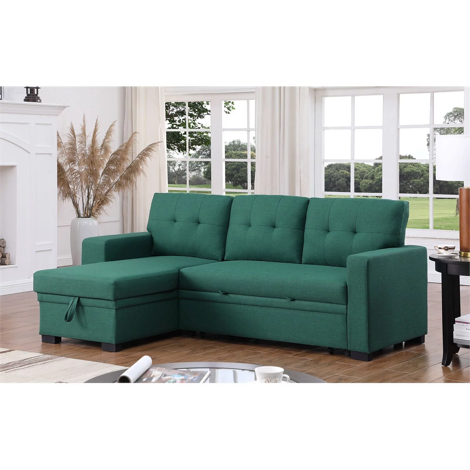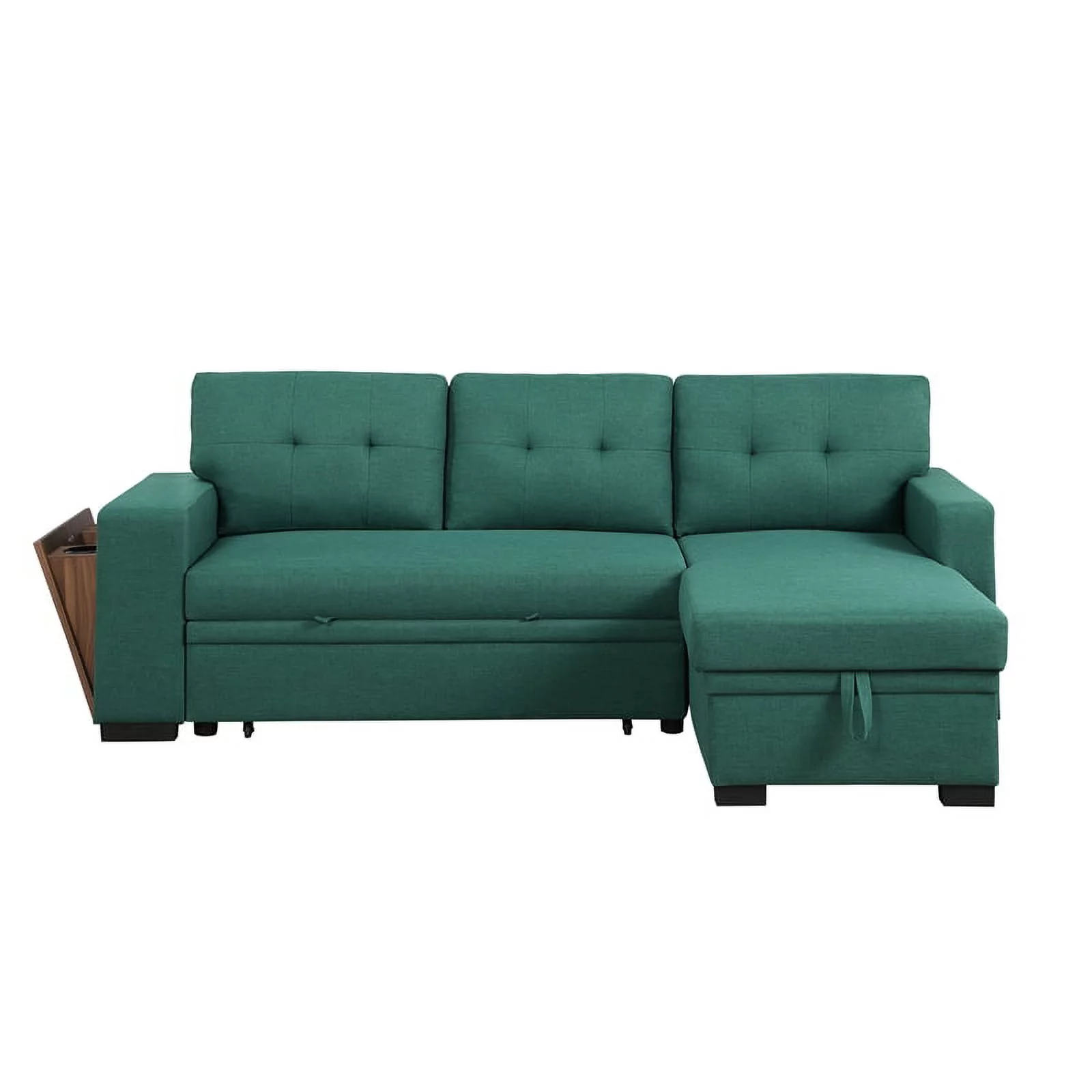 Pemberly Row Fabric Reversible Side Compartment Sleeper Sectional Sofa Bed-Green