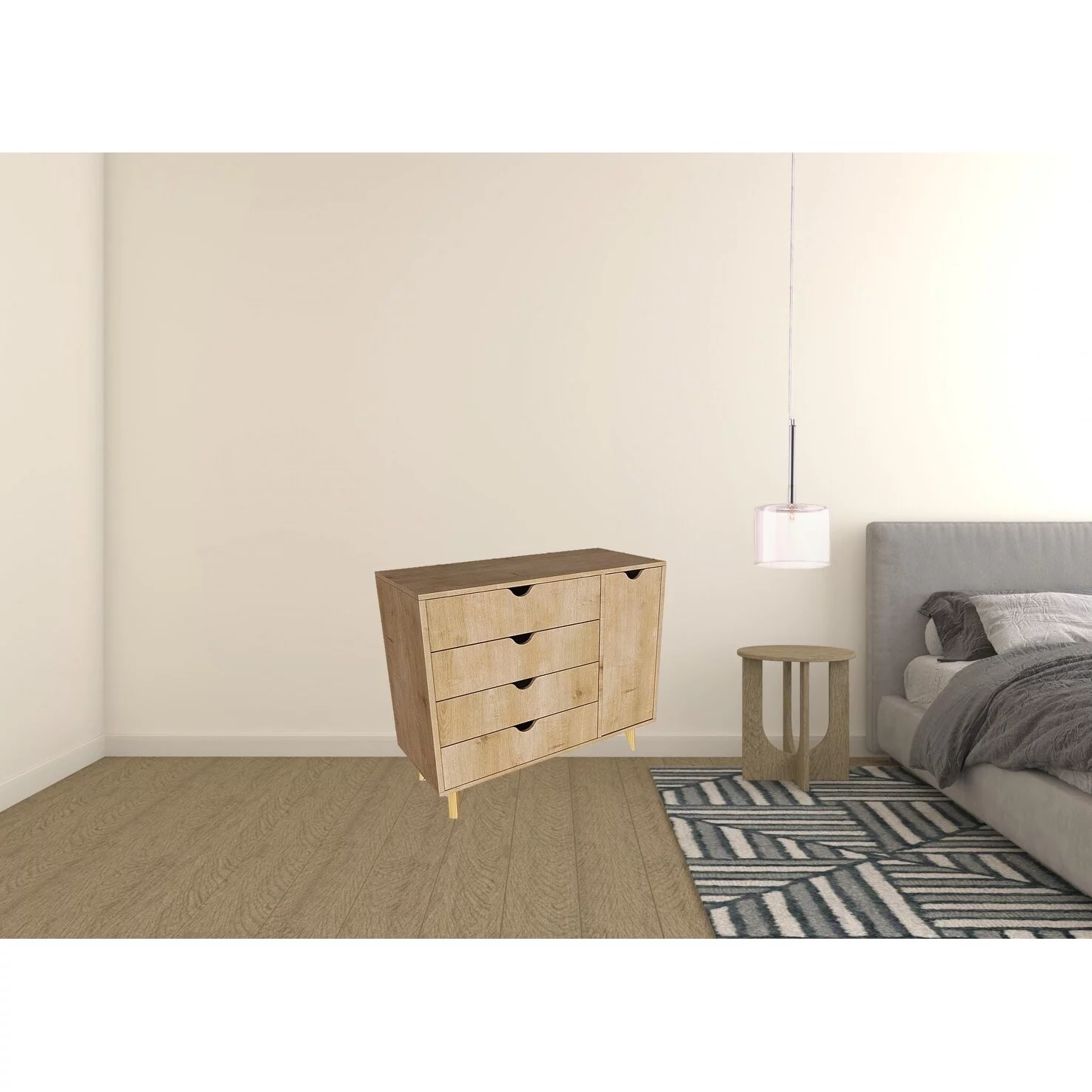 Arbela Wood 3-Drawer Combo Dresser with Mirror, Weathered Oak Finish