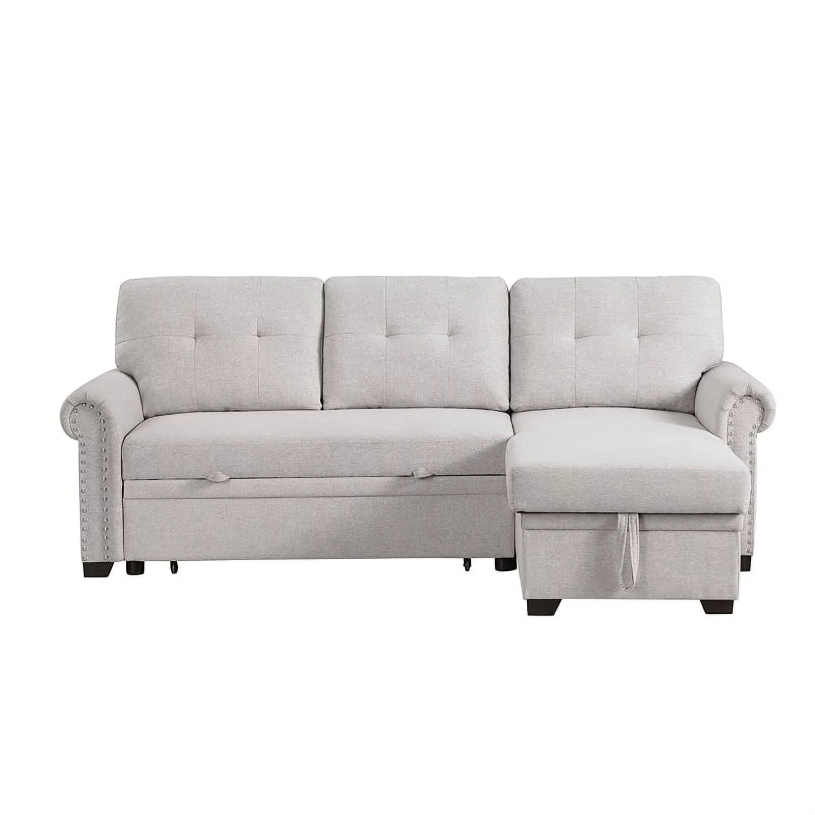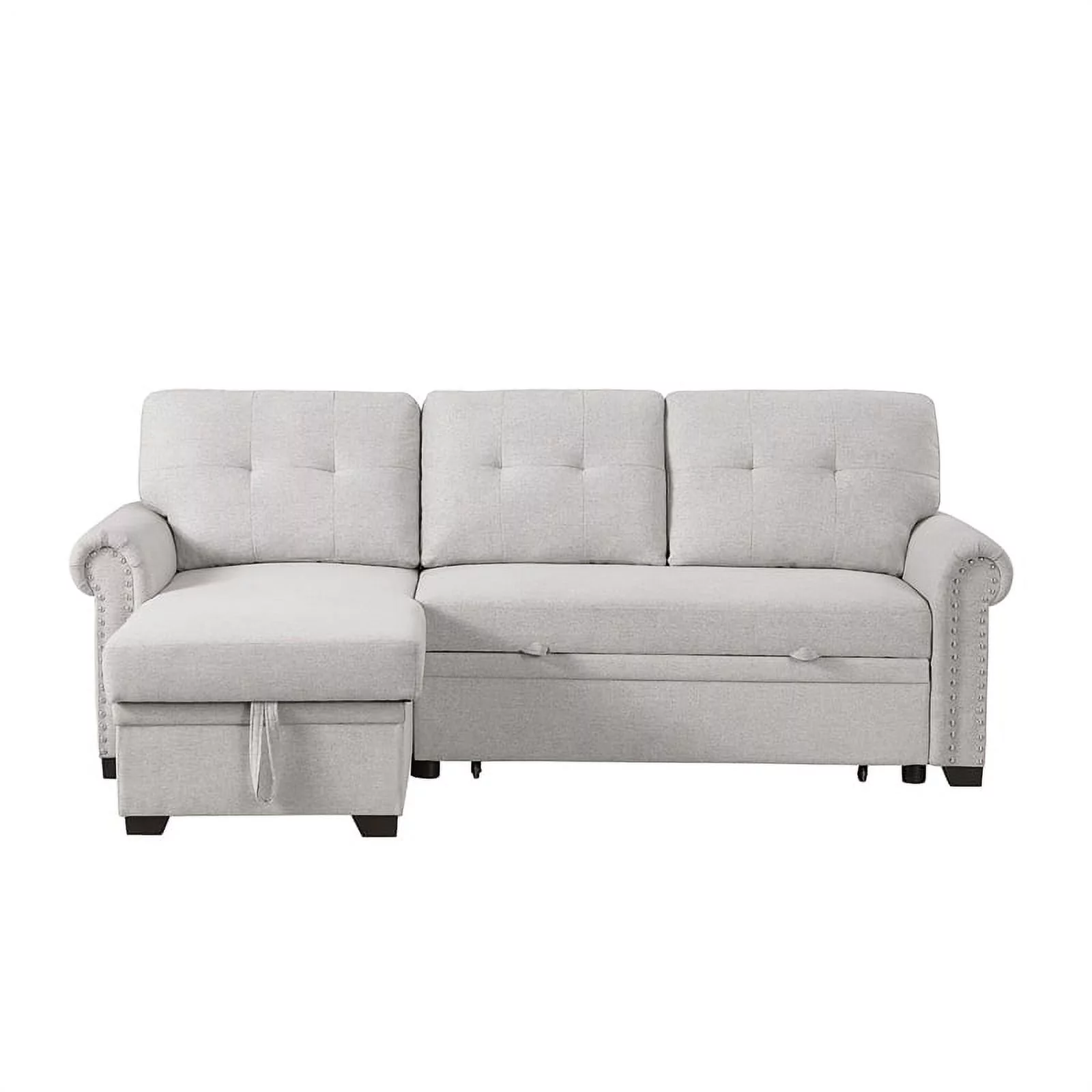 Pemberly Row Reversible Fabric Sleeper Sofa with Storage Chaise in Light Gray