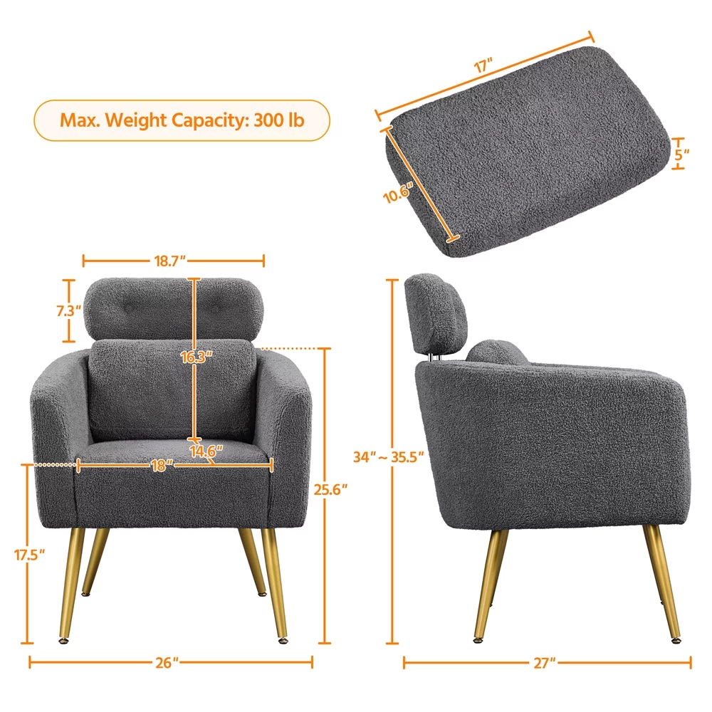 Yaheetech Upholstered Boucle Barrel Accent with Adjustable Headrest,Dark Gray