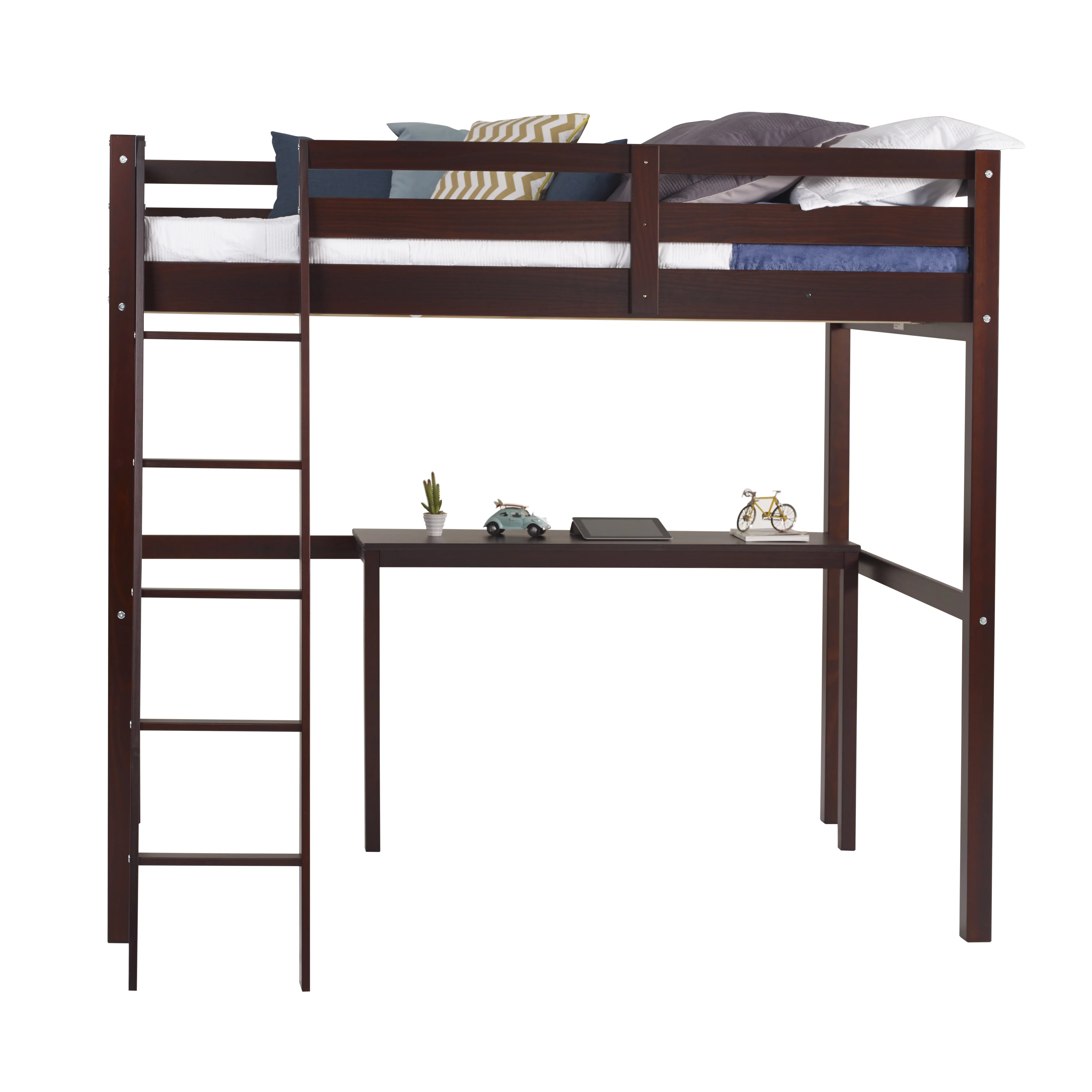 Camaflexi Tribeca Solid Pine Wood High Loft Bed Full with Desk in Cappuccino