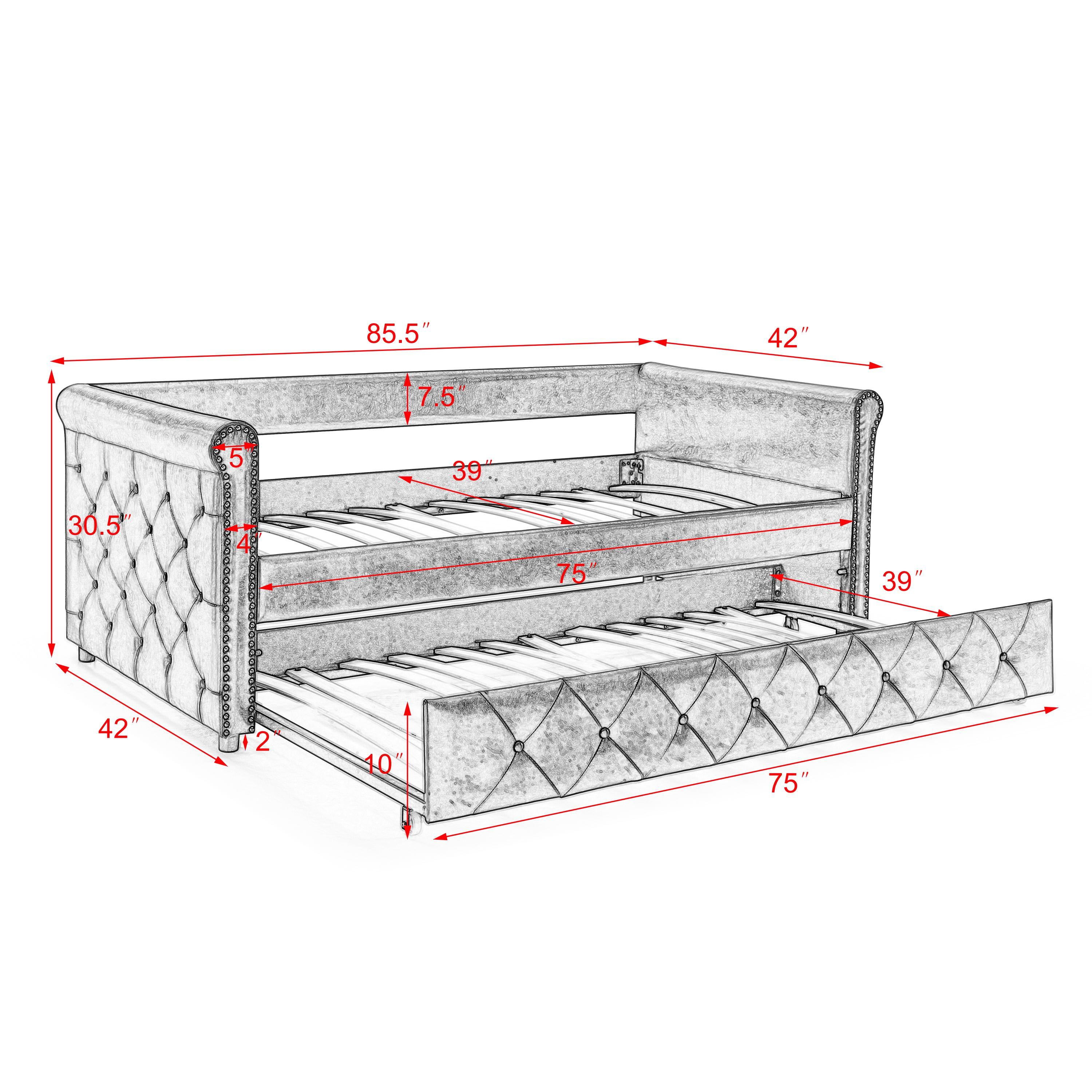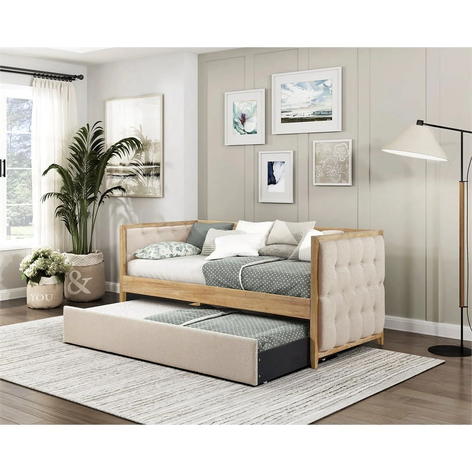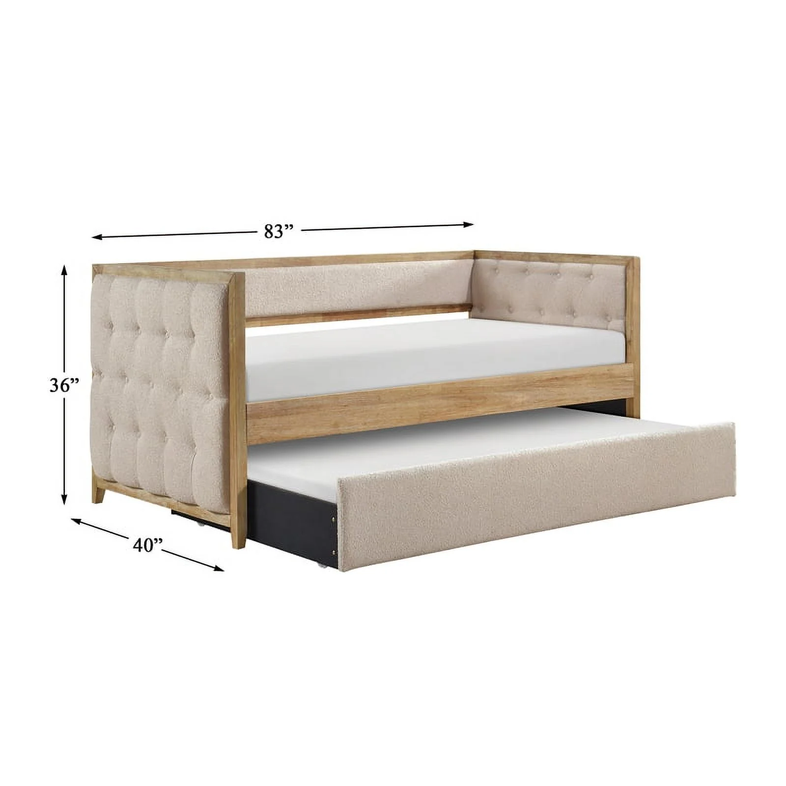 Button Tufted & Smooth Burlap Alma Classic Wood Day Bed with Trundle, Gray