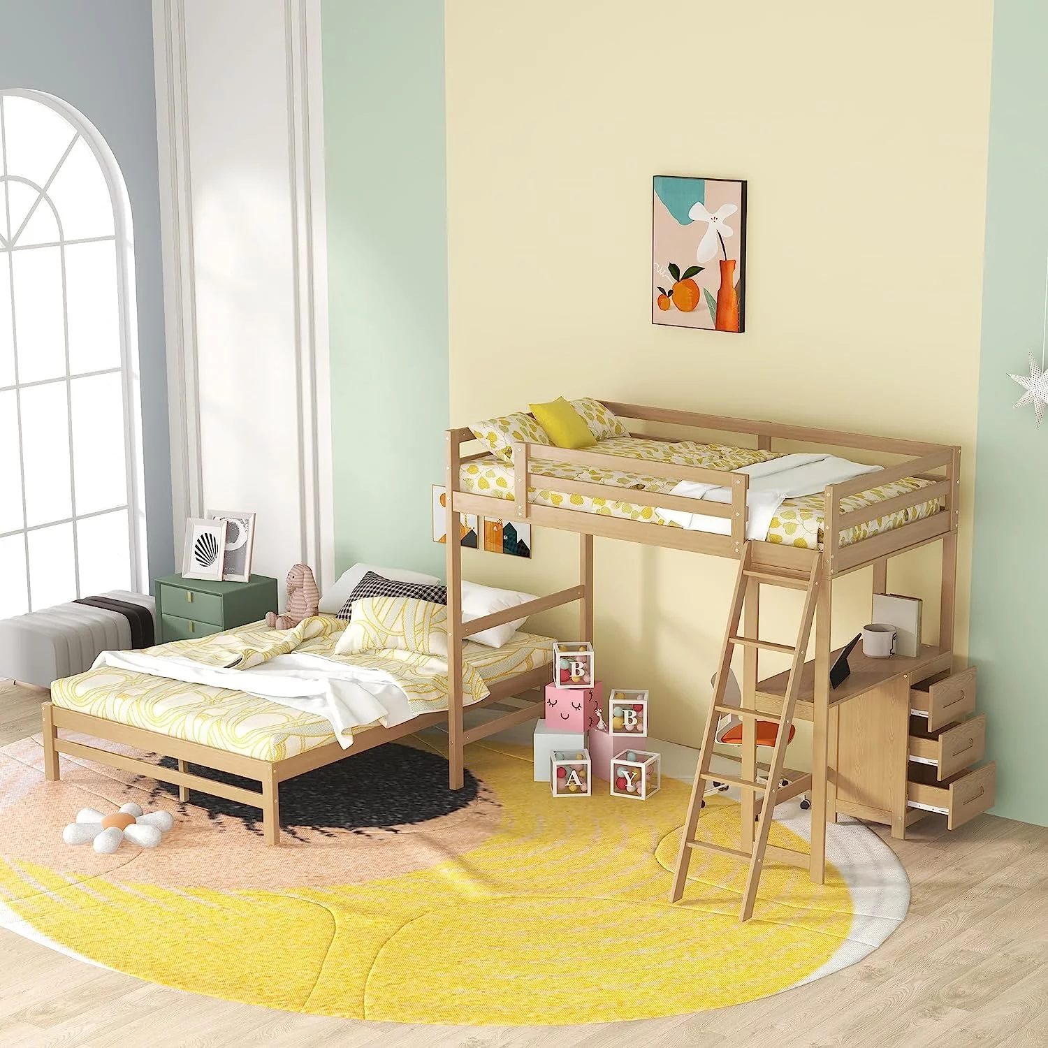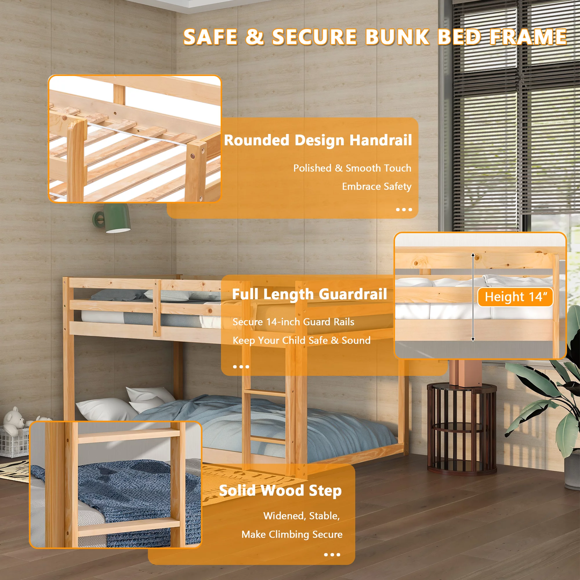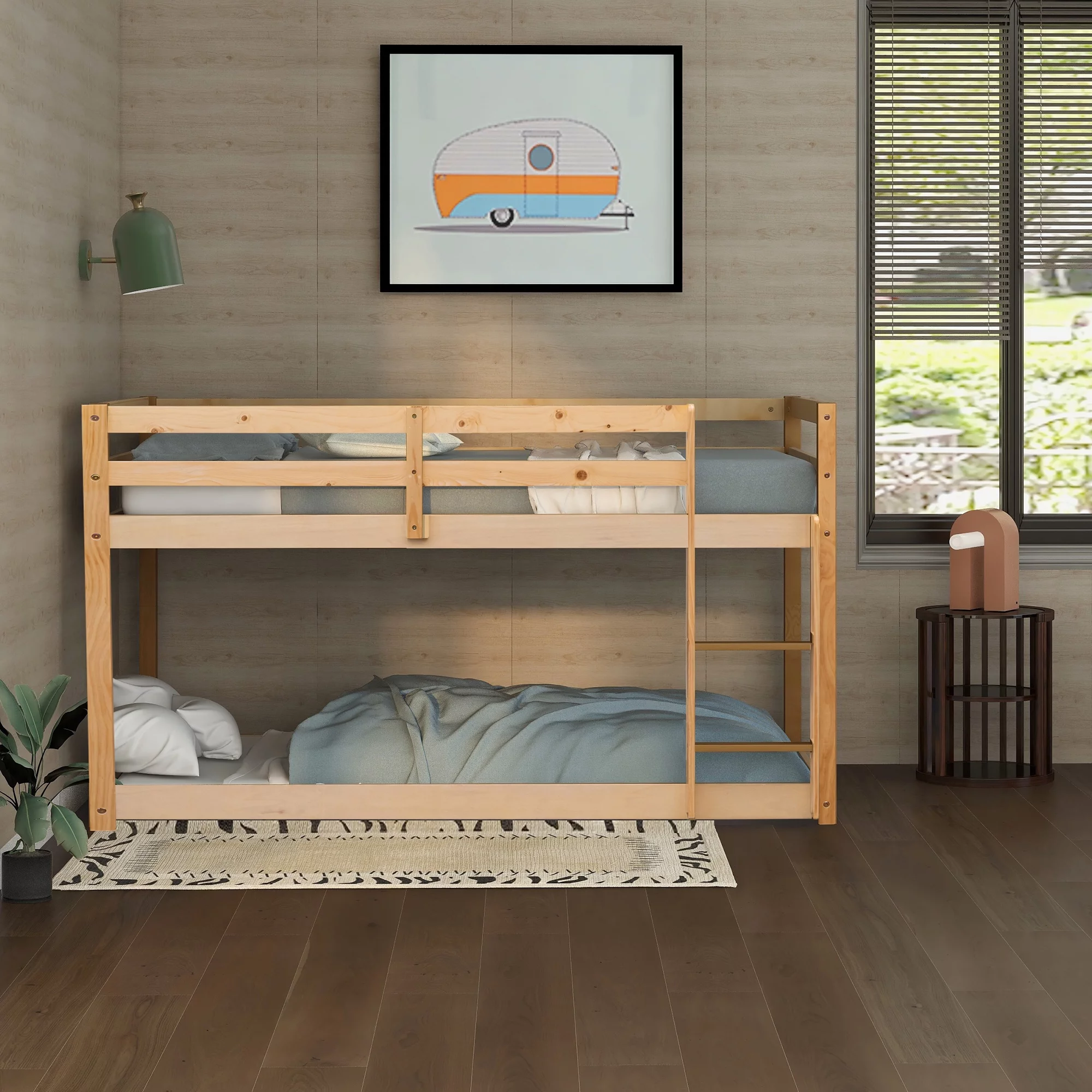 Button Tufted & Smooth Burlap Alma Classic Wood Day Bed with Trundle, Gray