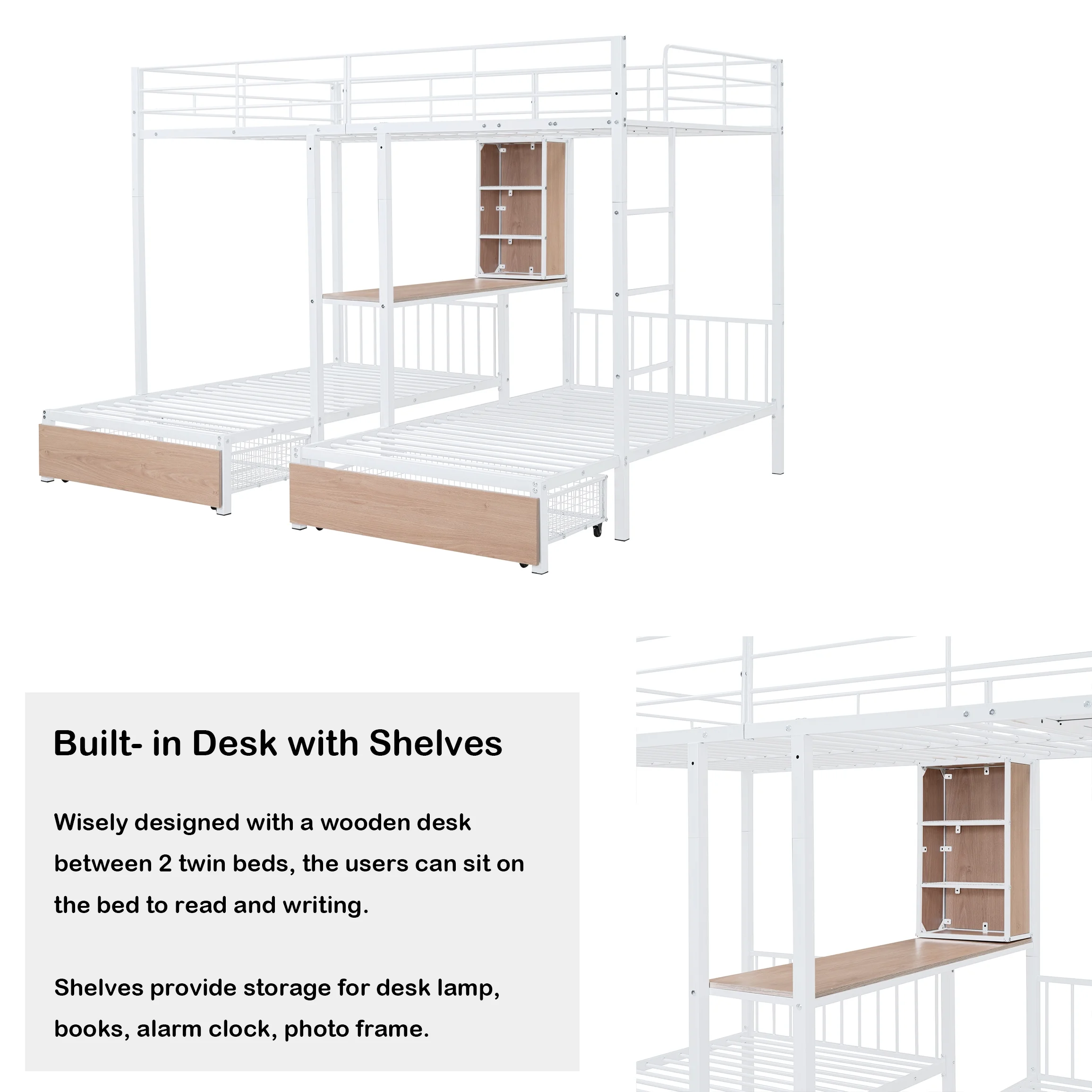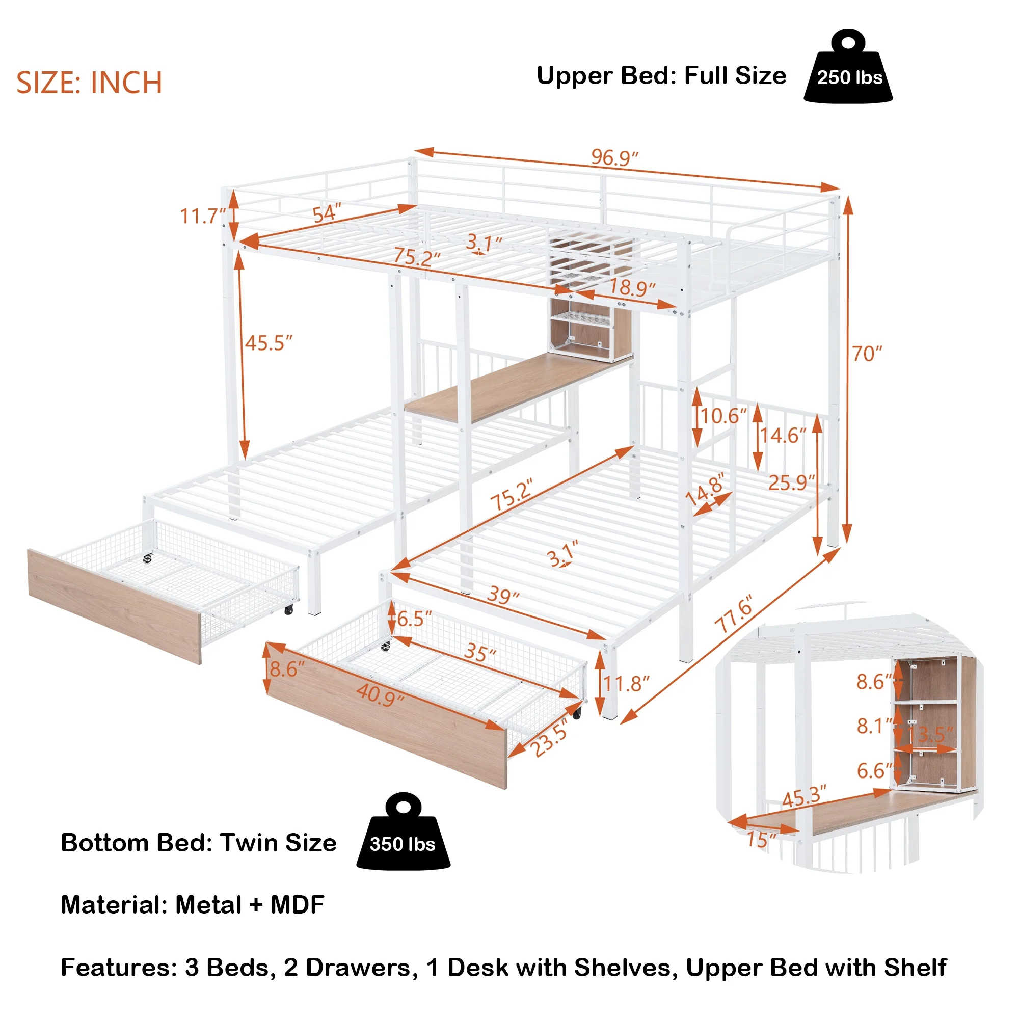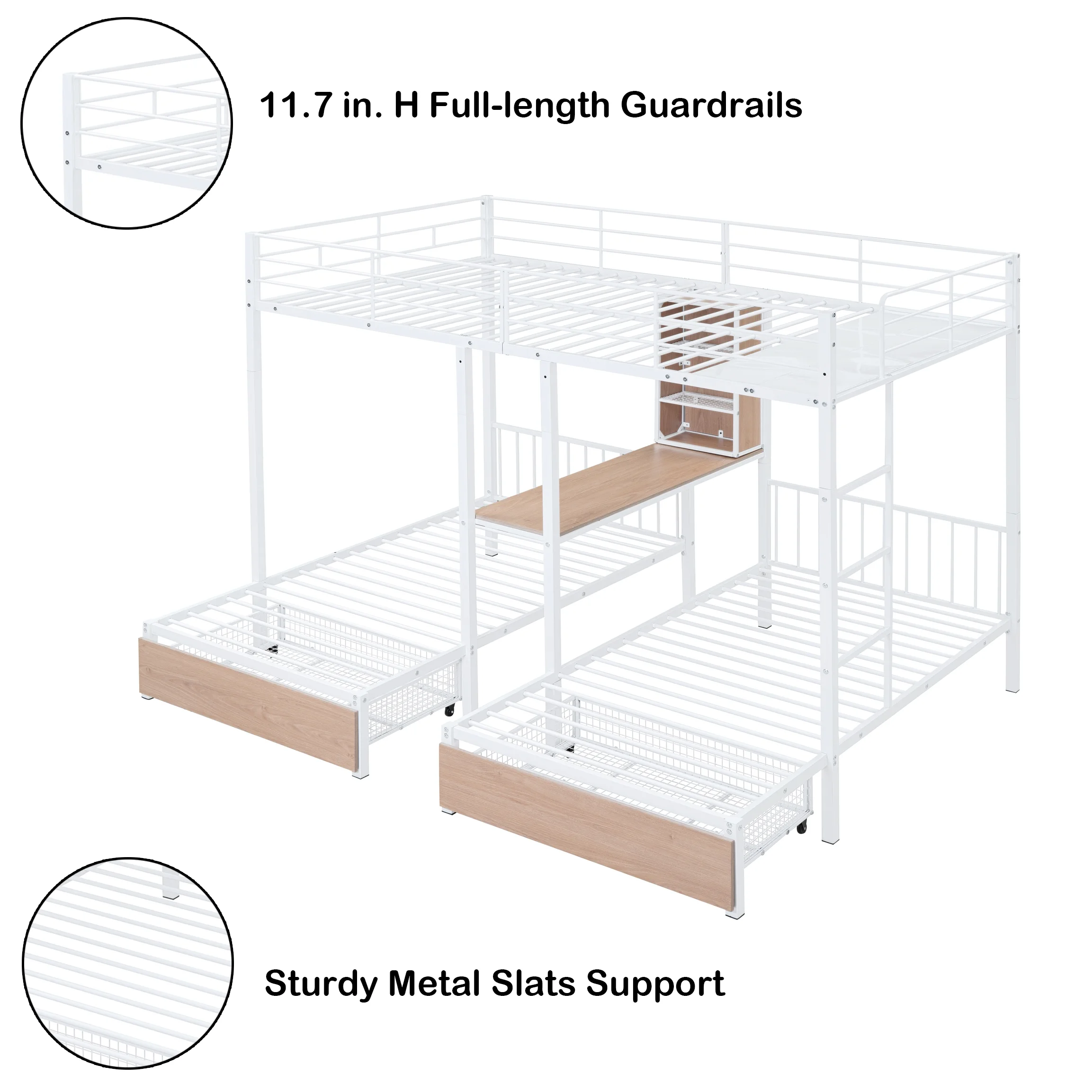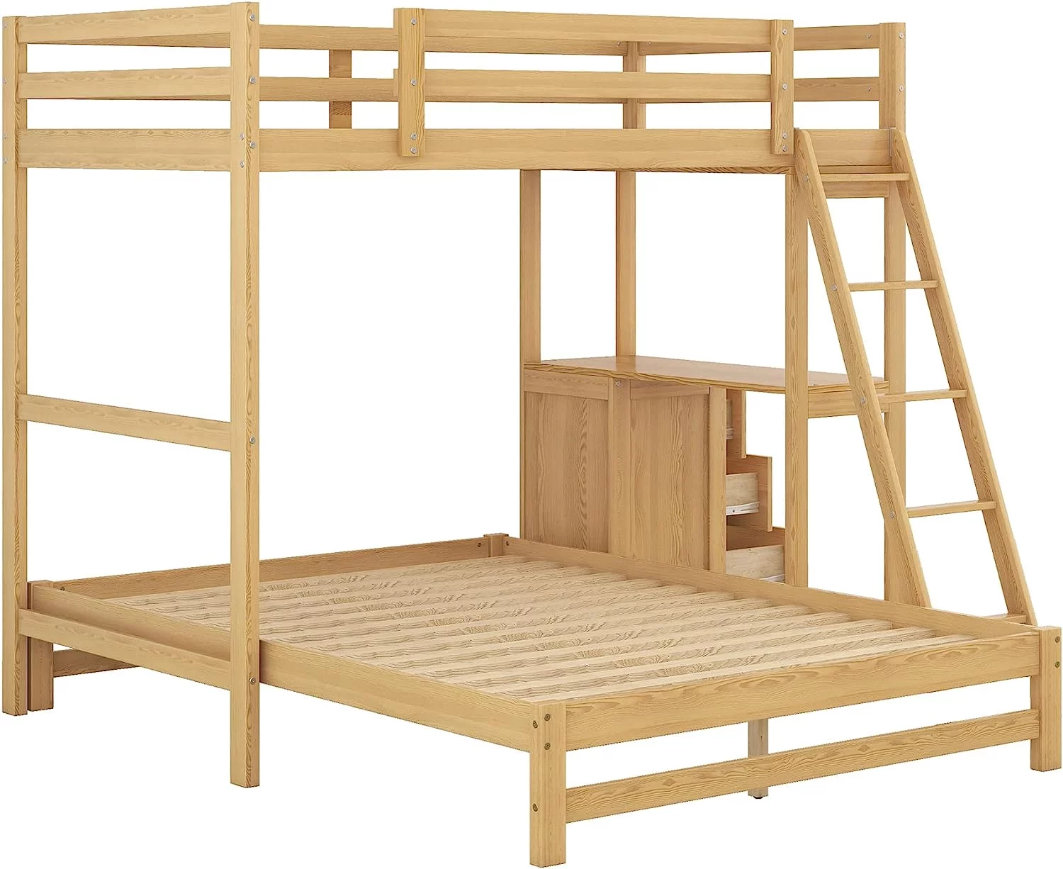HomeRoots 403900 Silver Over Full Size Metal Bunk Bed with Desk - Twin Size