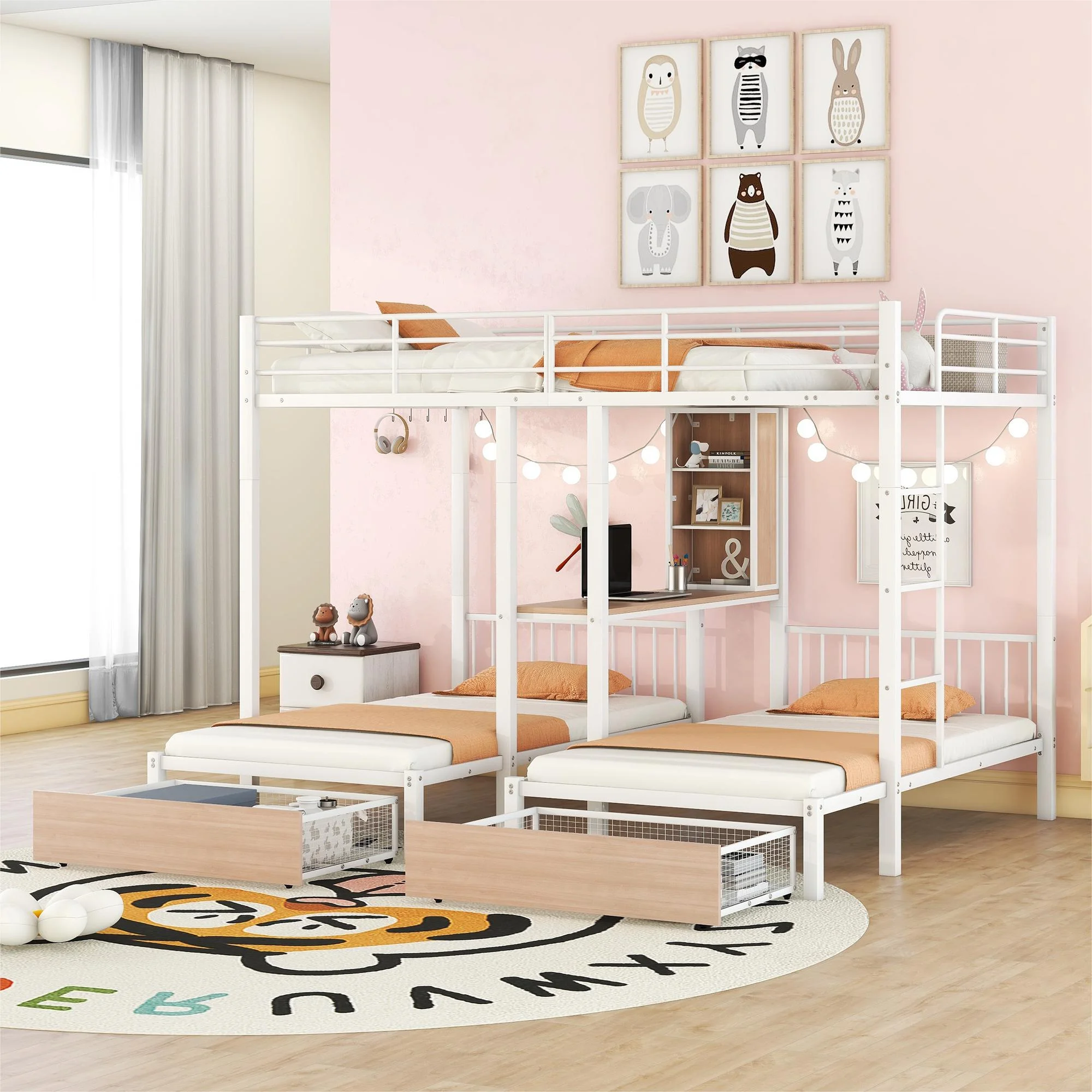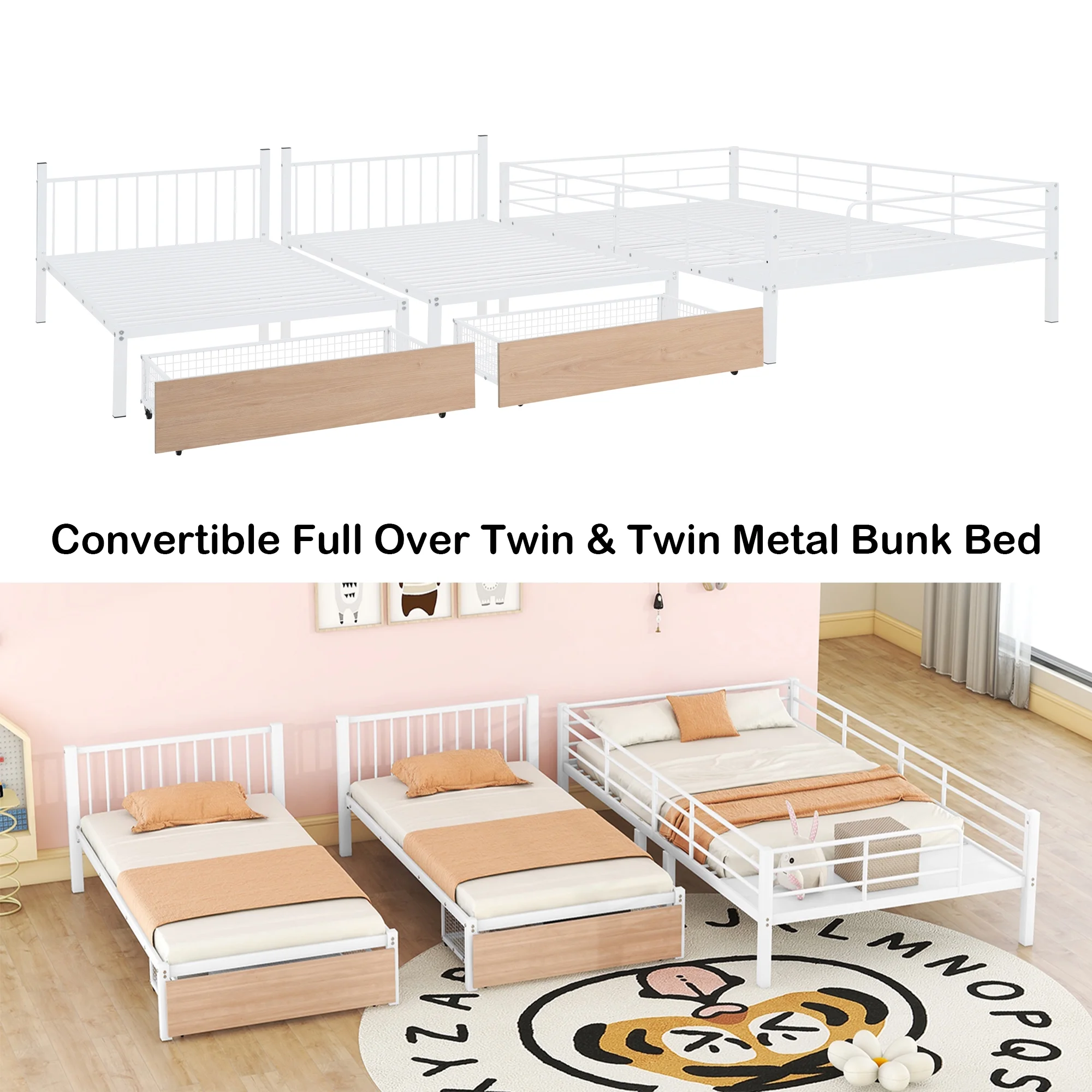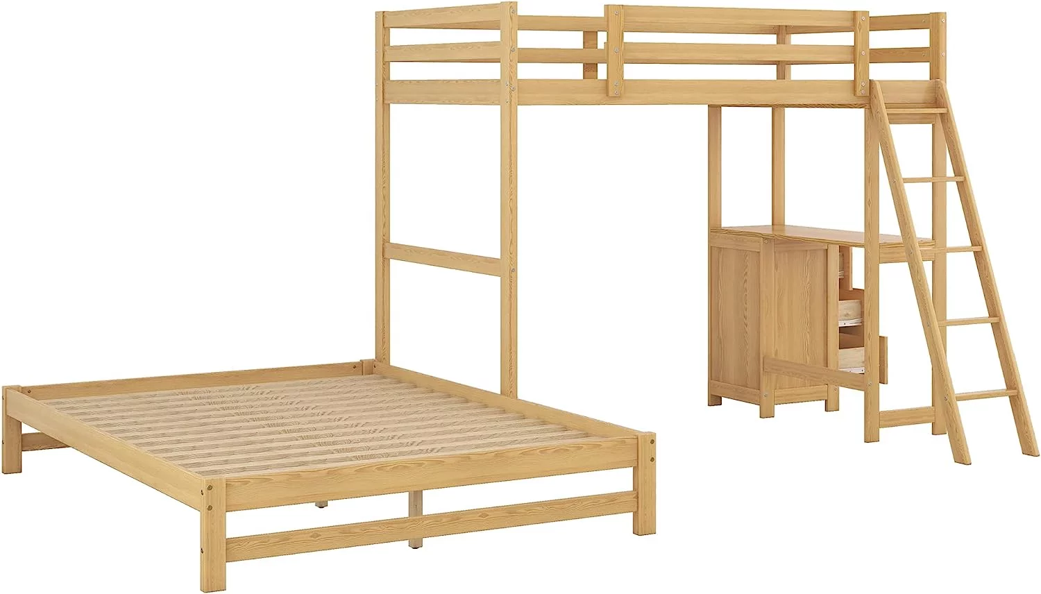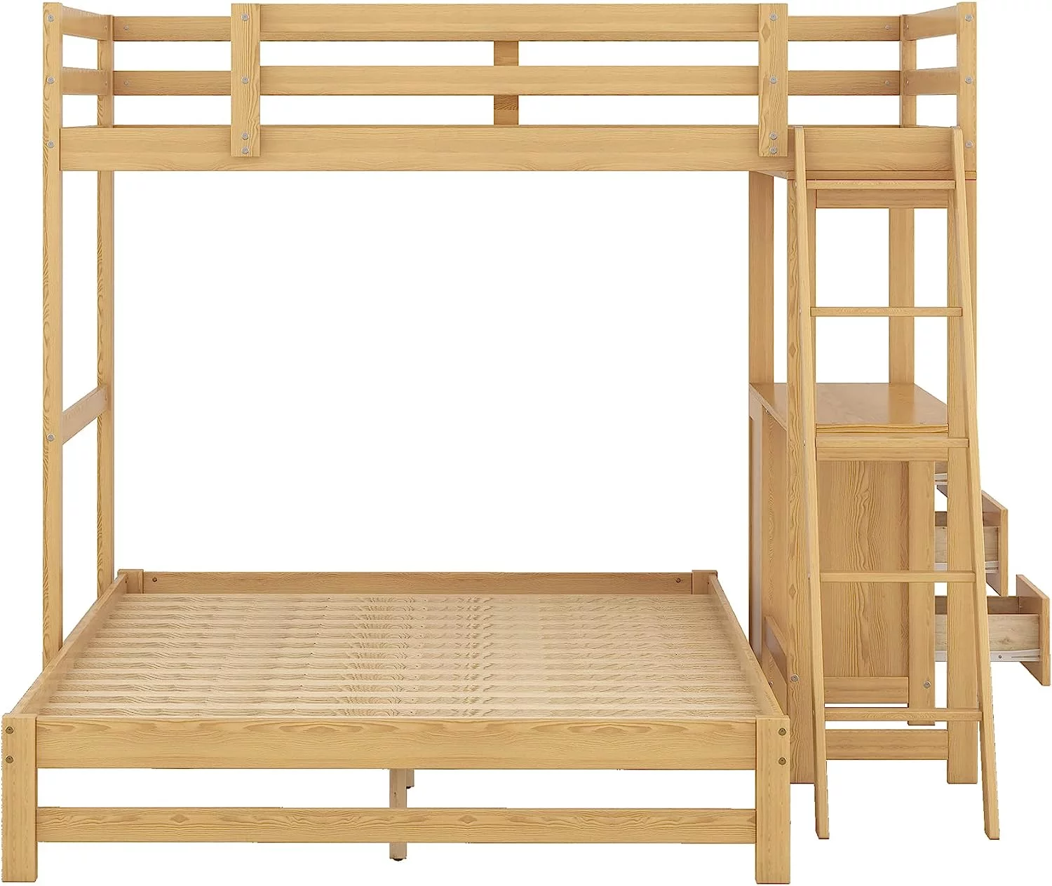 HomeRoots 403900 Silver Over Full Size Metal Bunk Bed with Desk - Twin Size