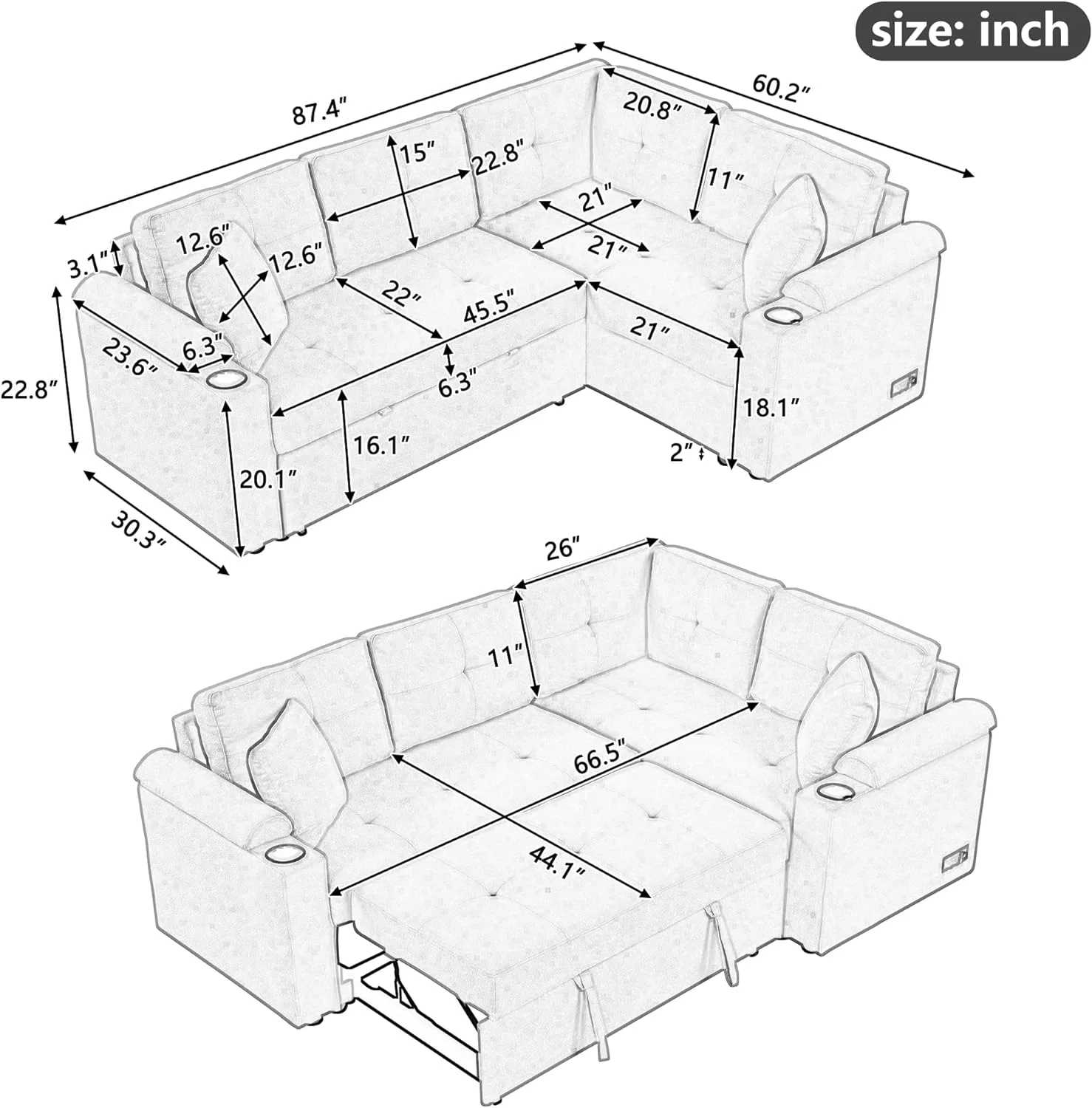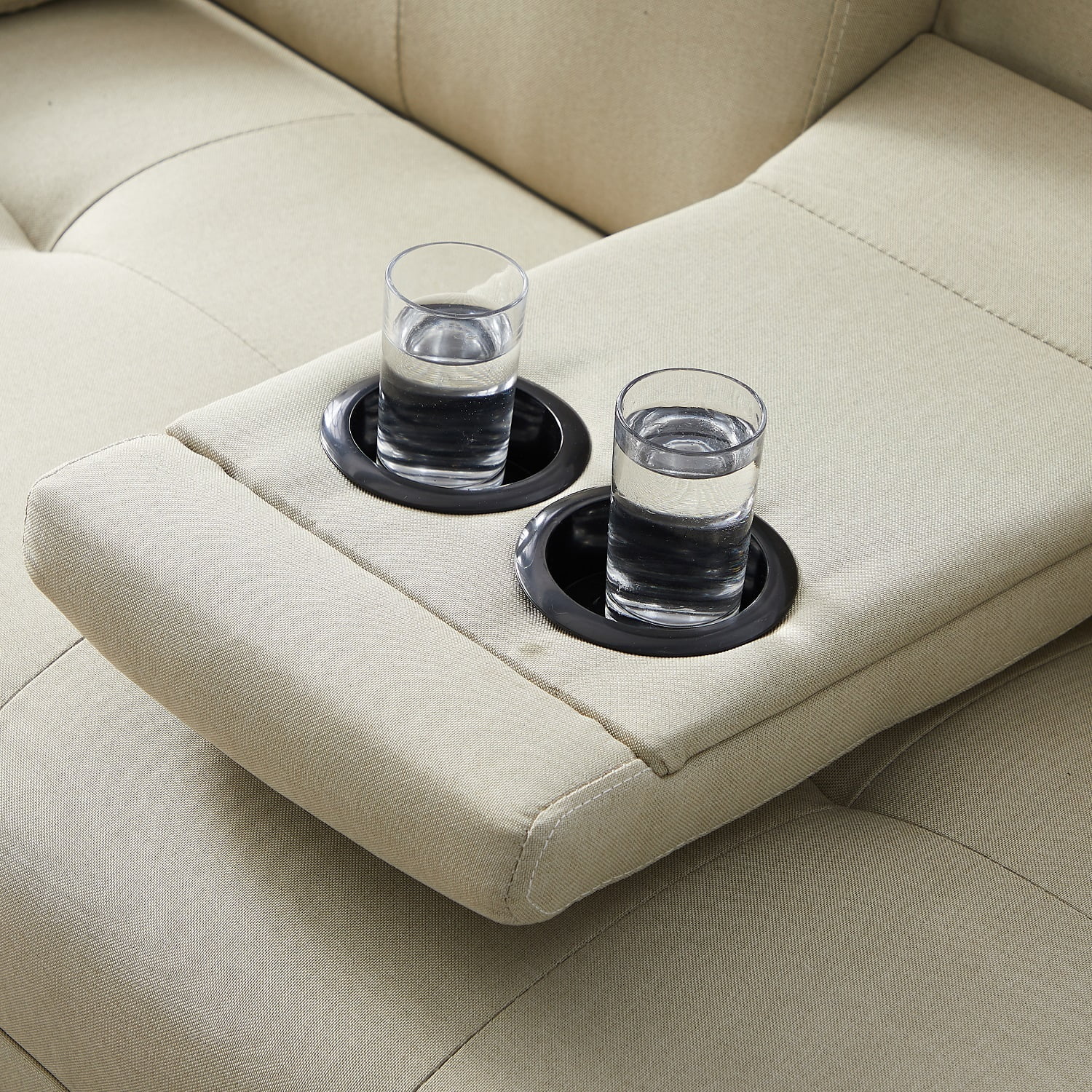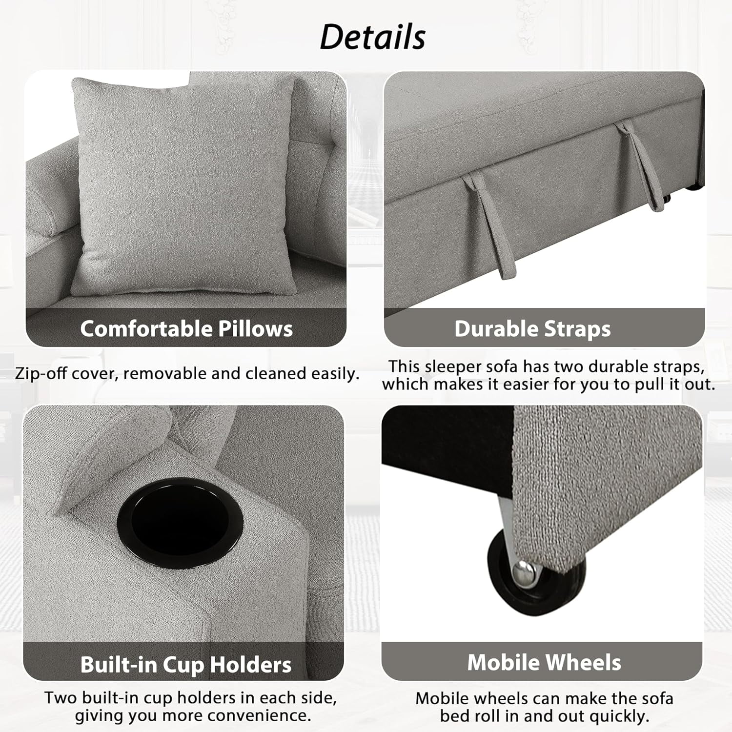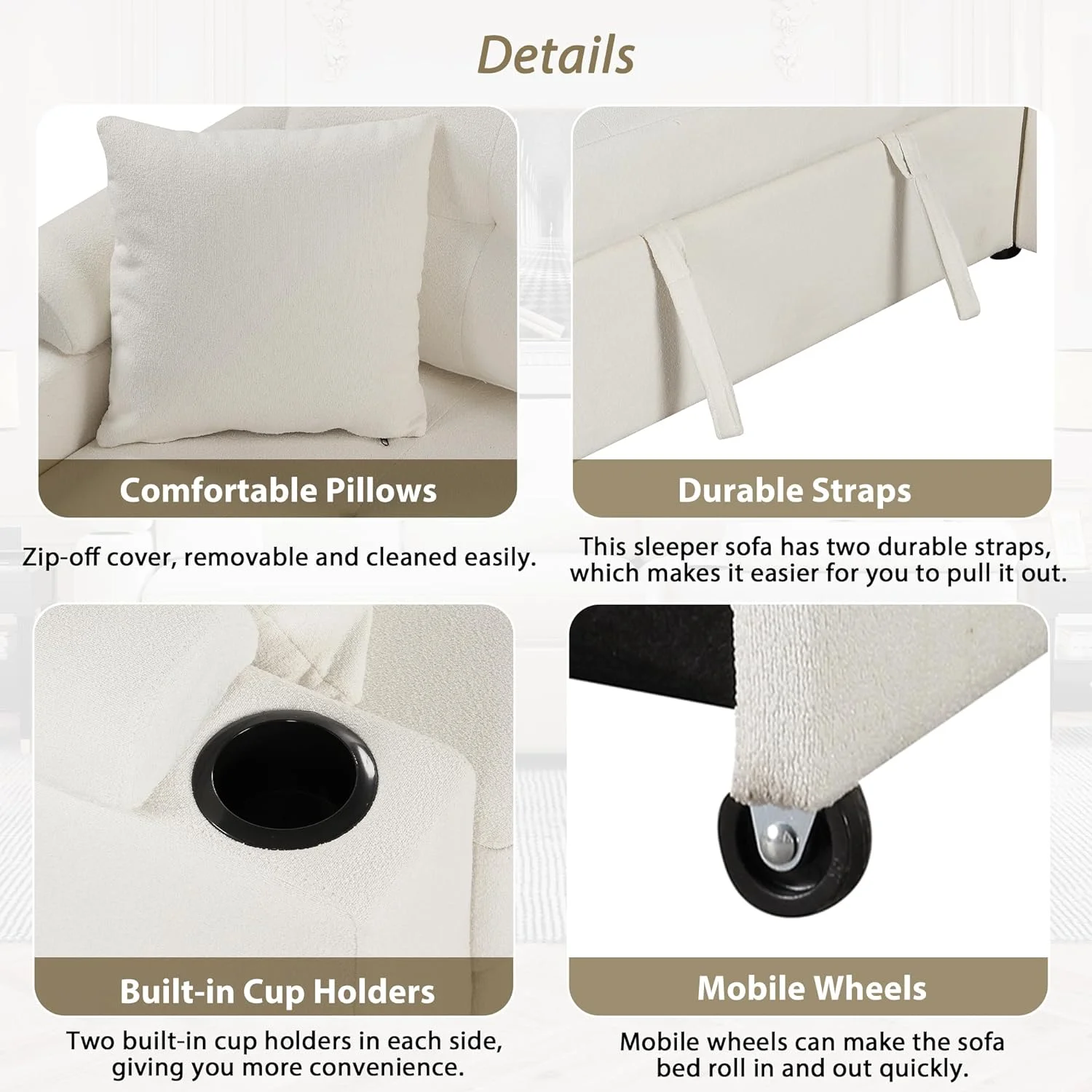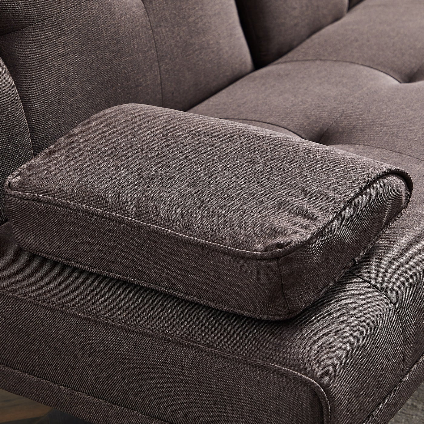 Dubbin Modern Linen Convertible Futon Sofa Bed with Removable Armrests,Metal Legs,and Cupholders - Brown