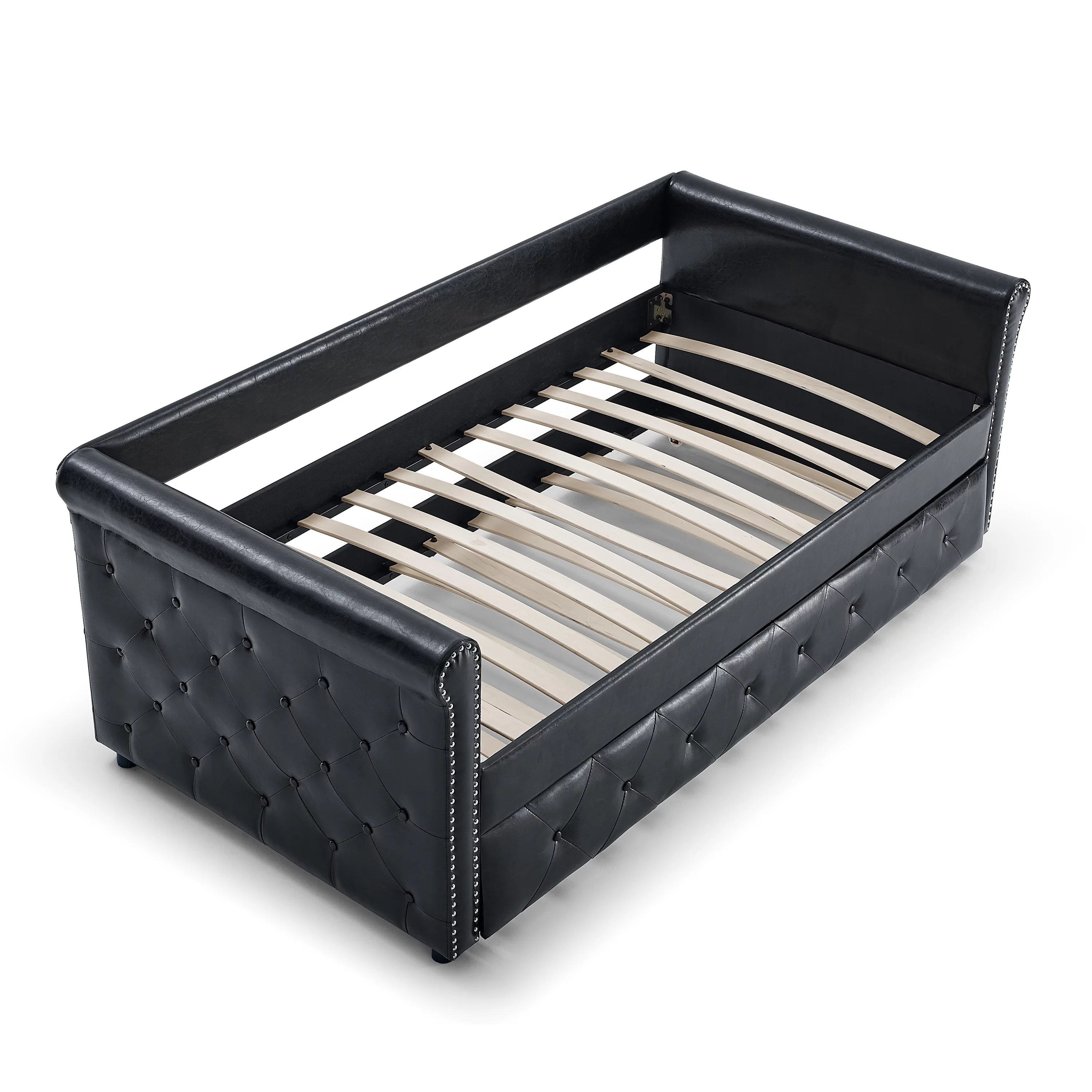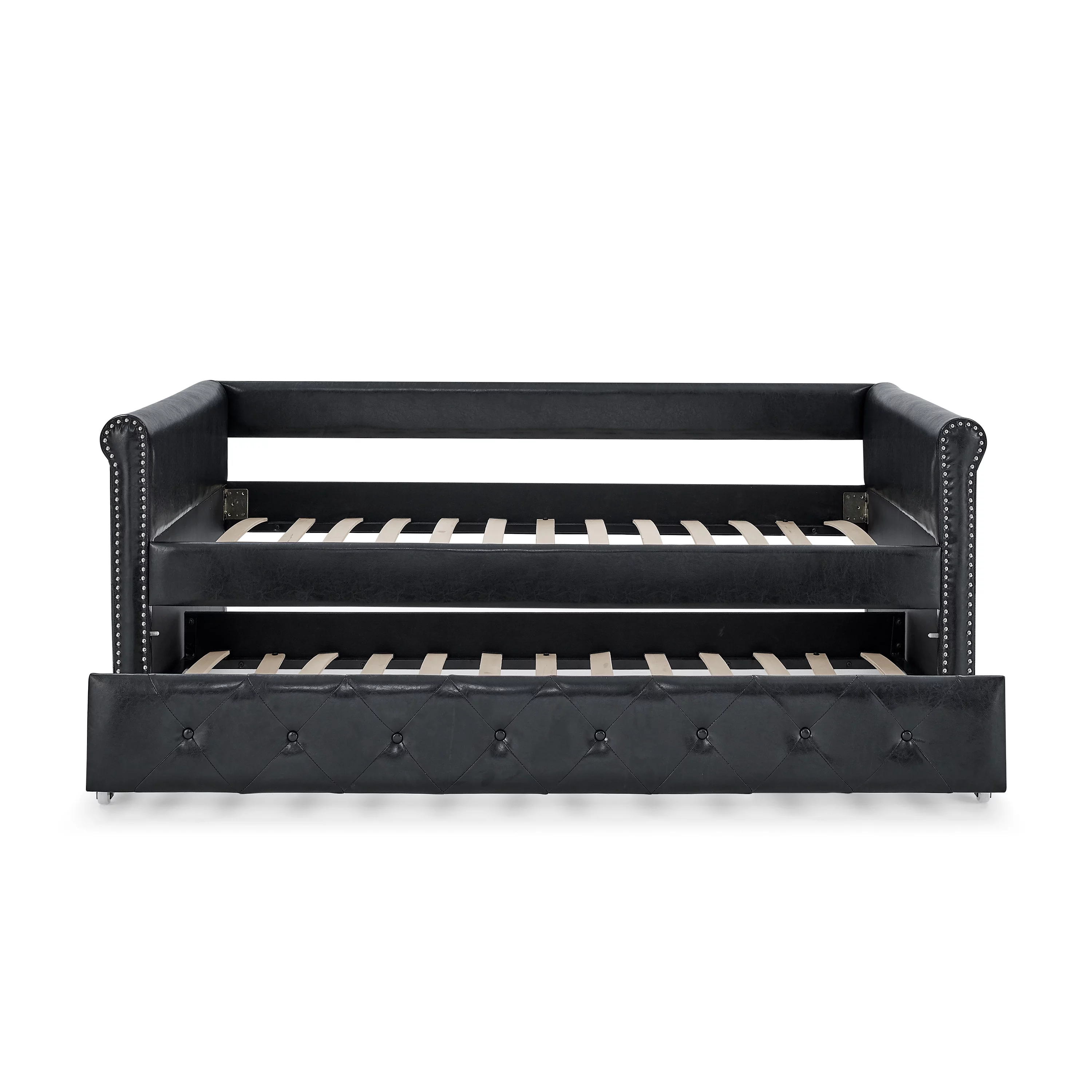 Ucloveria Daybed with Trundle Upholstered Tufted Sofa Bed, with Button and Copper Nail on Arms Both Twin Size, PU Black