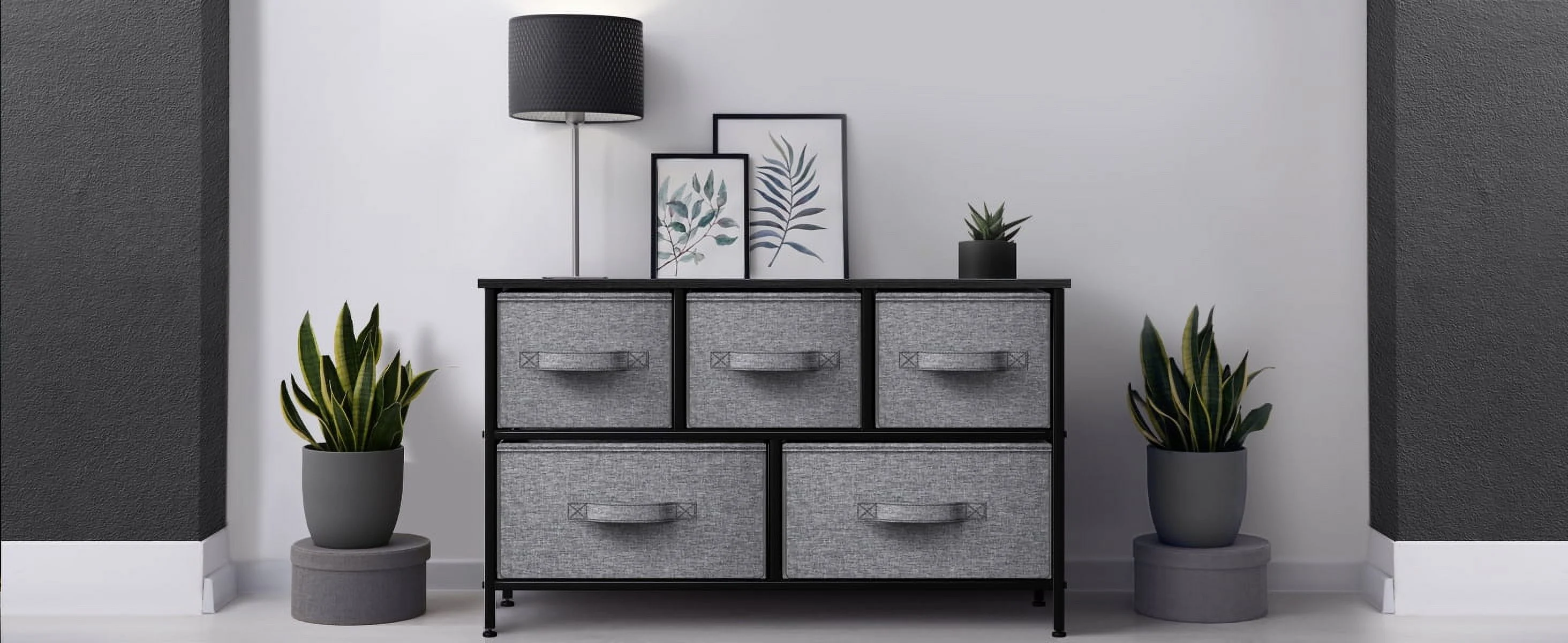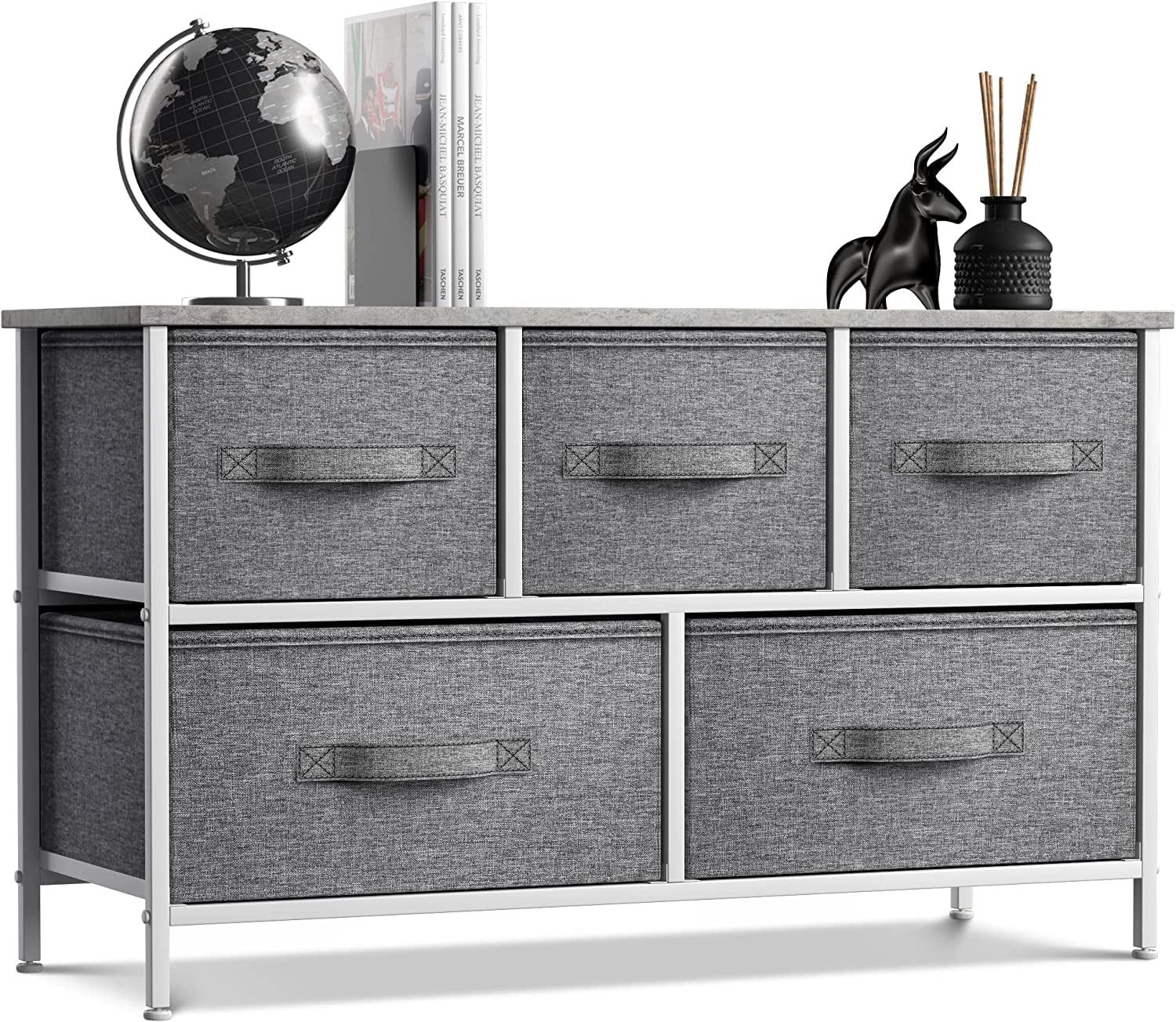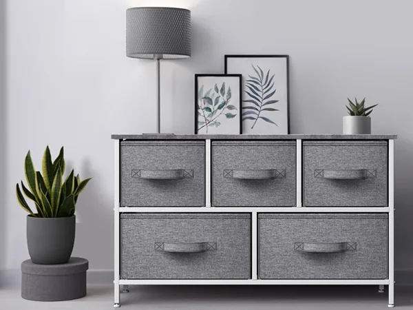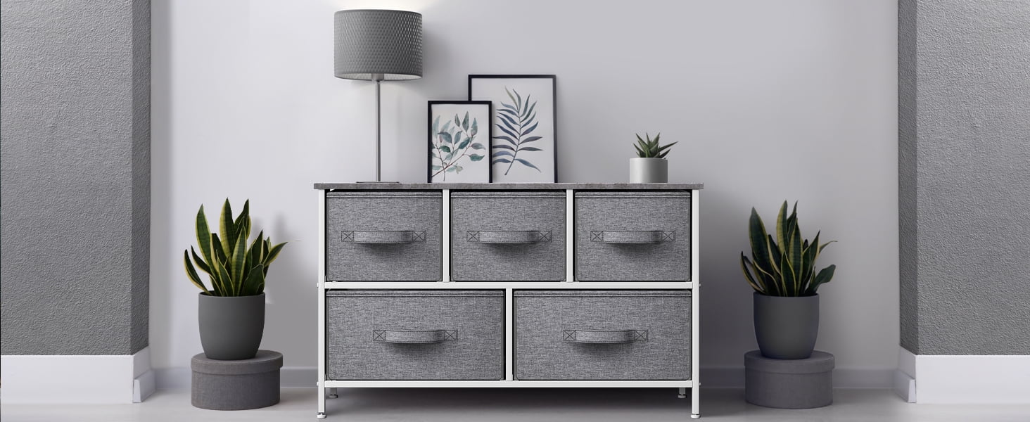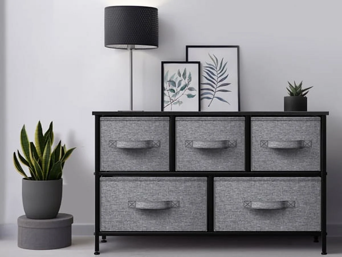Sorbus Dresser with Drawers - 5 Easy Pull Fabric Cube Bins (Gray) - Great for TV Stand and or Bedroom Organizer