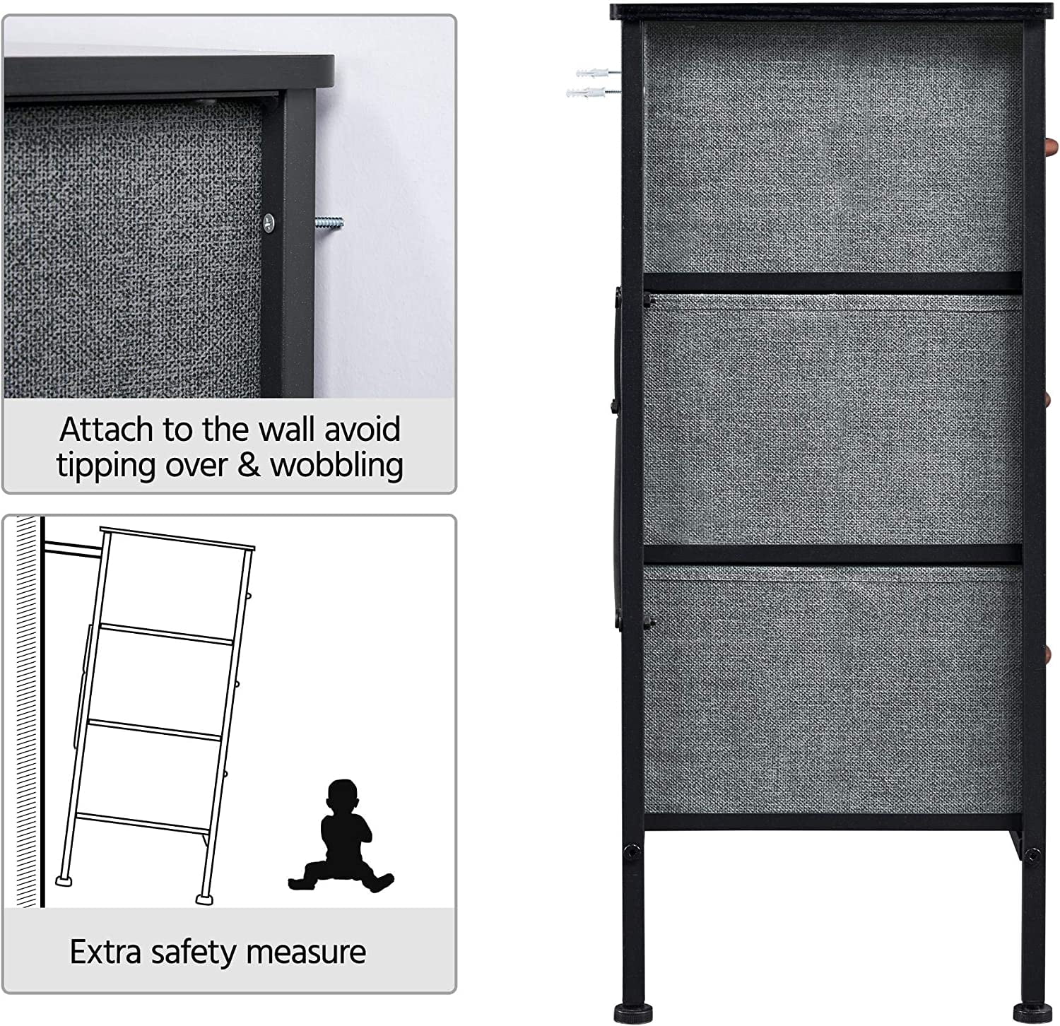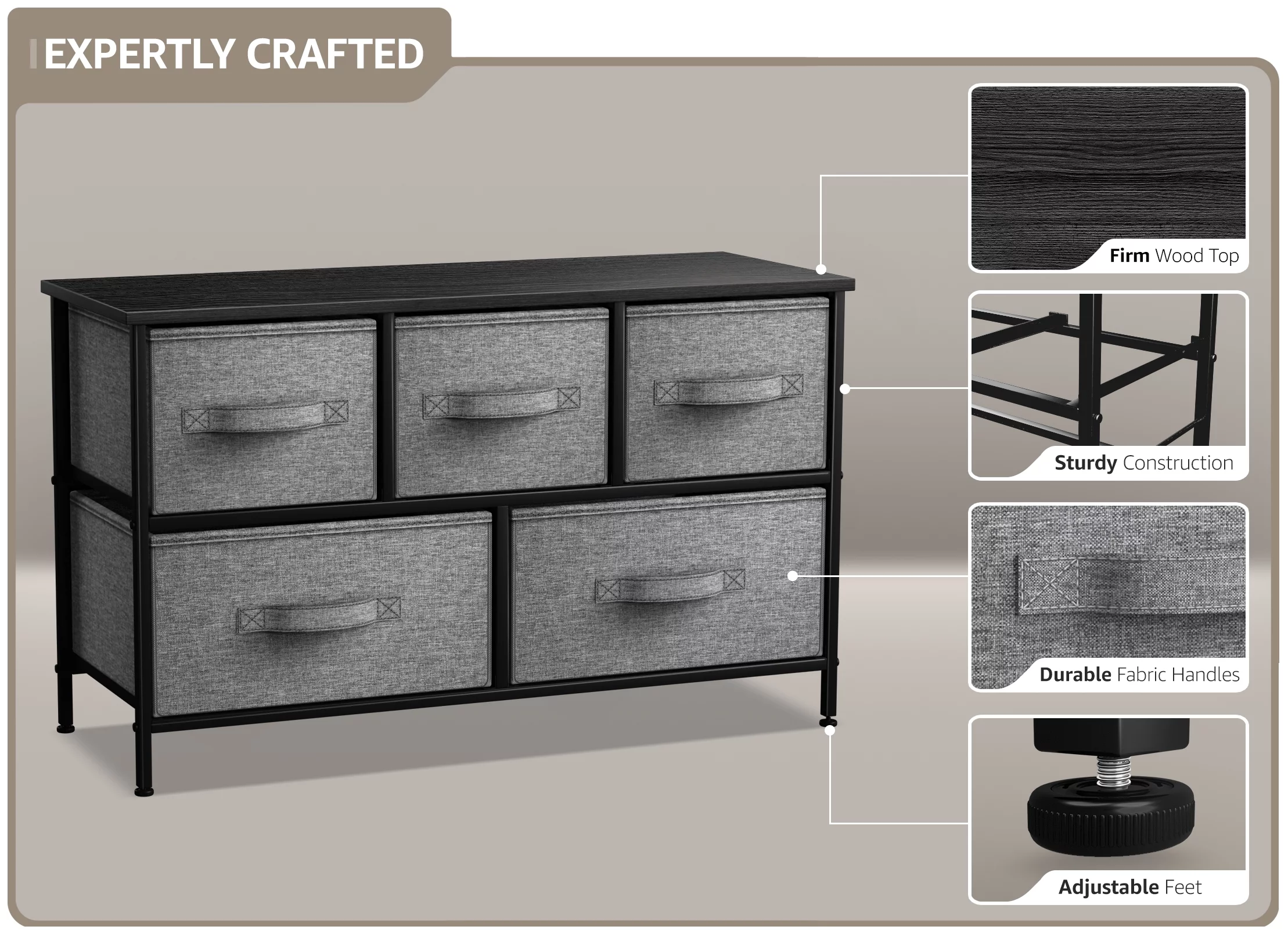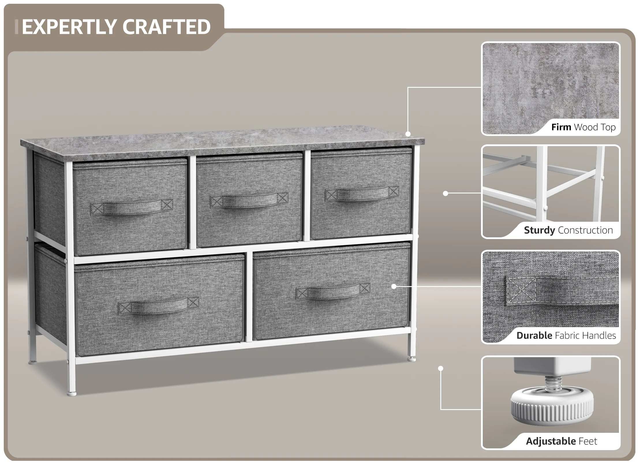 Sorbus Dresser with Drawers - 5 Easy Pull Fabric Cube Bins (Gray) - Great for TV Stand and or Bedroom Organizer