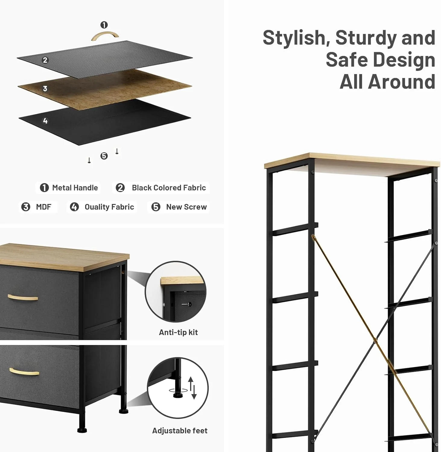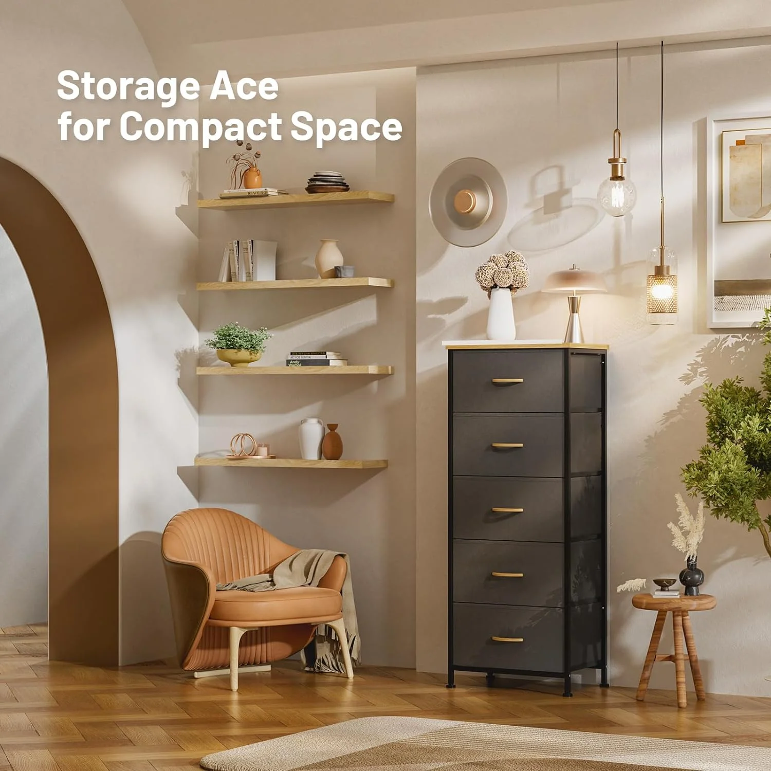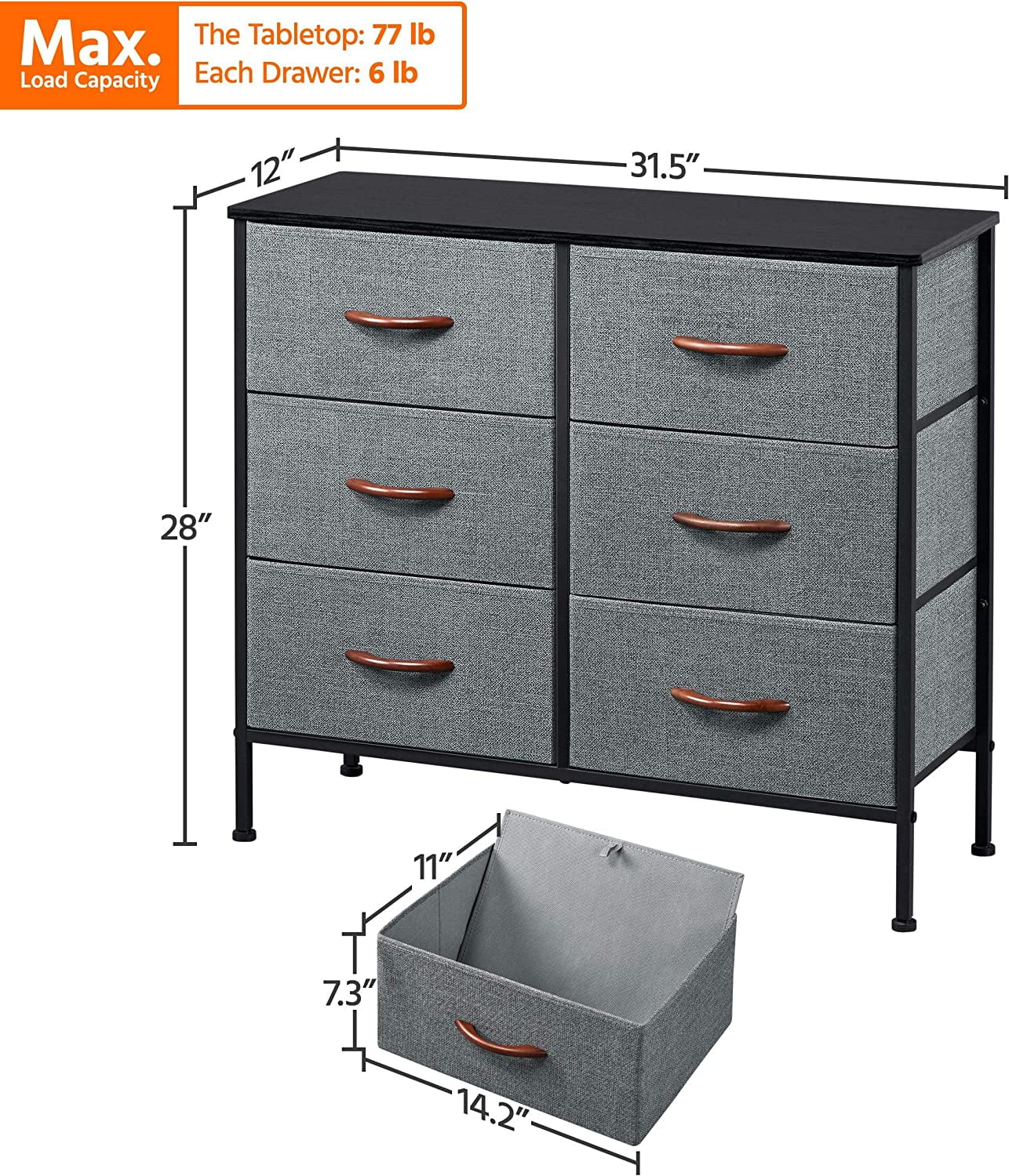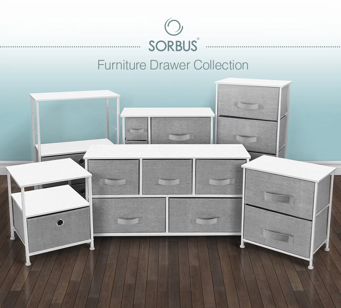 Sorbus Dresser with Drawers - 5 Easy Pull Fabric Cube Bins (Gray) - Great for TV Stand and or Bedroom Organizer