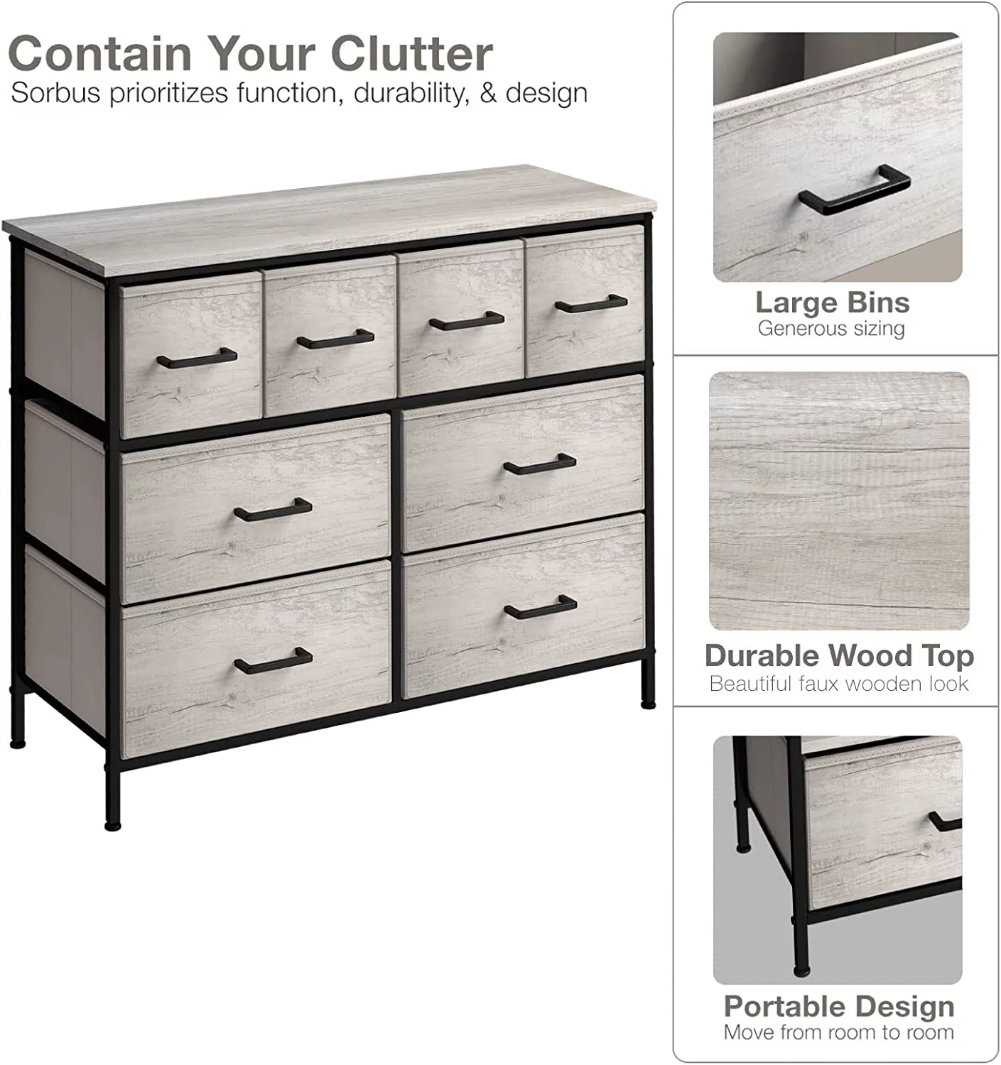 Sorbus 8-Drawer Dresser - Faux Wood Storage for Clothes in Bedroom, Living Room, Dorm - Easy-Pull Bins